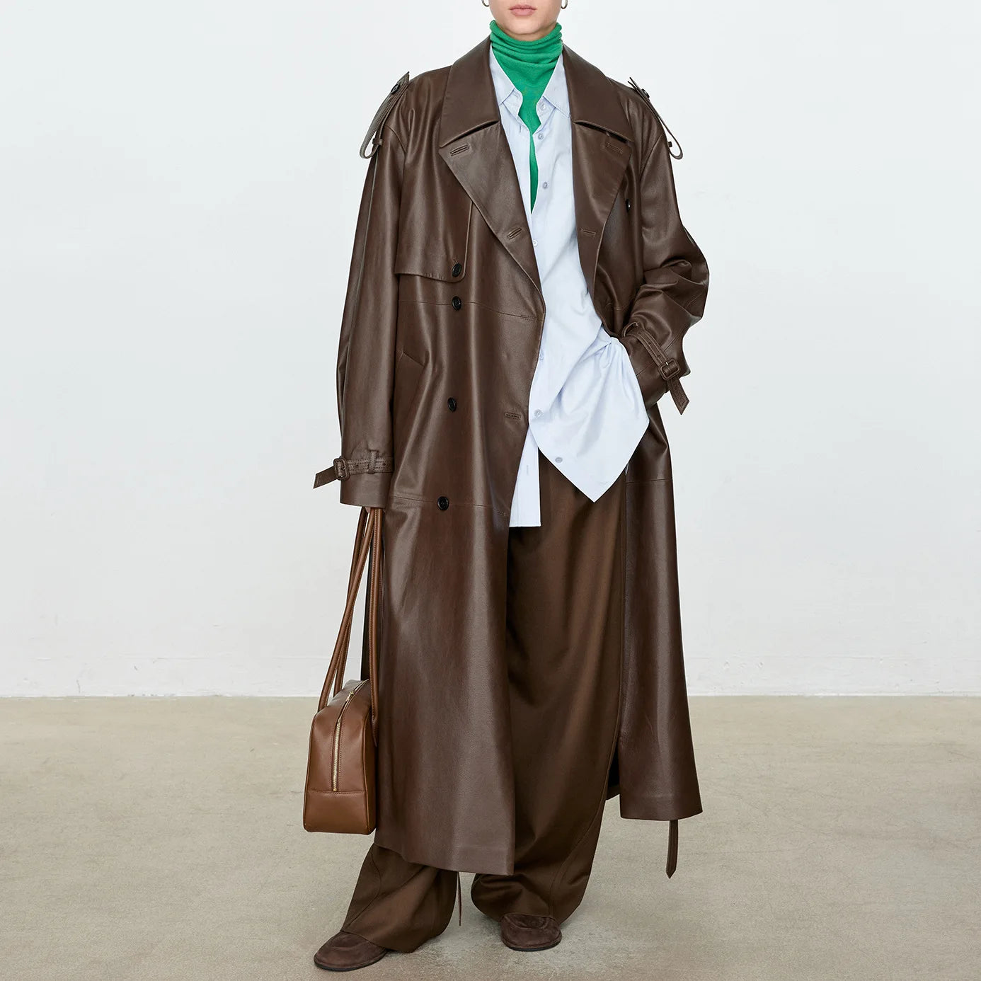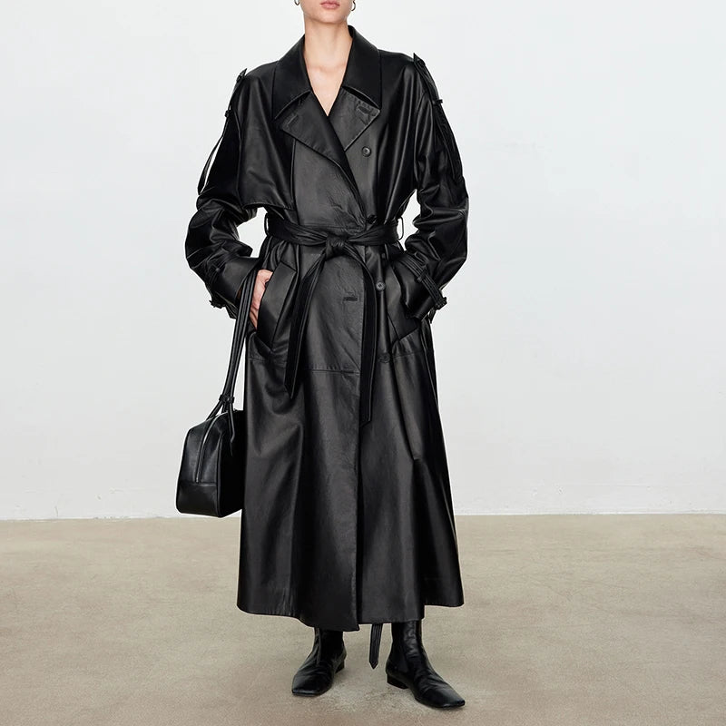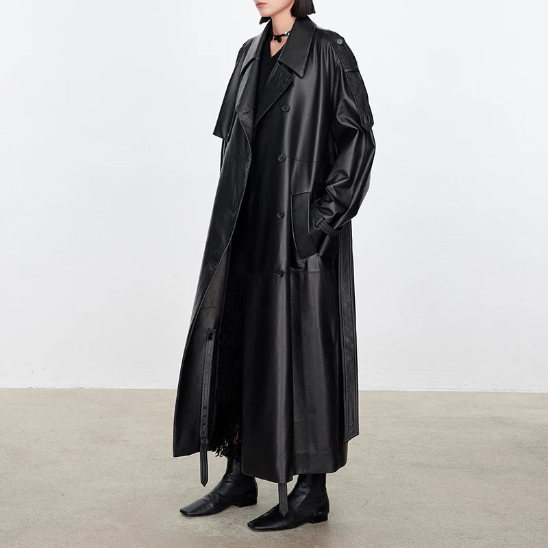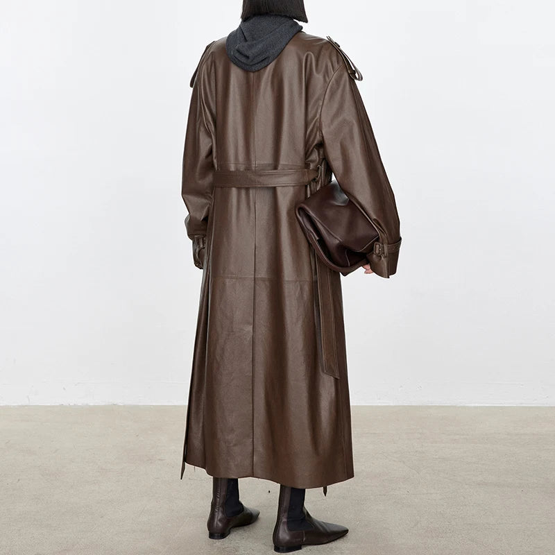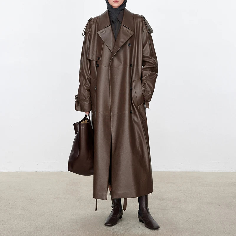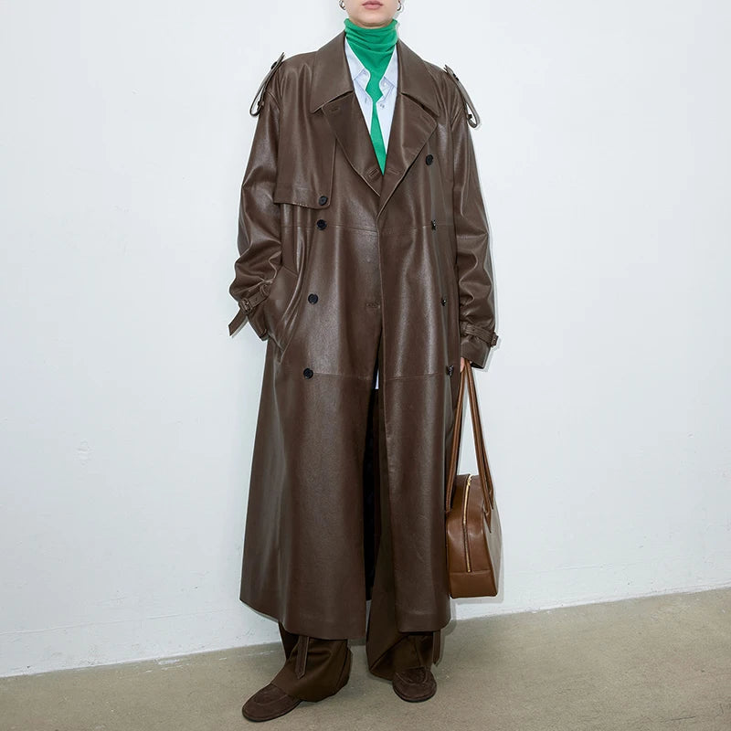 Women's Autumn Winter Double Breasted Belt Loose Plus Size Windbreaker Jacket
