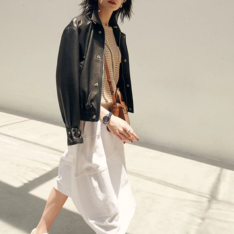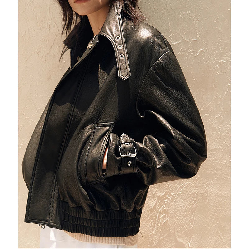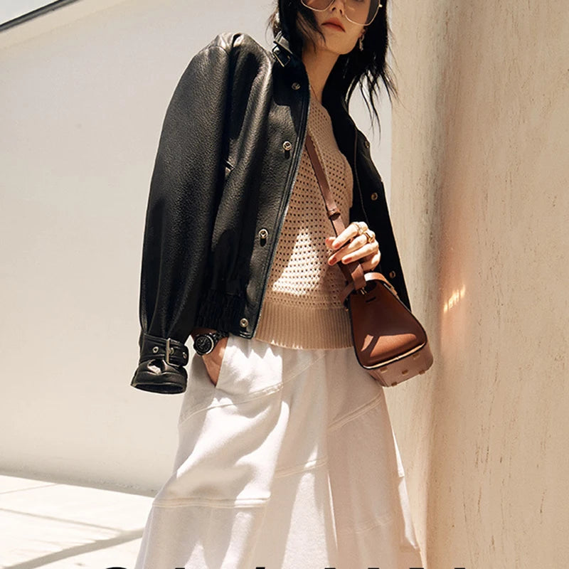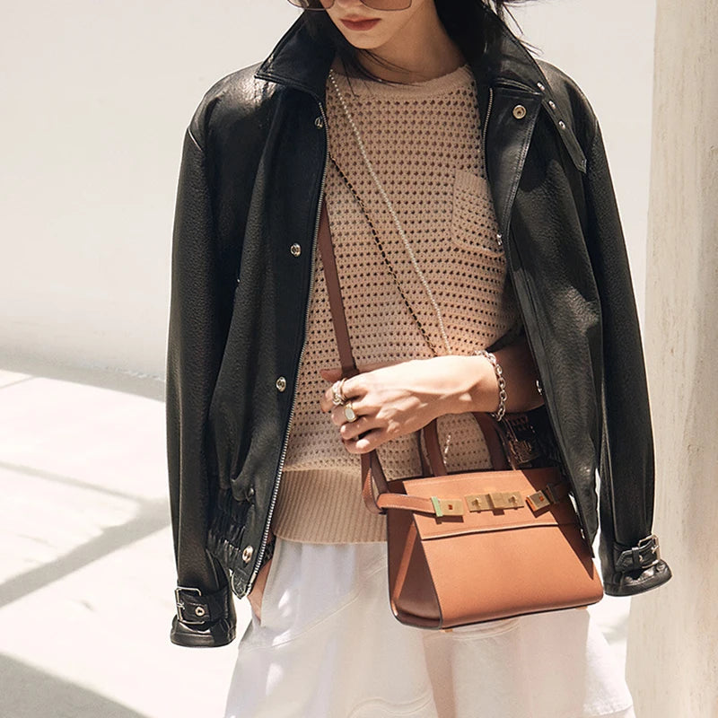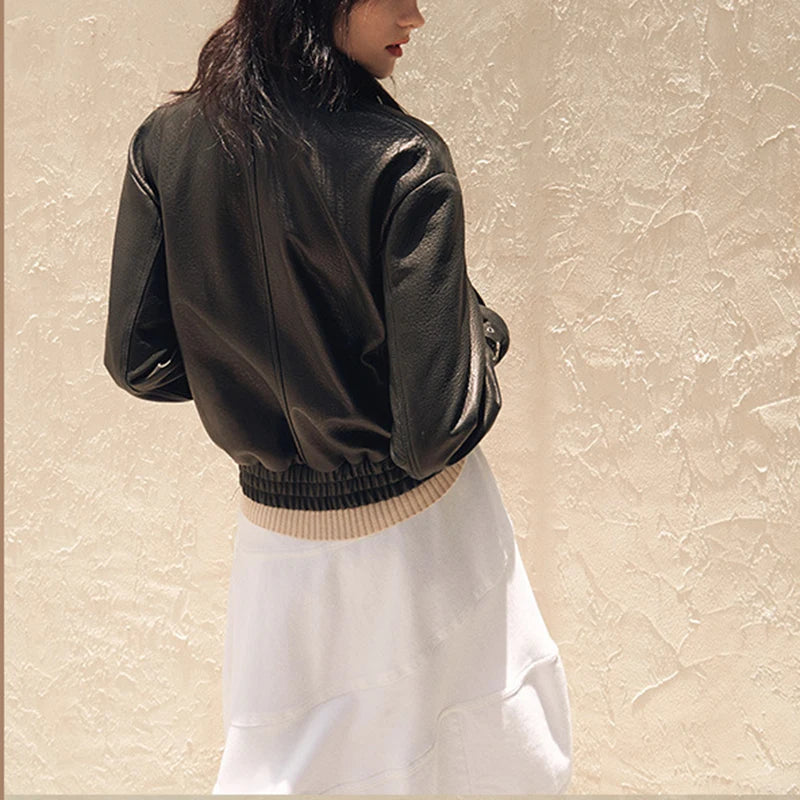Women's Short Silm Foamed Sheepskin Single-Breasted Square Collar Jacket