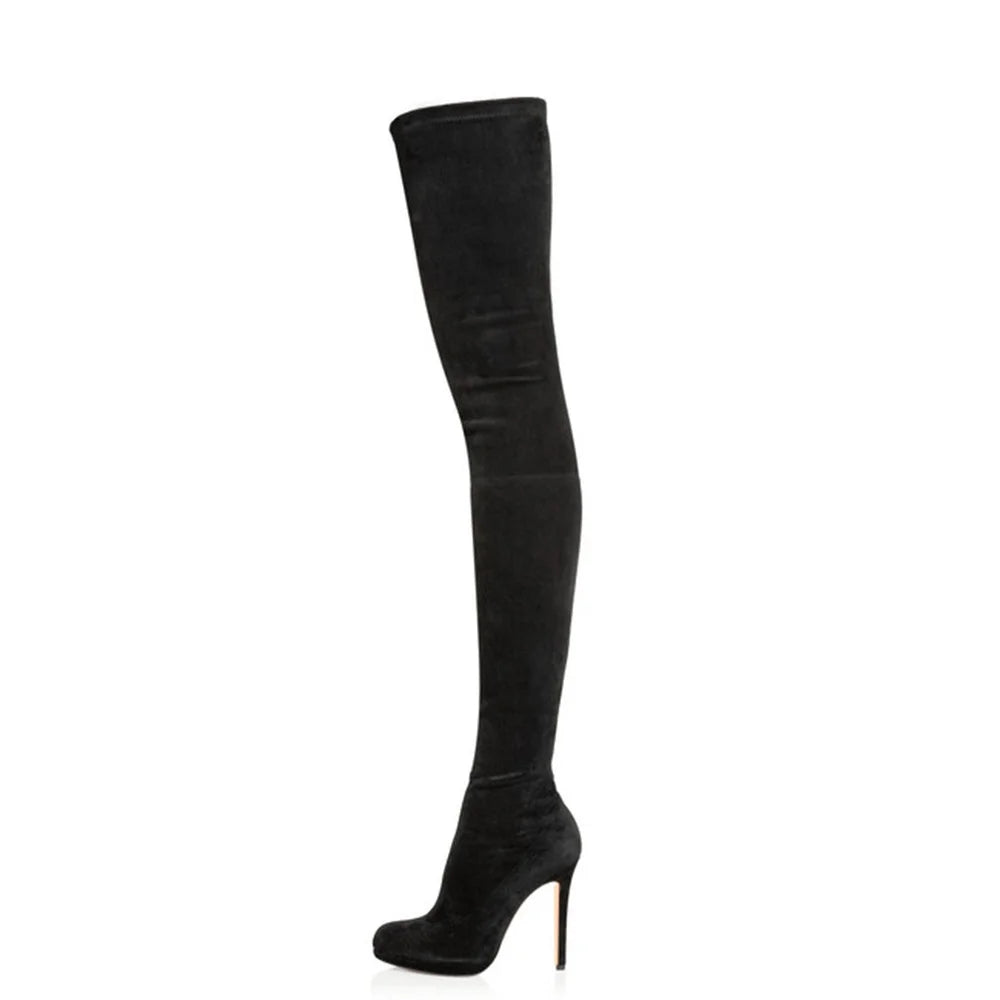 Sexy Fashion Black High Heels Slim Stretch Overknee Boots for Women