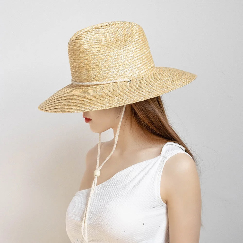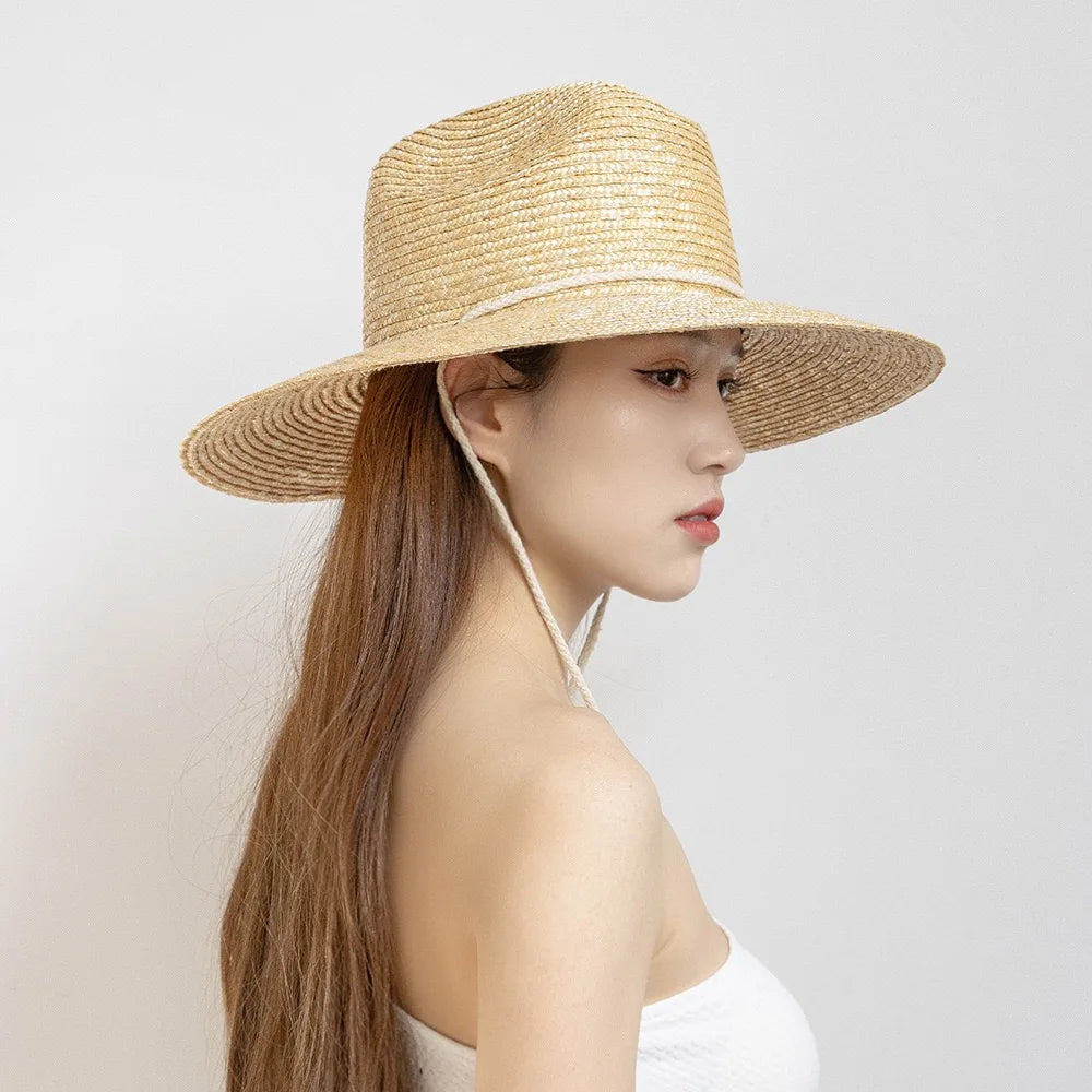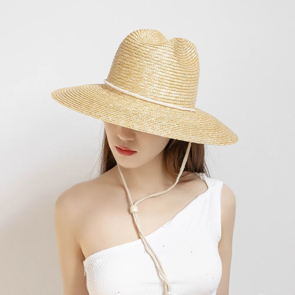 Trendy Casual Windproof Rope Wide Edge Straw Beach Hat For Women
