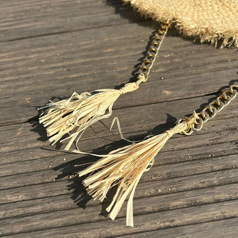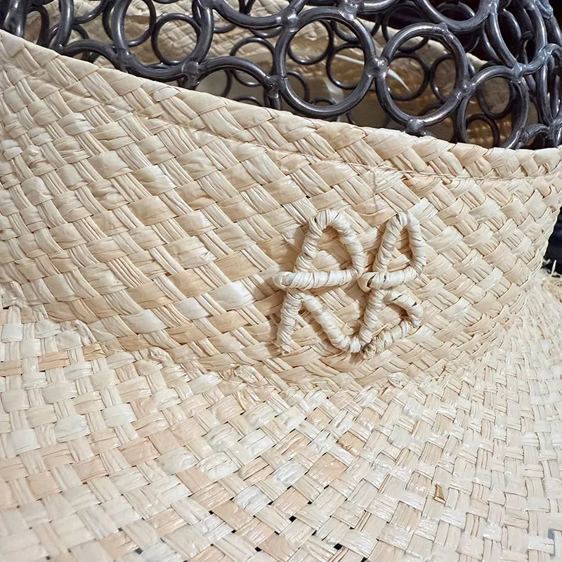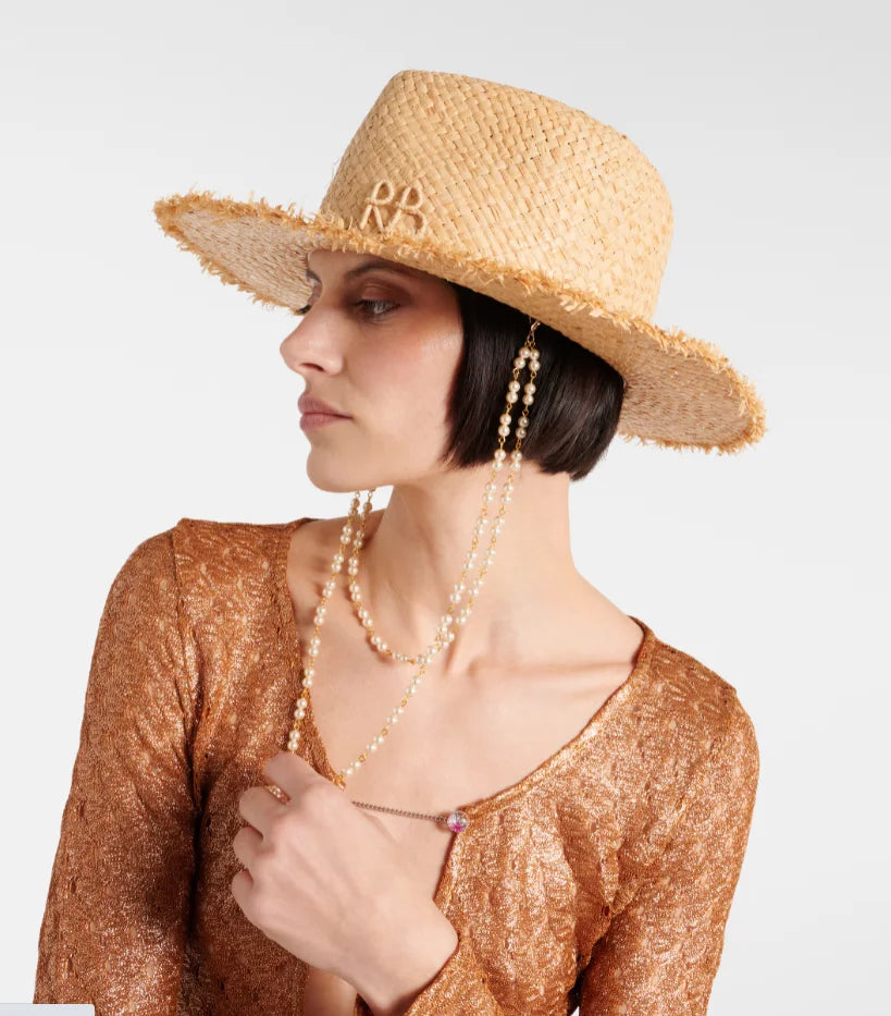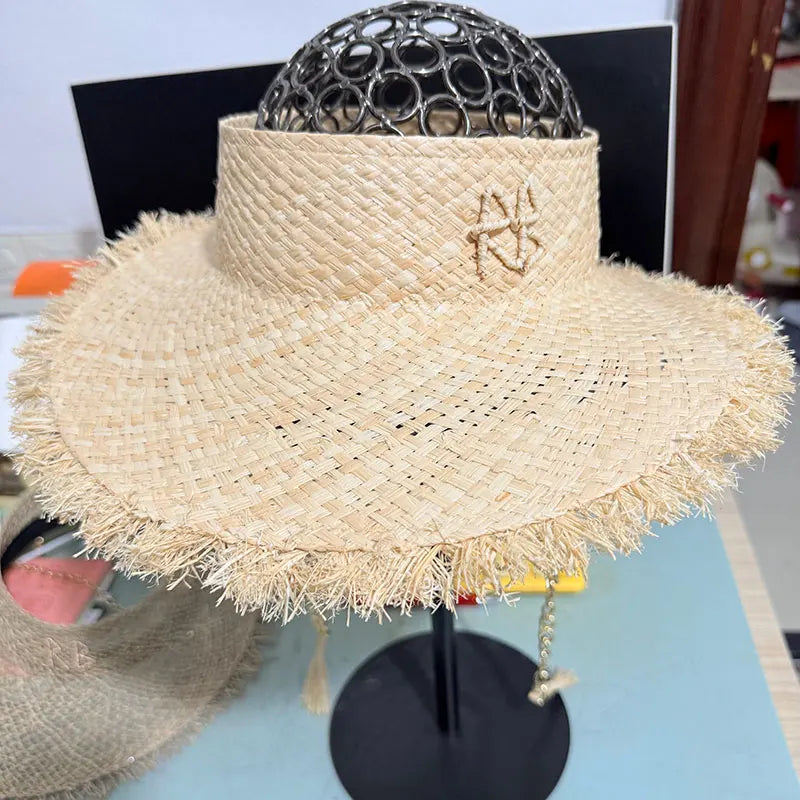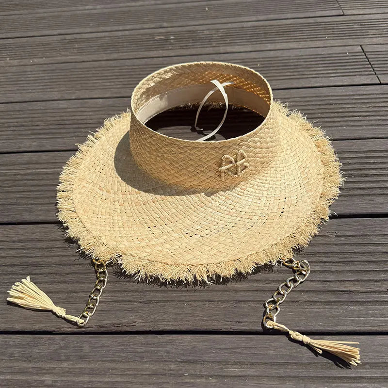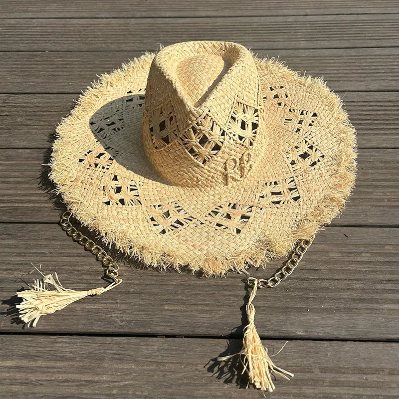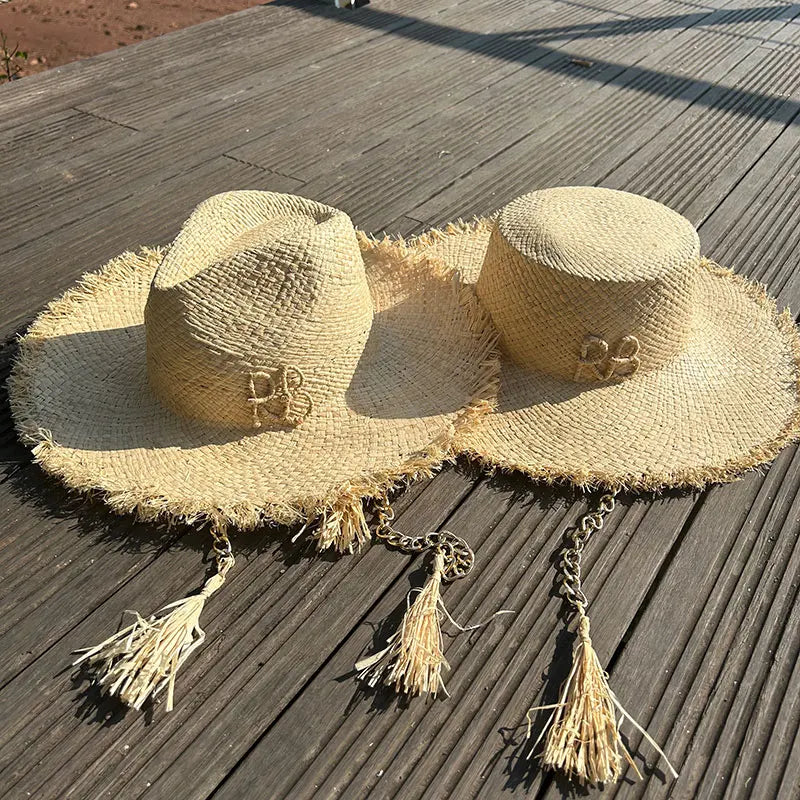Women's Summer Raffia Straw Pearl Chain Big Brim Sun Hat for Beach Vacation