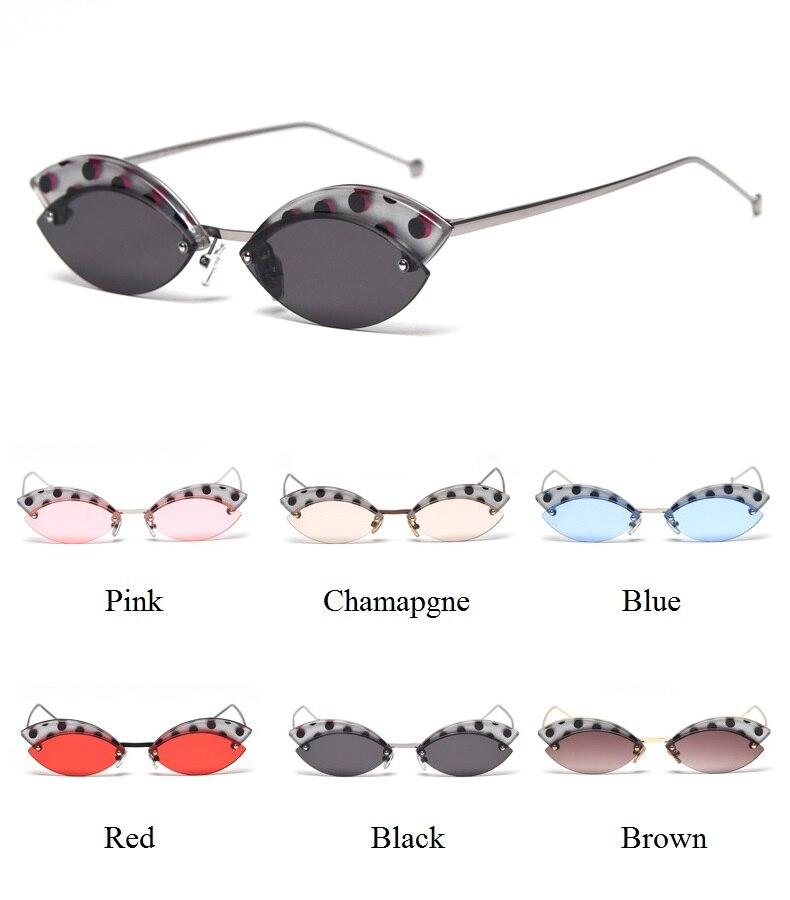 Petites lunettes de soleil sans monture œil de chat à monture léopard pour femmes élégantes