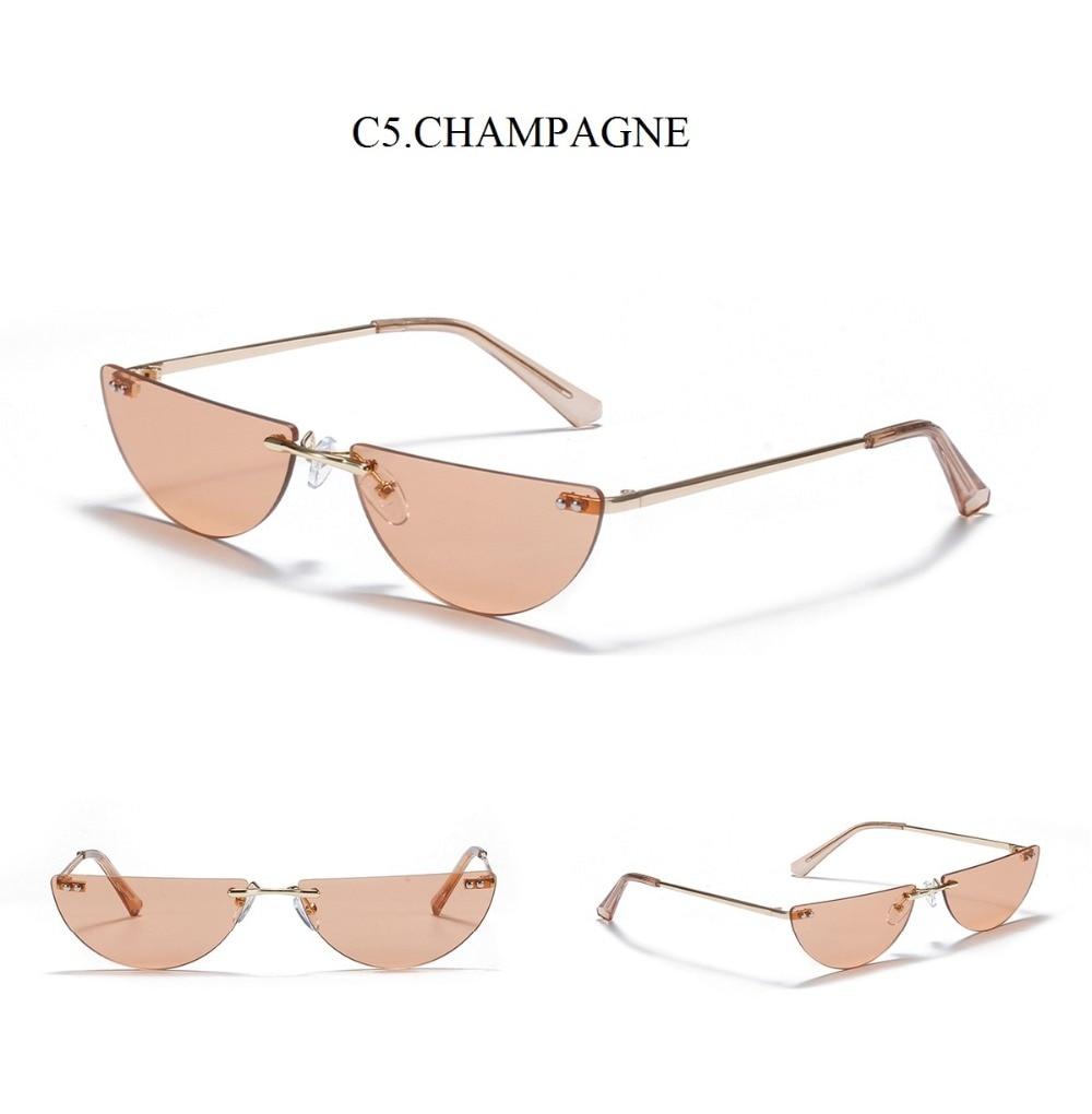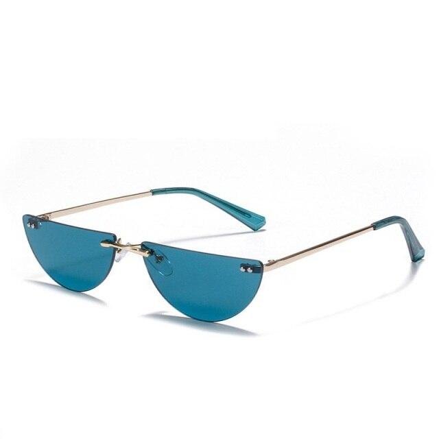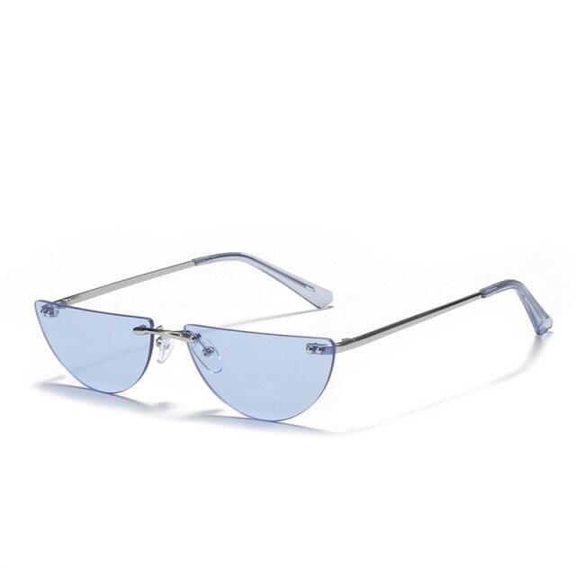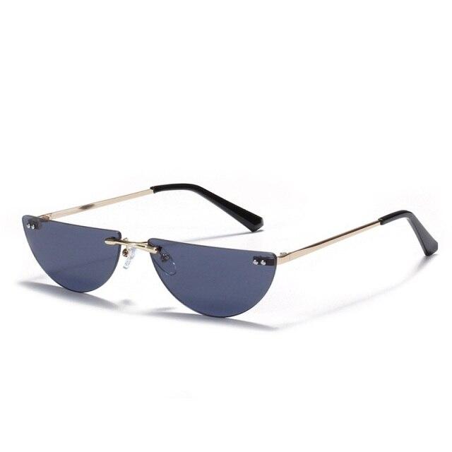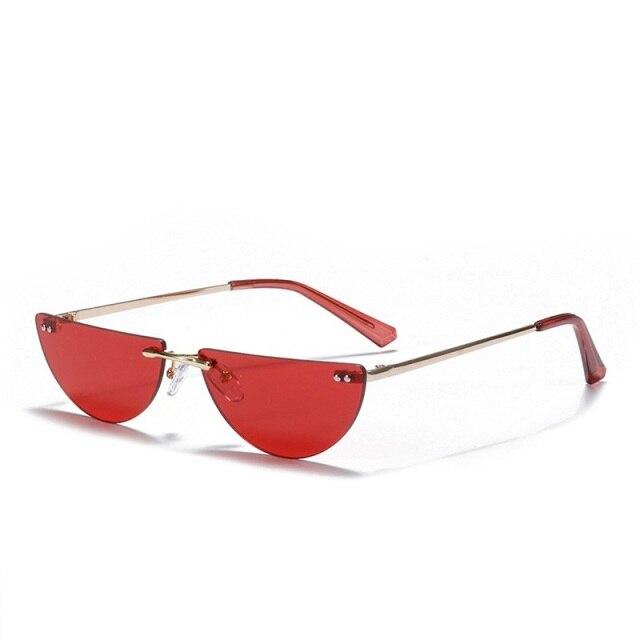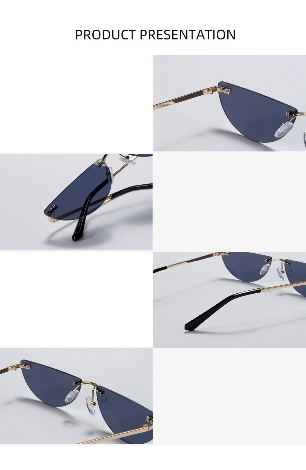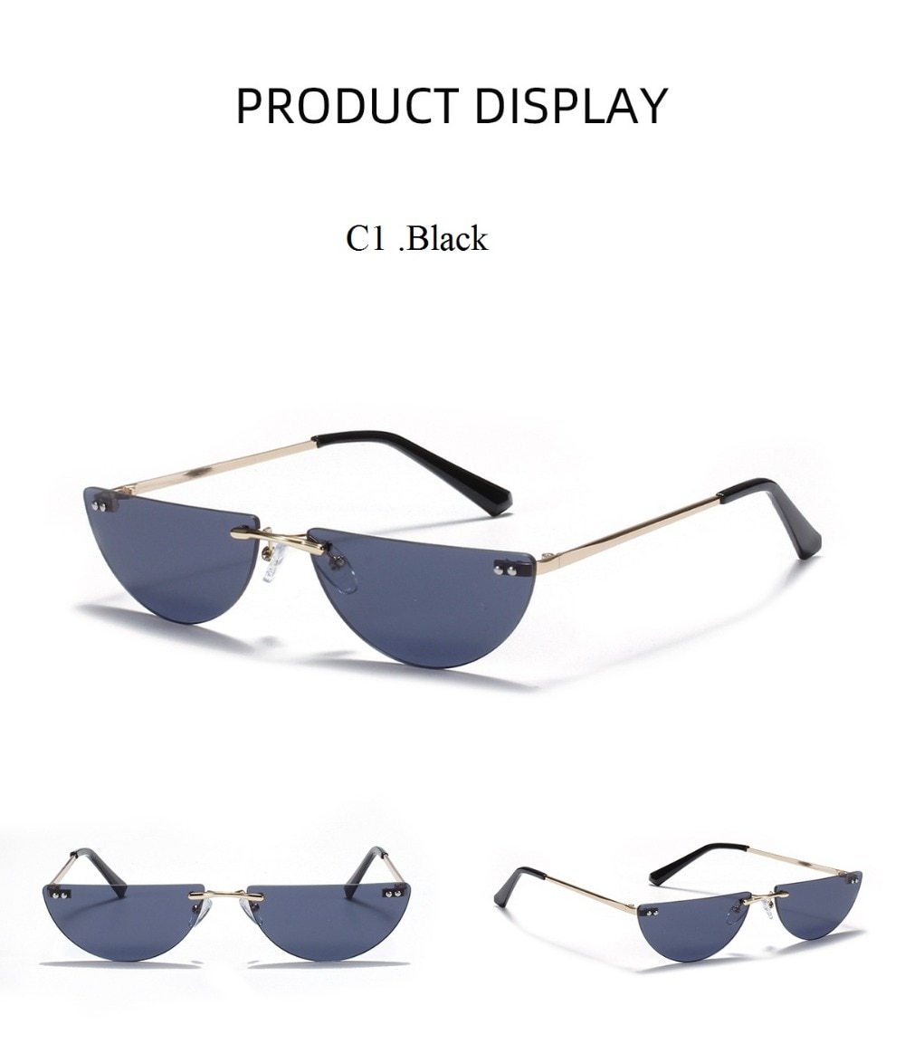Petites lunettes de soleil œil de chat Steampunk demi-rondes sans monture pour femmes