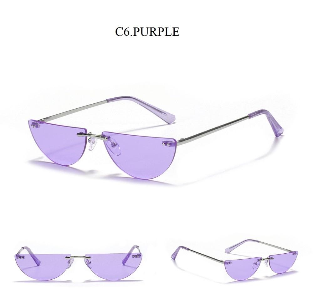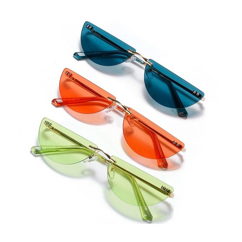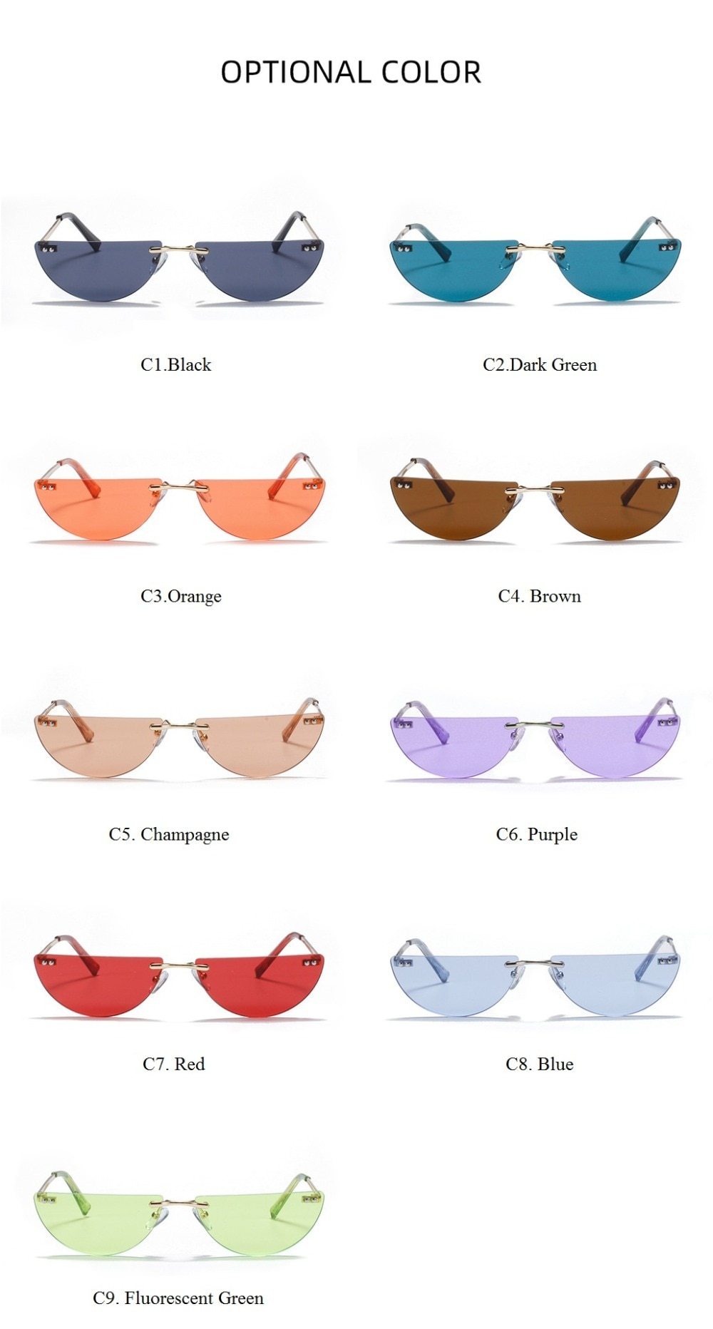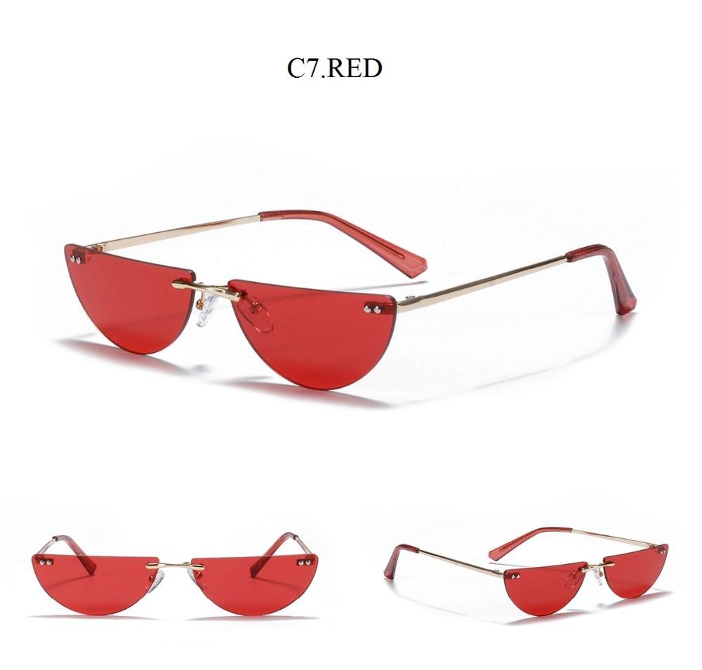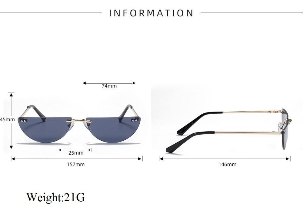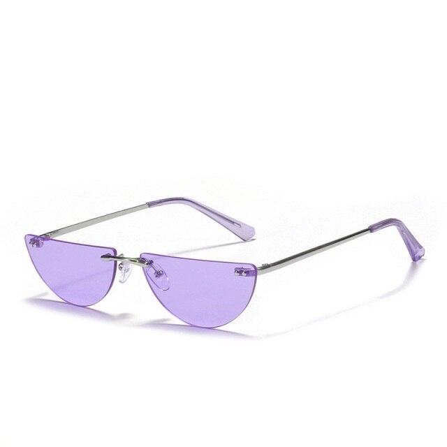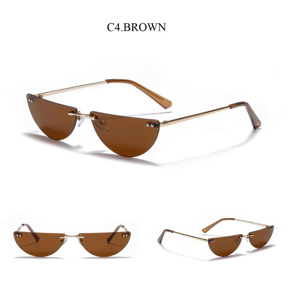 Petites lunettes de soleil œil de chat Steampunk demi-rondes sans monture pour femmes