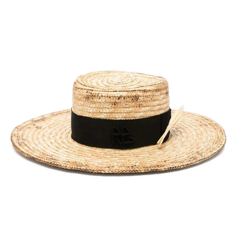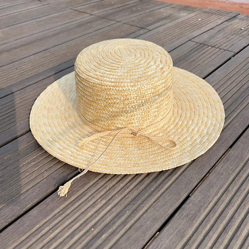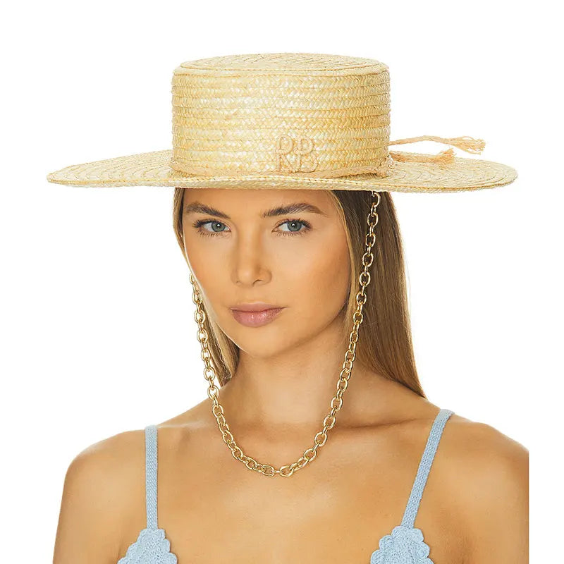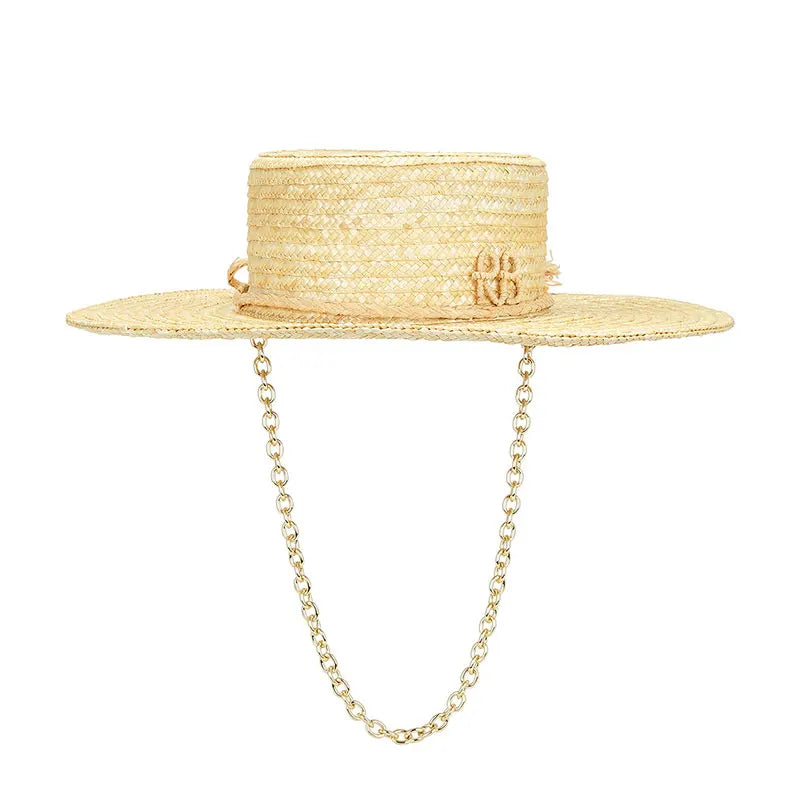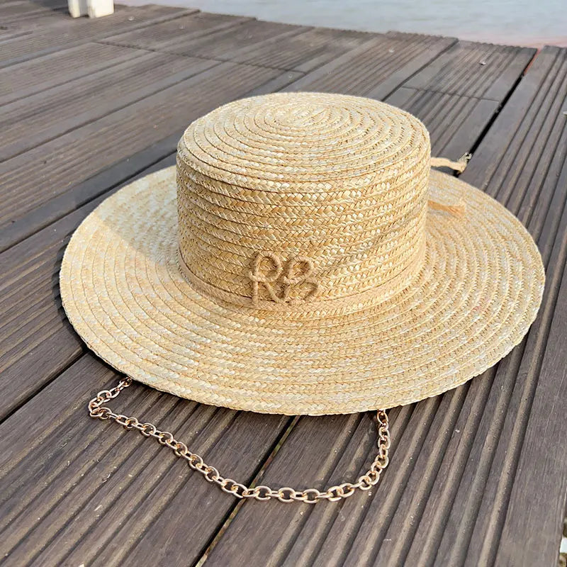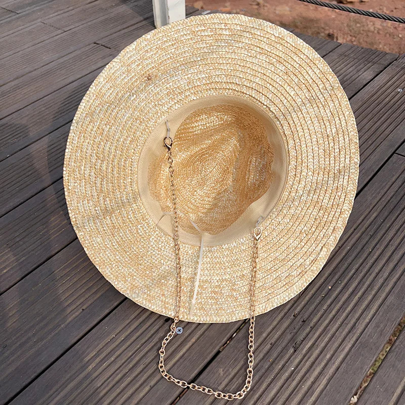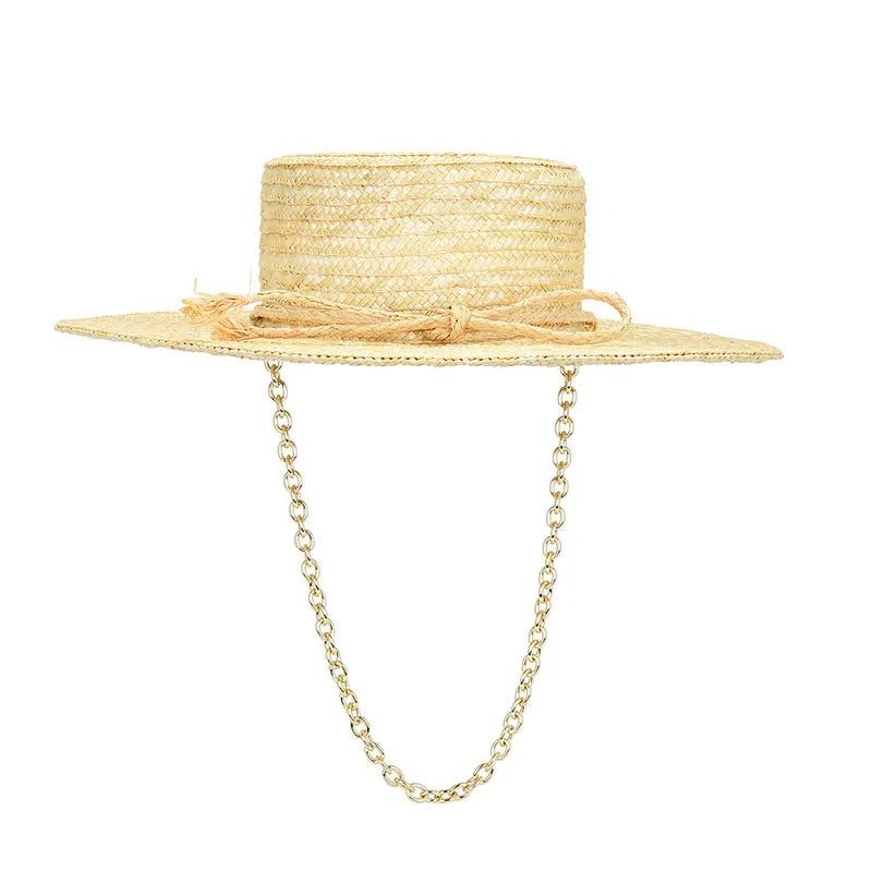 Handmade Designer Fashion Natural Straw Metal Chain Sun Hat for Women