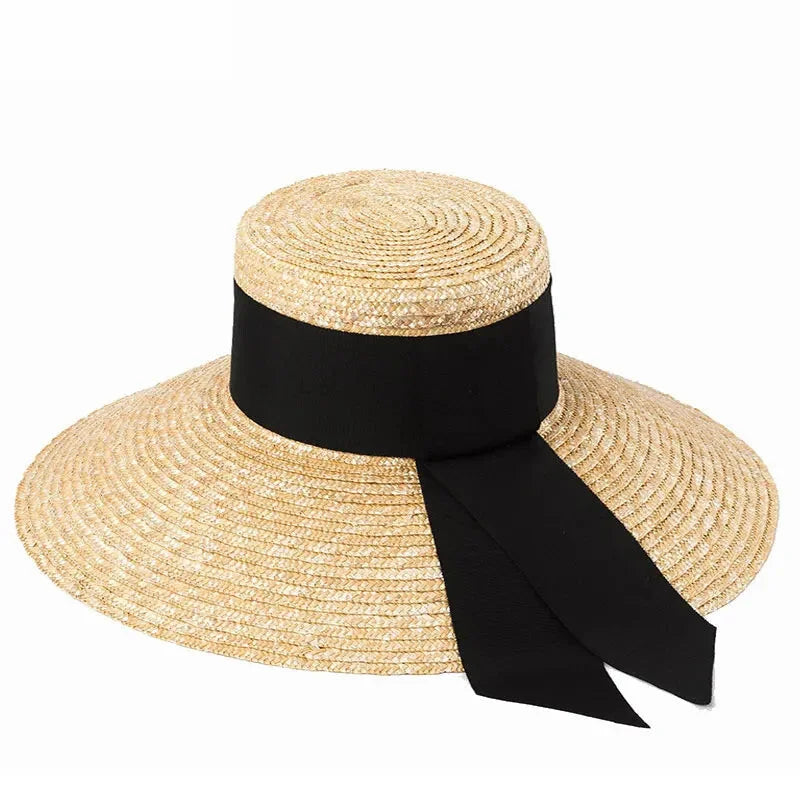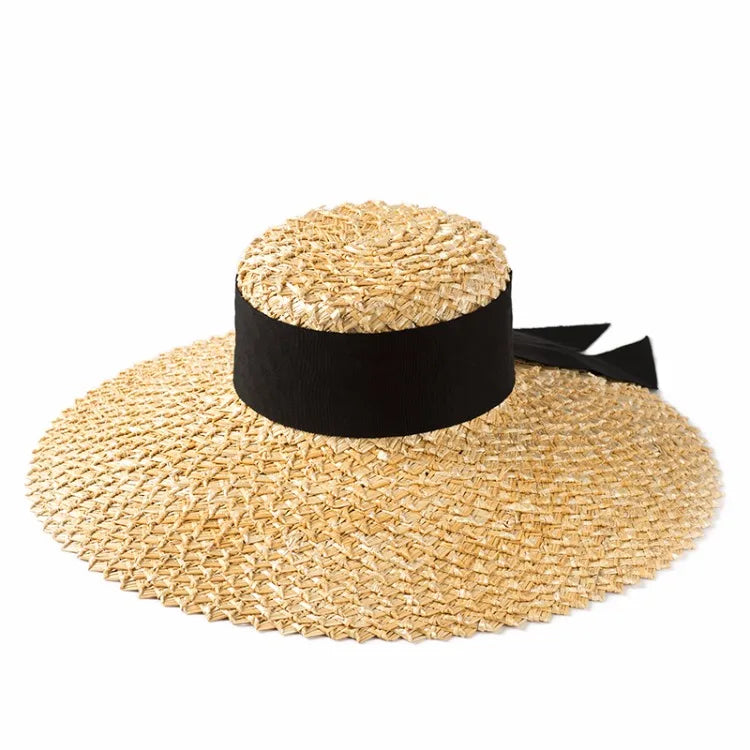 Handmade Summer Classical Wheat Straw Hat 15cm Big Wide Brim Sun Hat