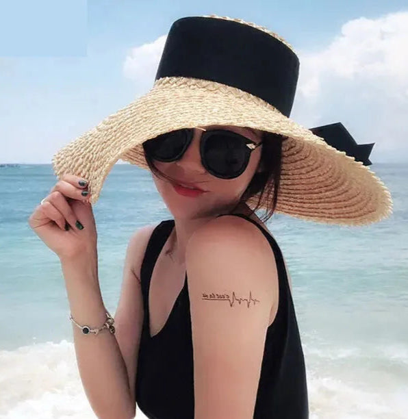 Wear this fashionable, handmade women's hat to flaunt a stylish summer look. Made with straw, it is durable and looks appealing. With a wide brim, it helps you stay cool and comfortable on hot sunny days. Moreover, the wide ribbon decoration gives you a much more chic look. Grab your's now!