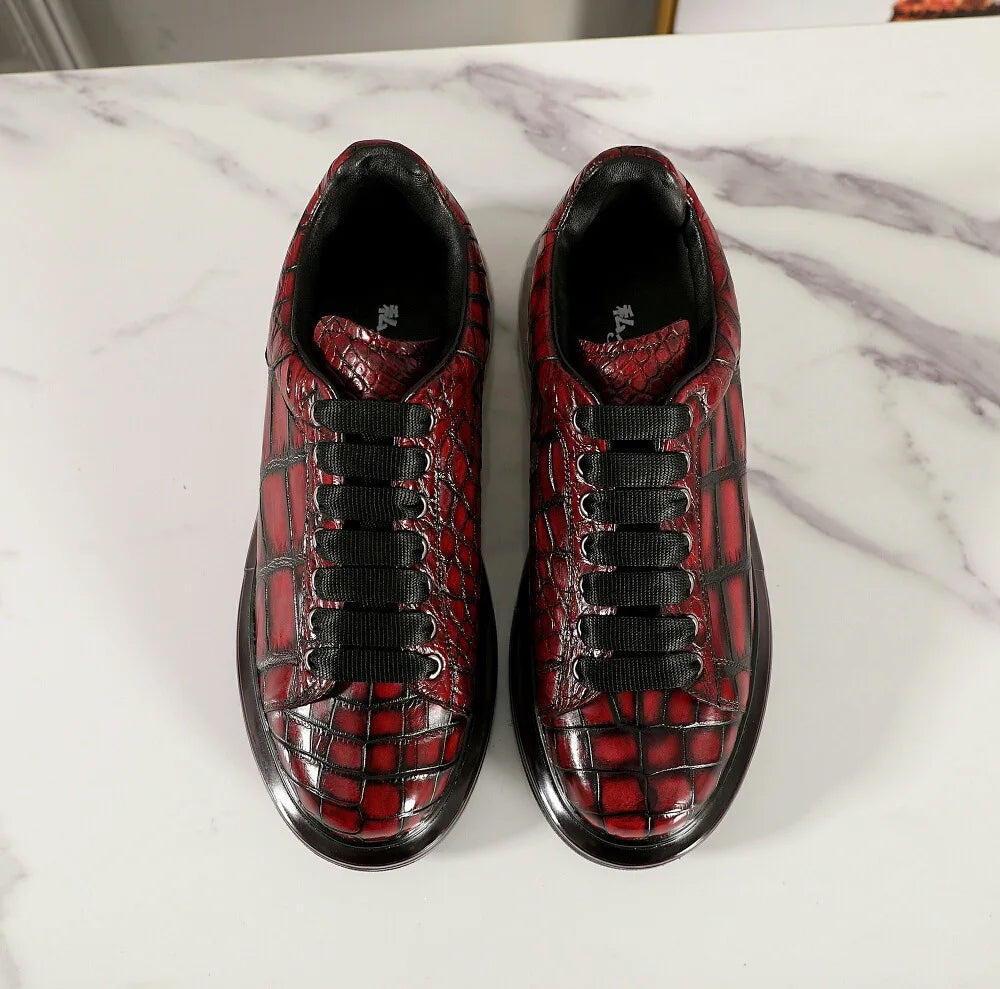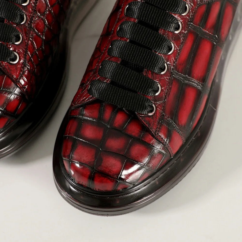Glossy Crocodile Belly Skin Genuine Leather Casual Shoes for Men