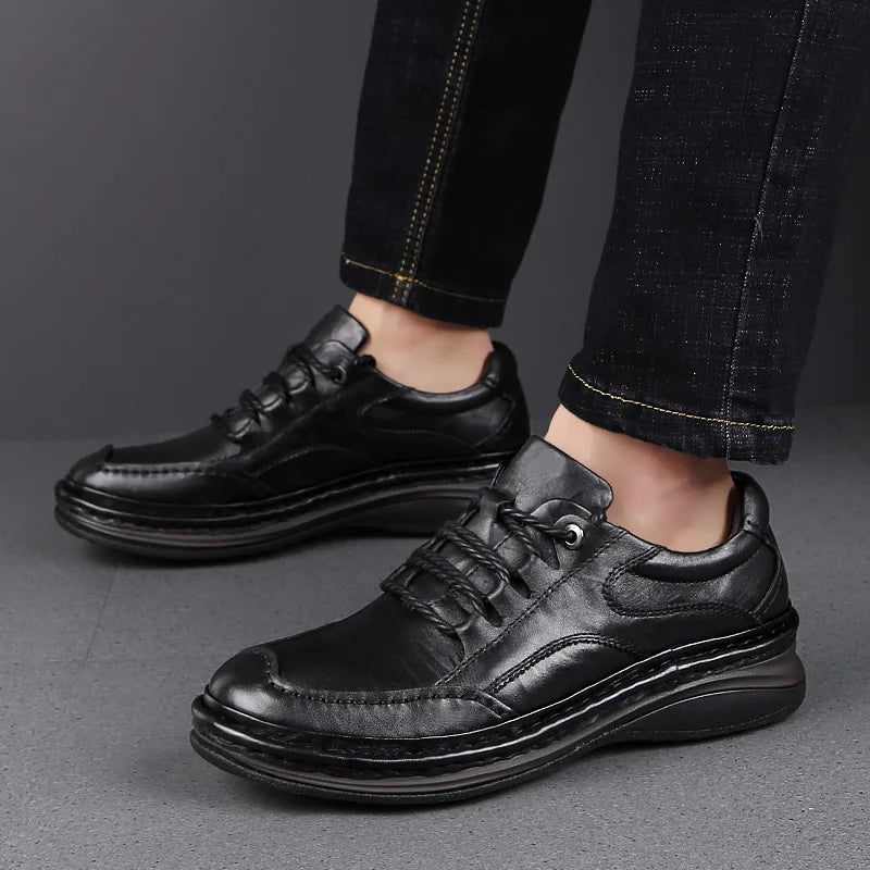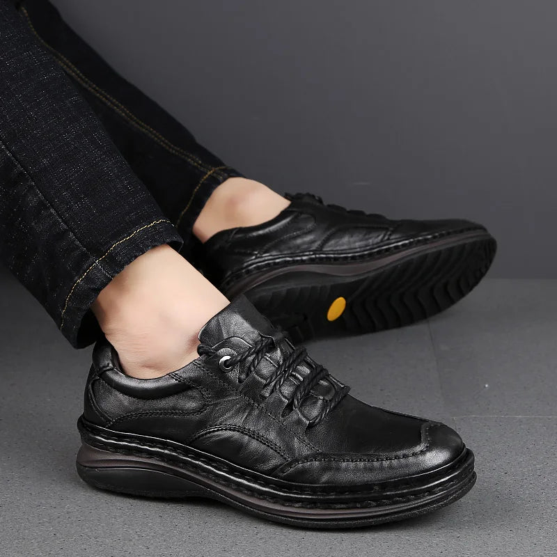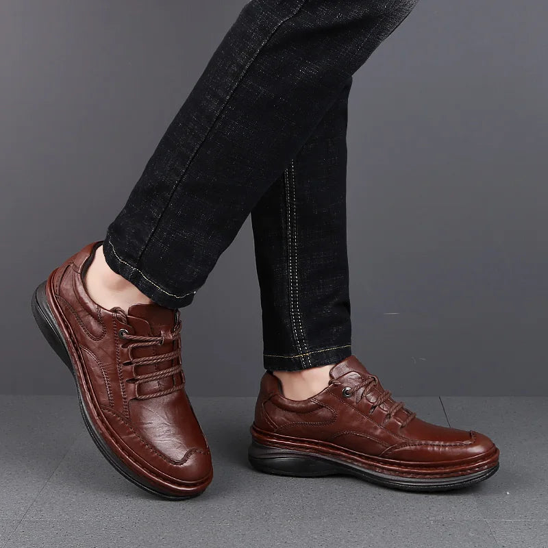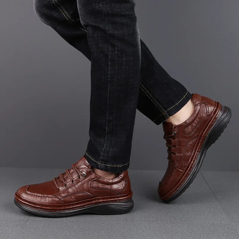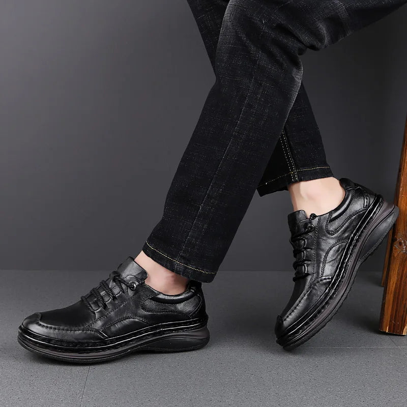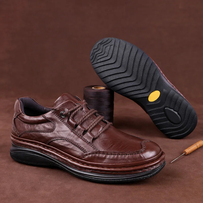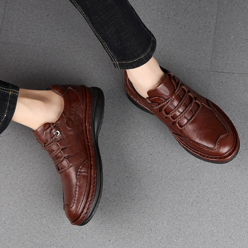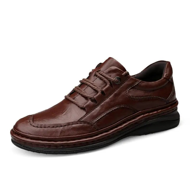 Men's Business Casual Breathable Genuine Leather Lace Up Flats Shoes