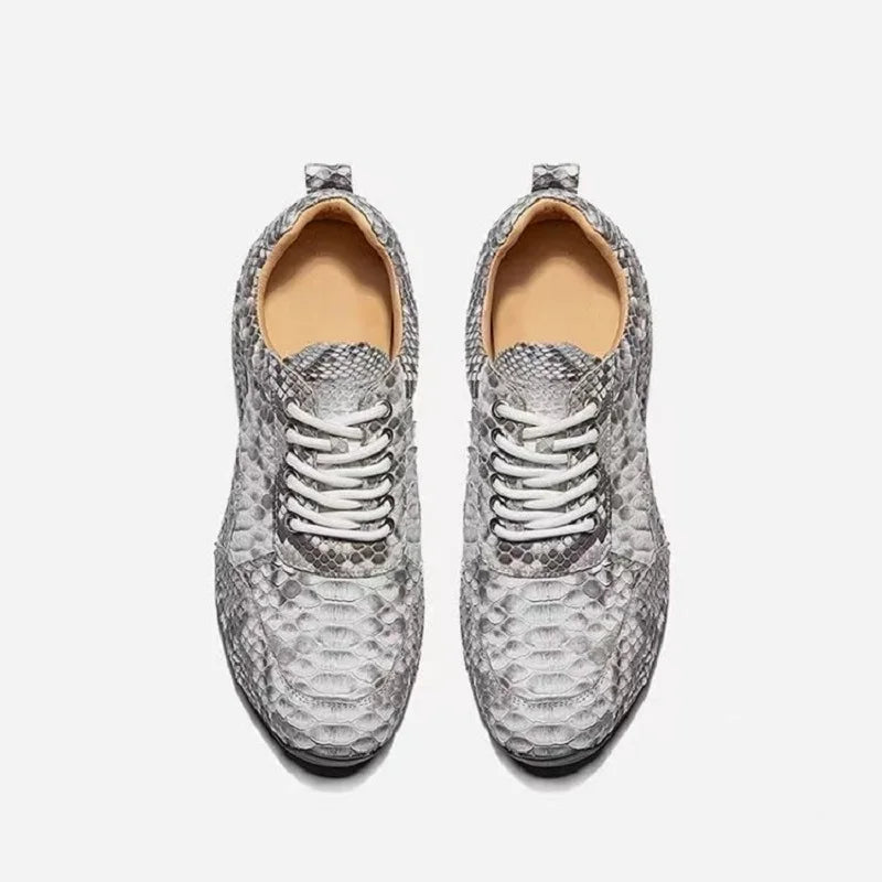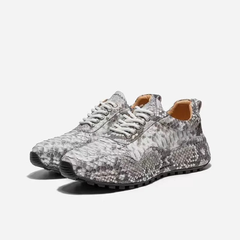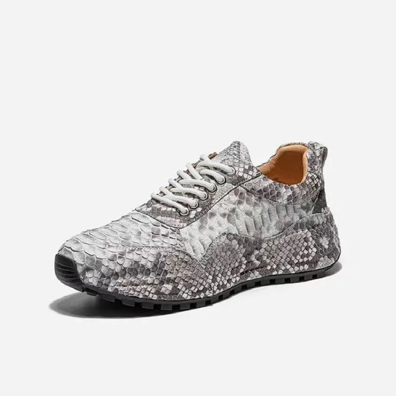 Patchwork Lace Up Snake Skin Genuine Leather Gray Casual Shoes for Men