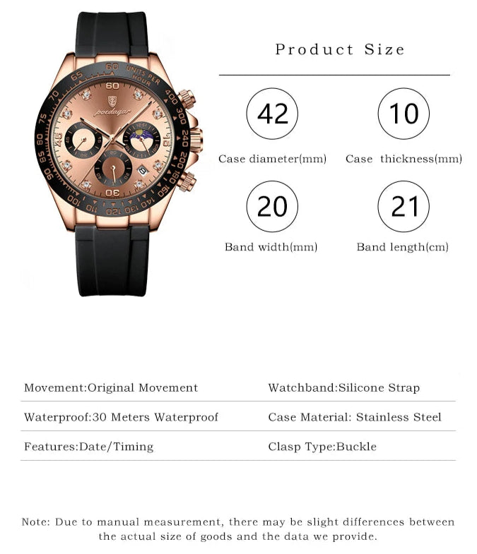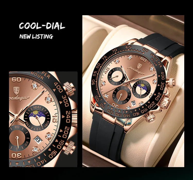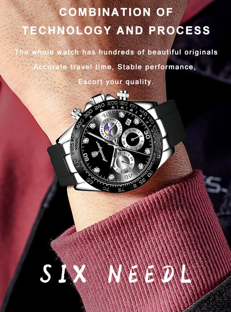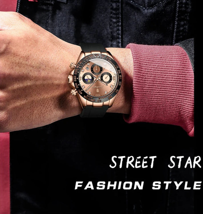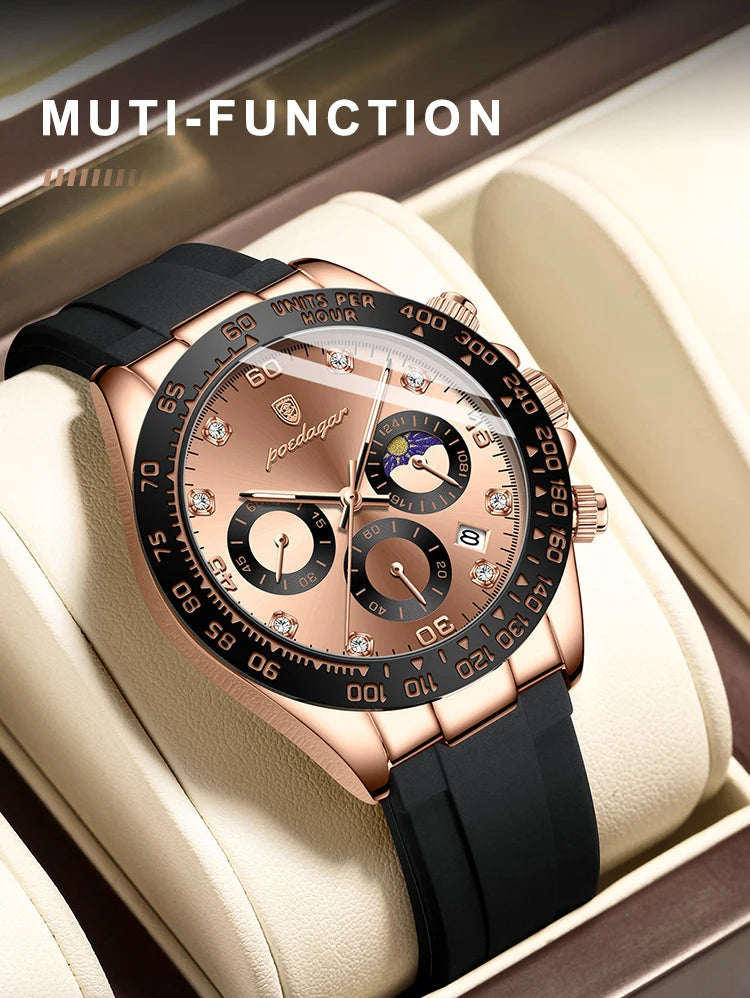 Luxury Business Casual Style Chronograph Date Luminous Waterproof Silicone Strap Men's Watch