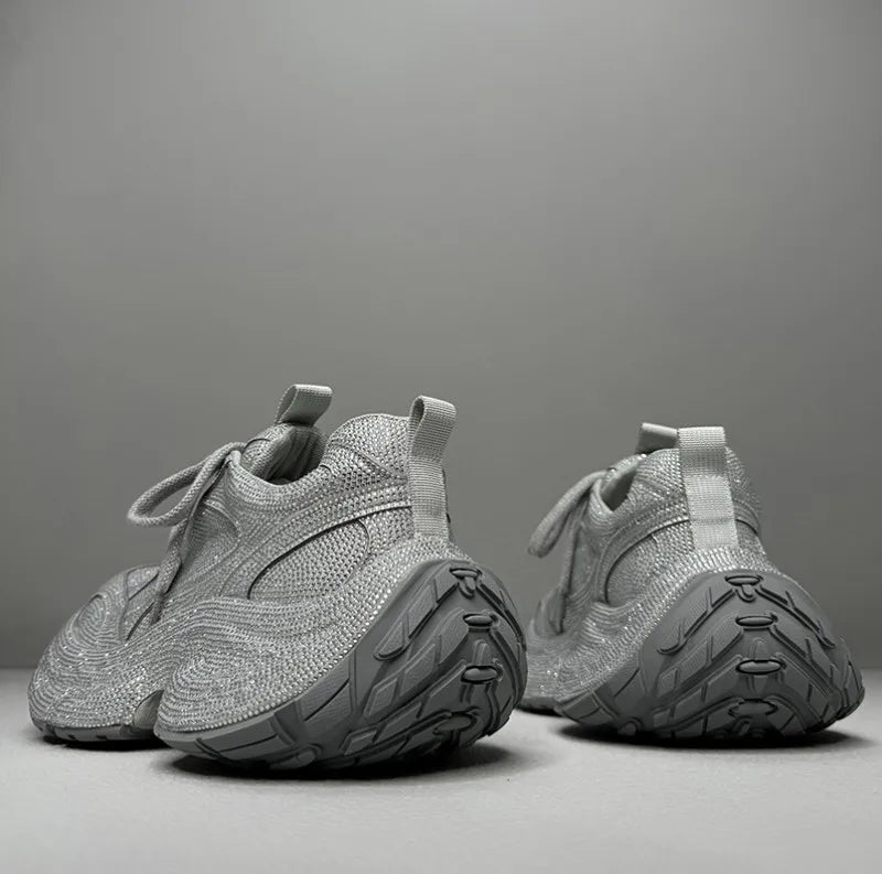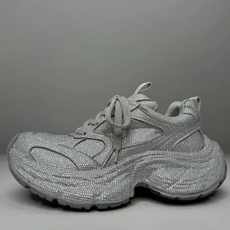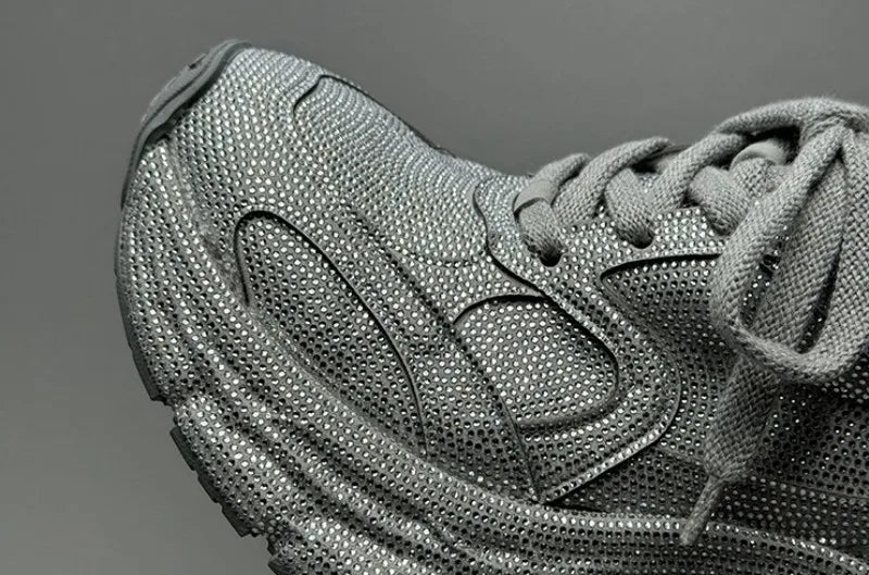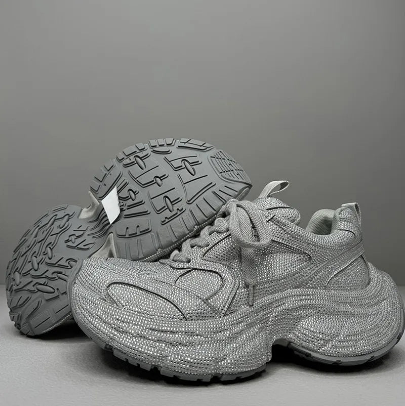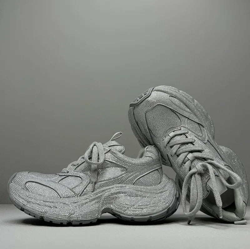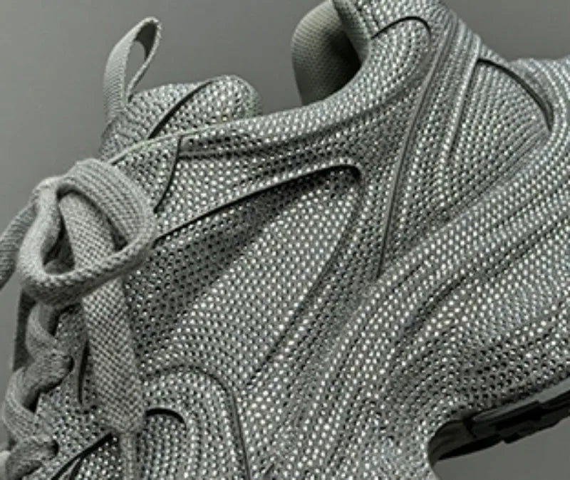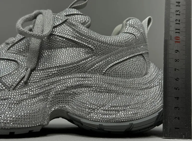 Men's Casual Leather Diamonds Lace Up High Heel Round Toe Non Slip Sneakers