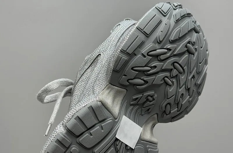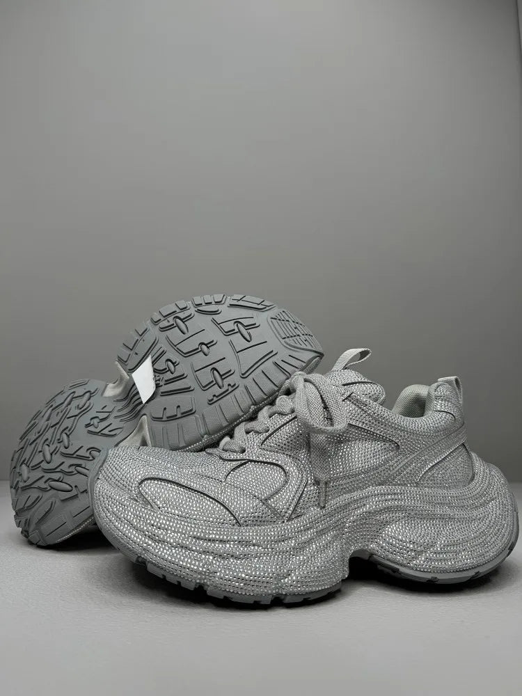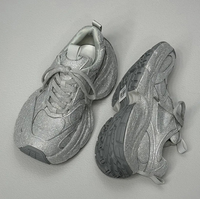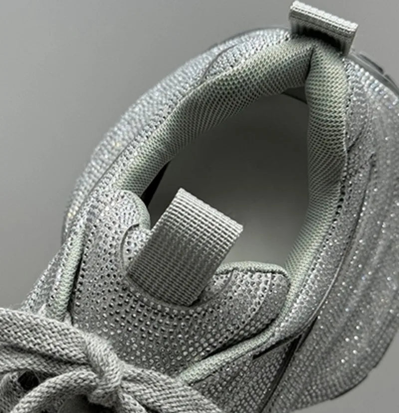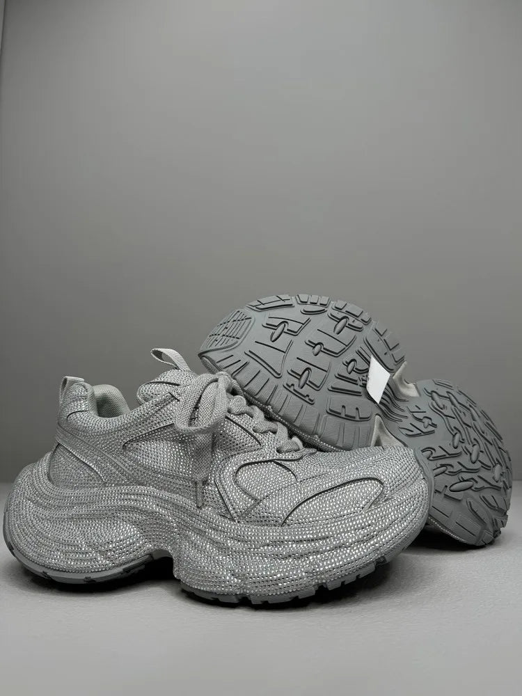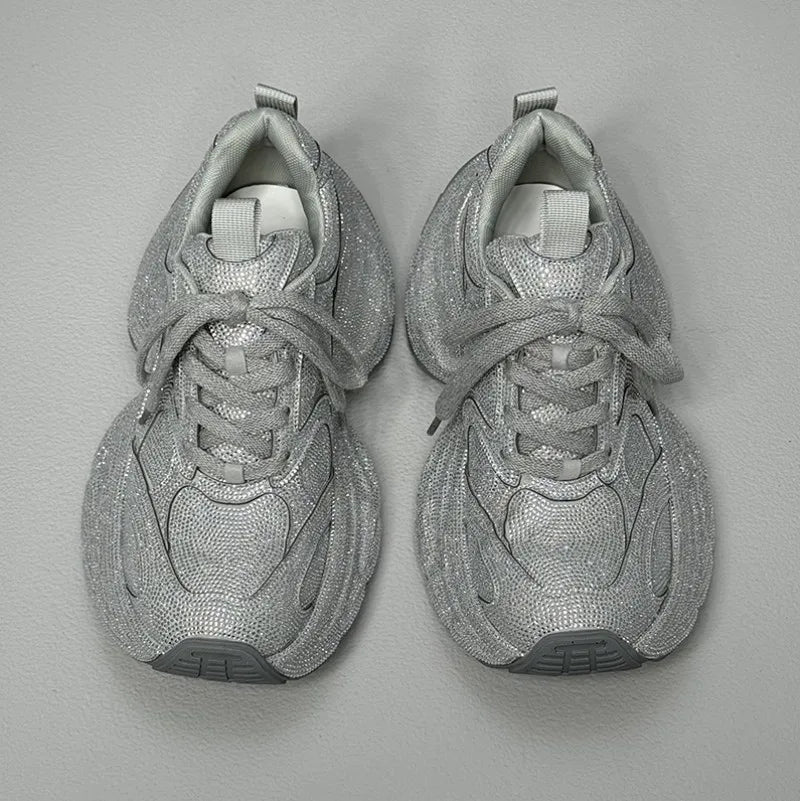 Men's Casual Leather Diamonds Lace Up High Heel Round Toe Non Slip Sneakers