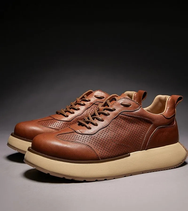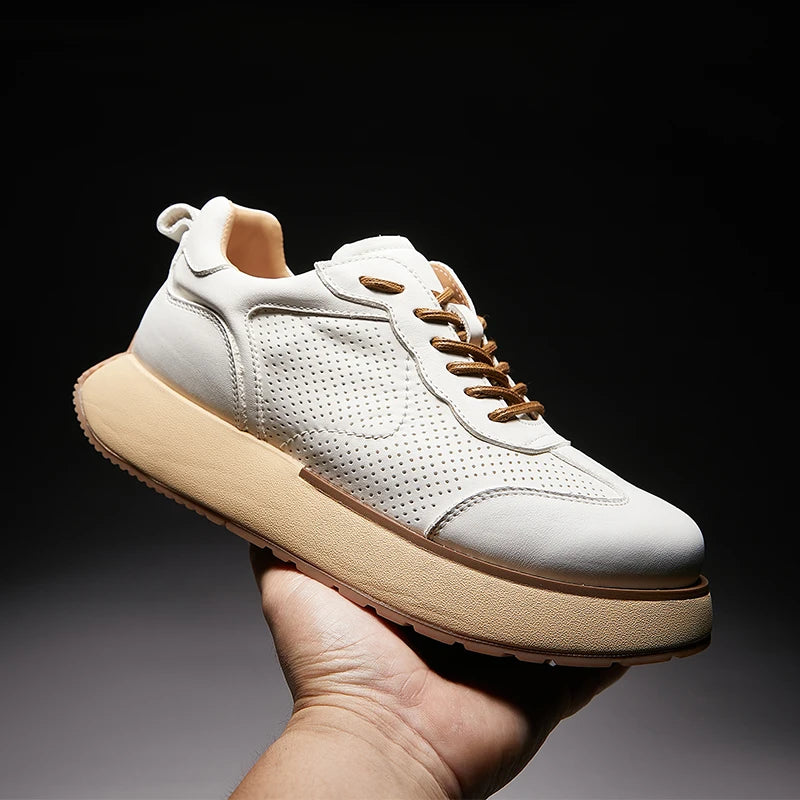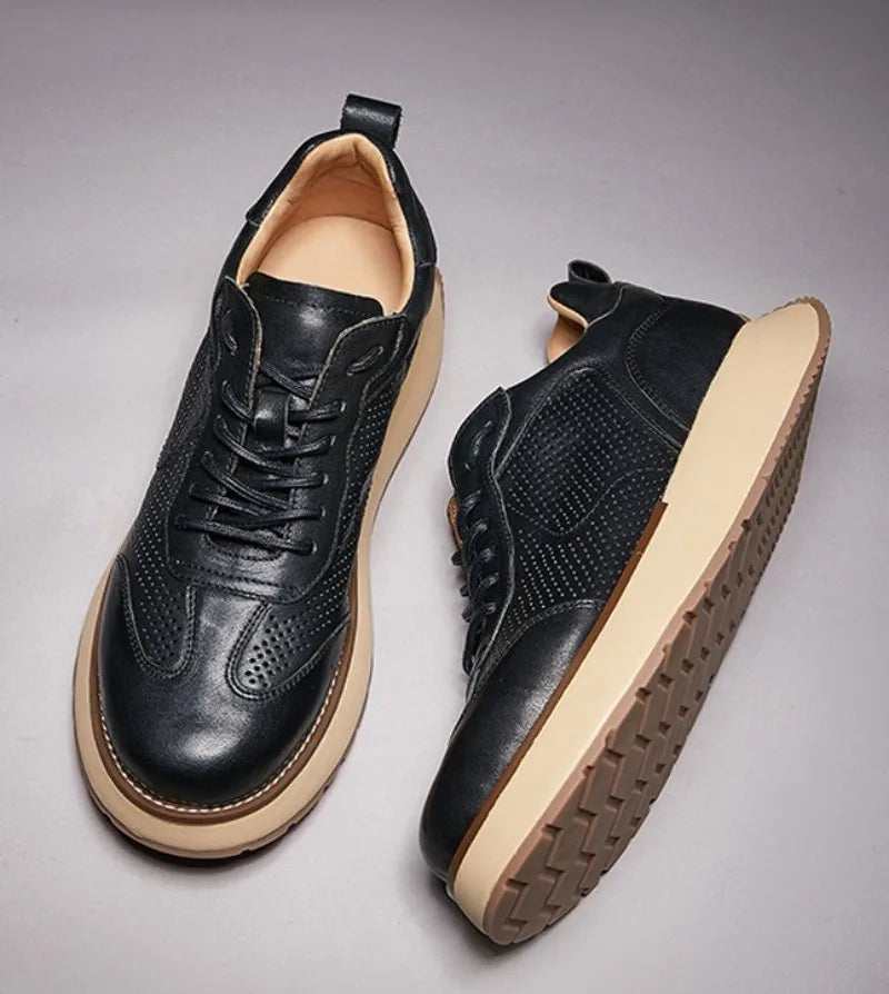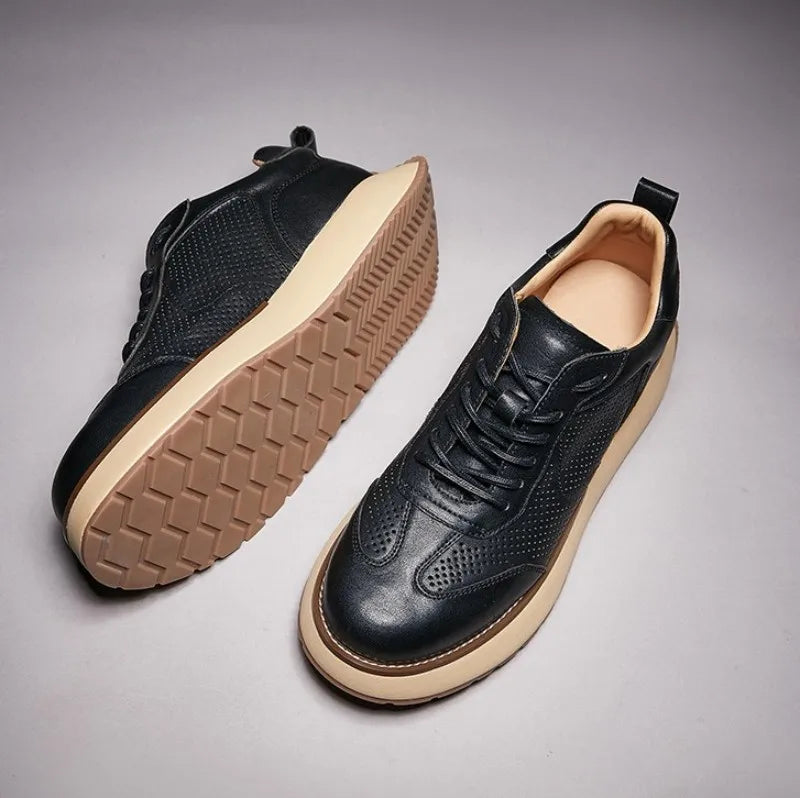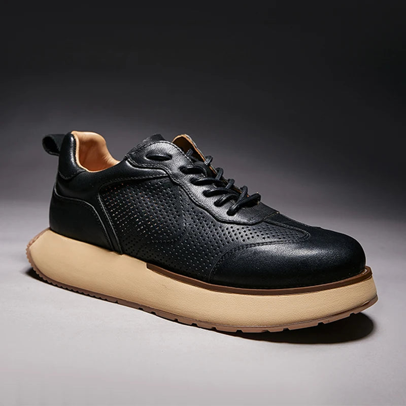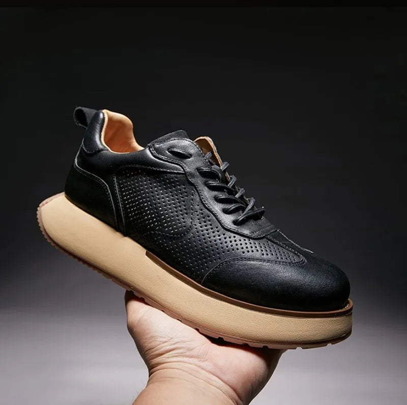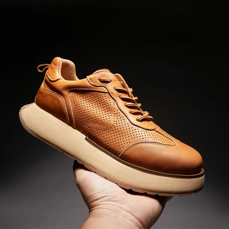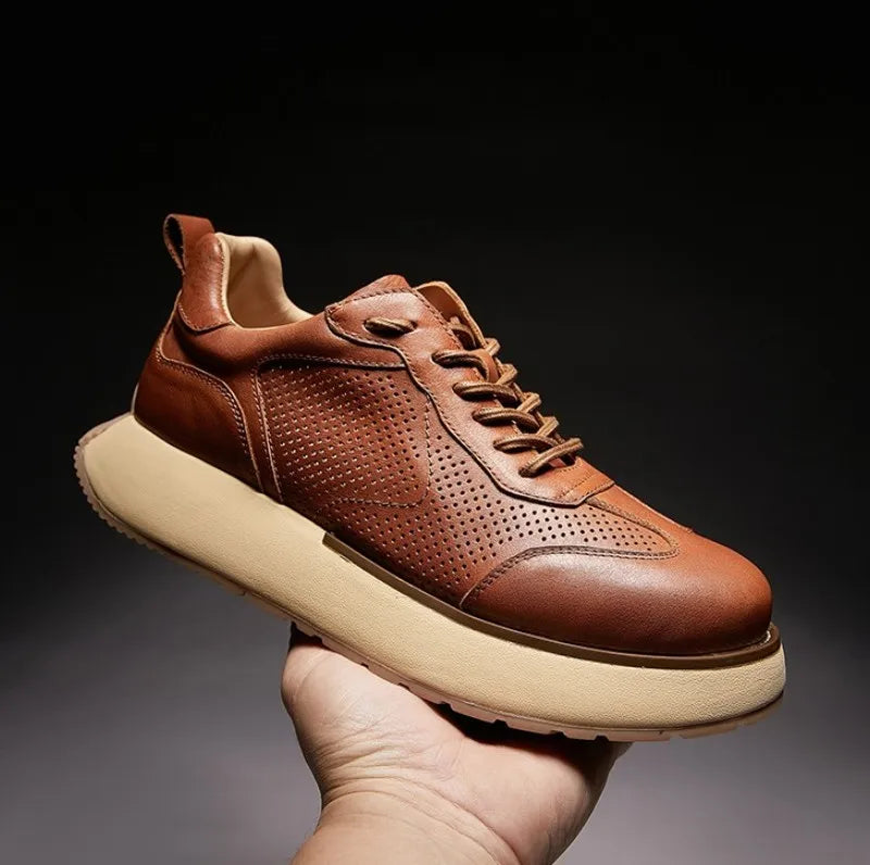 Men's Daily Wear Genuine Leather Breathable Patchwork Round Toe Casual Shoes