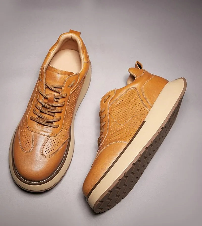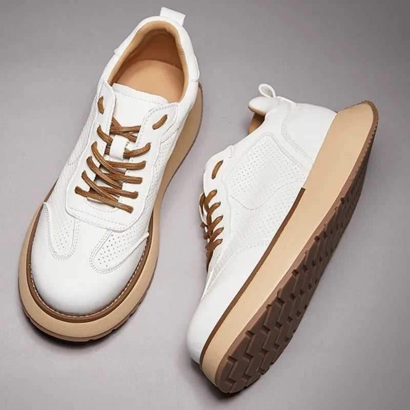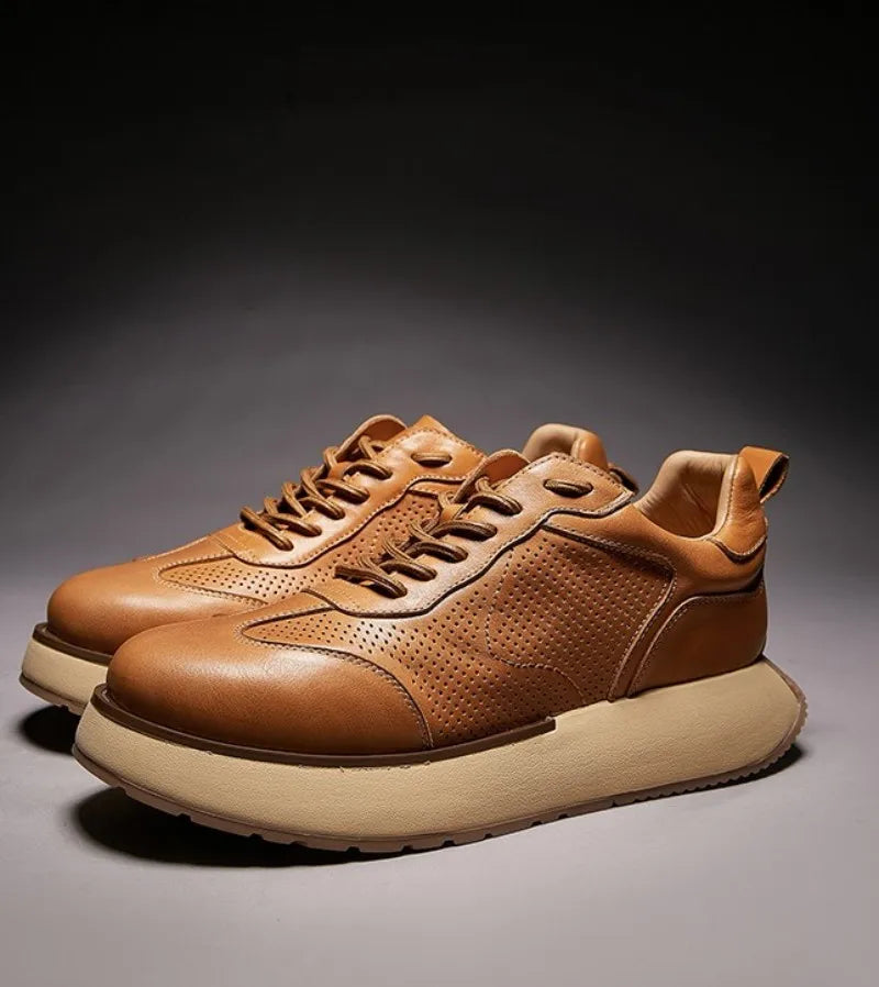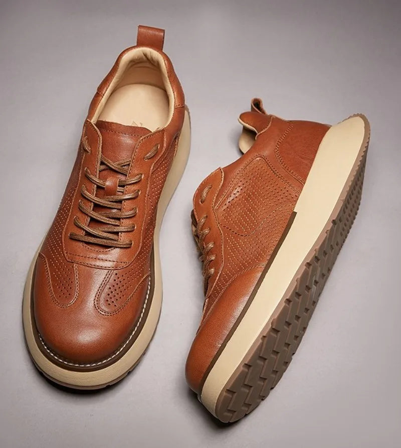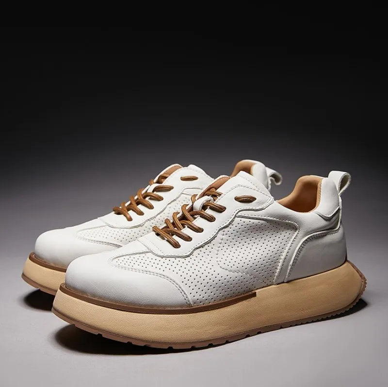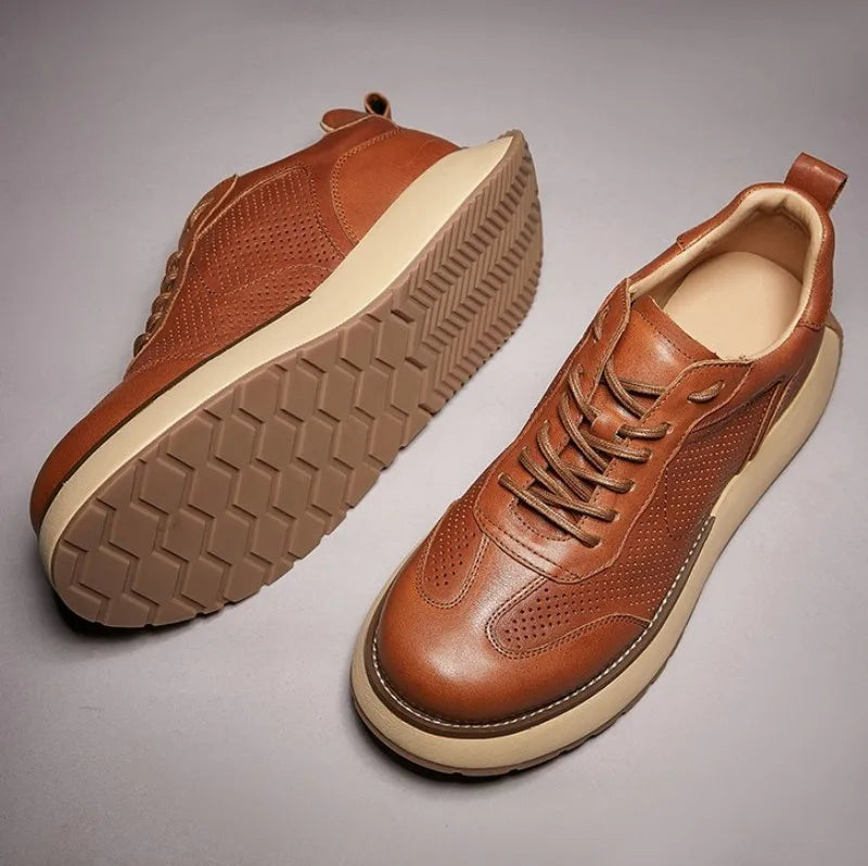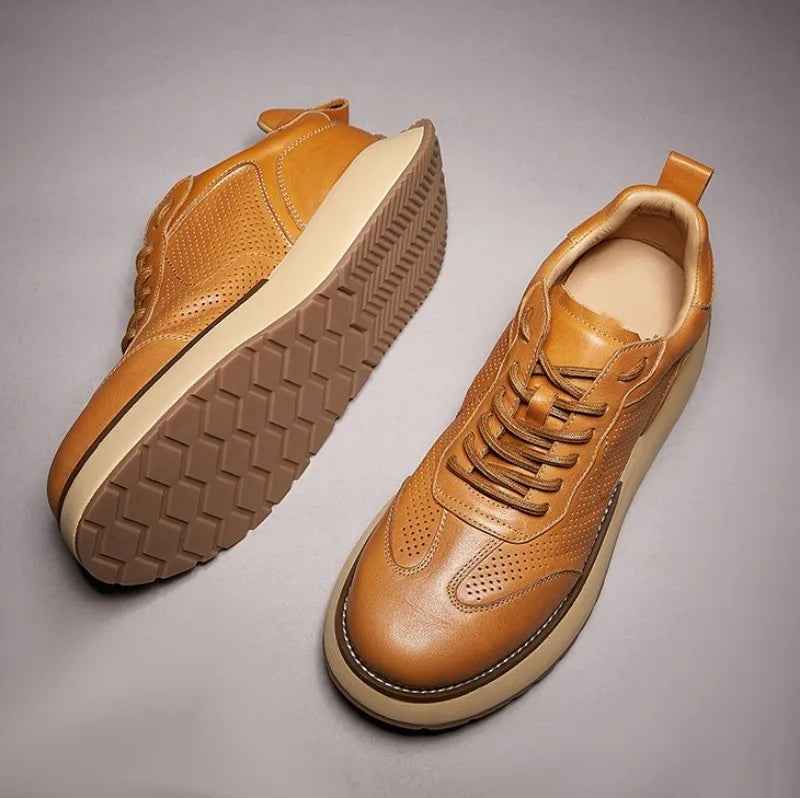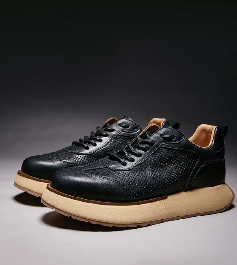 Men's Daily Wear Genuine Leather Breathable Patchwork Round Toe Casual Shoes