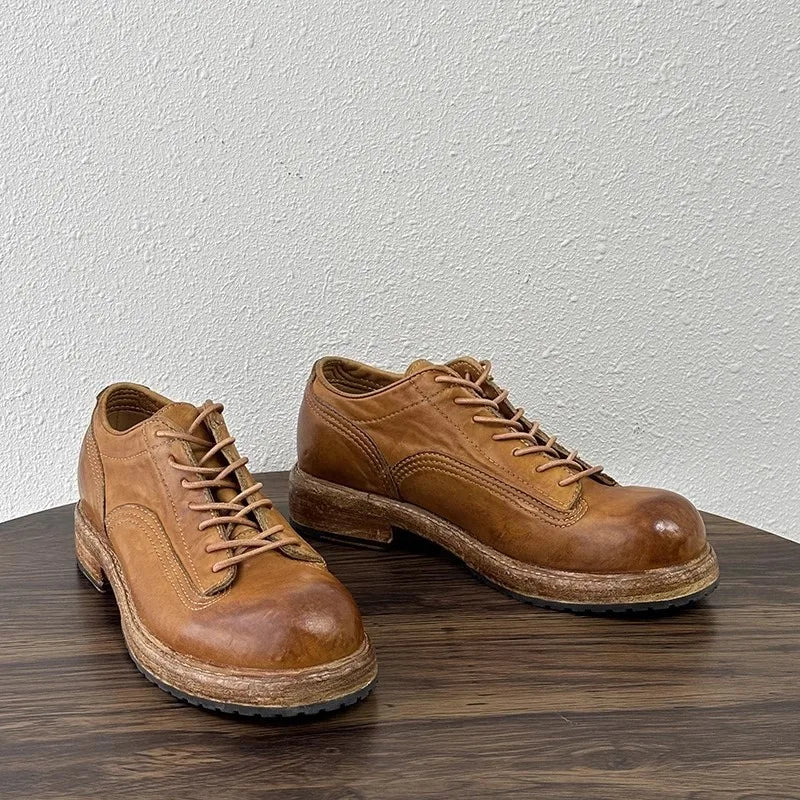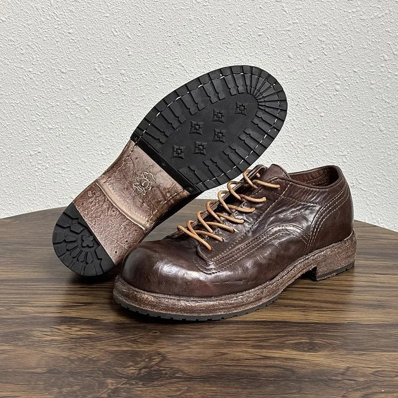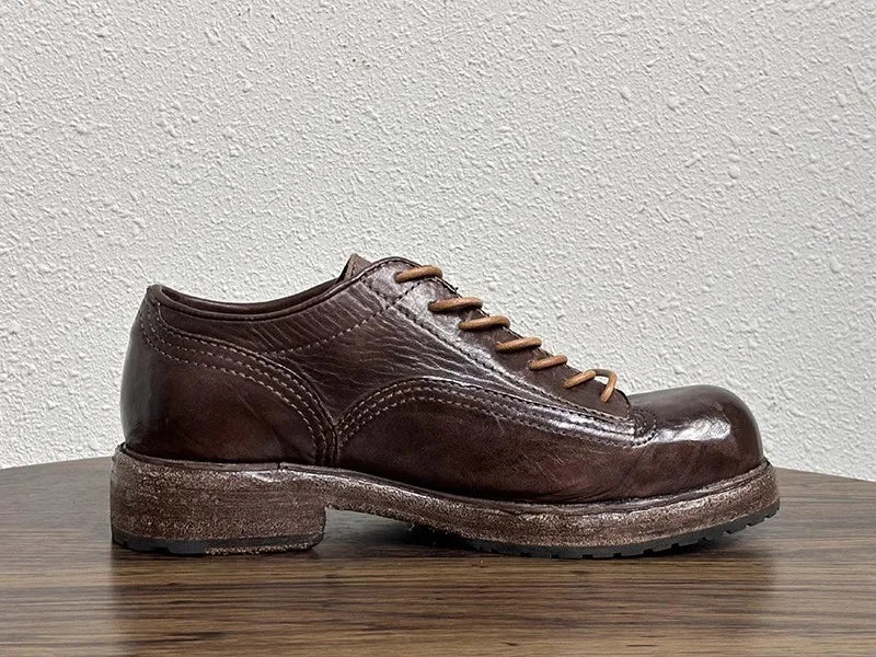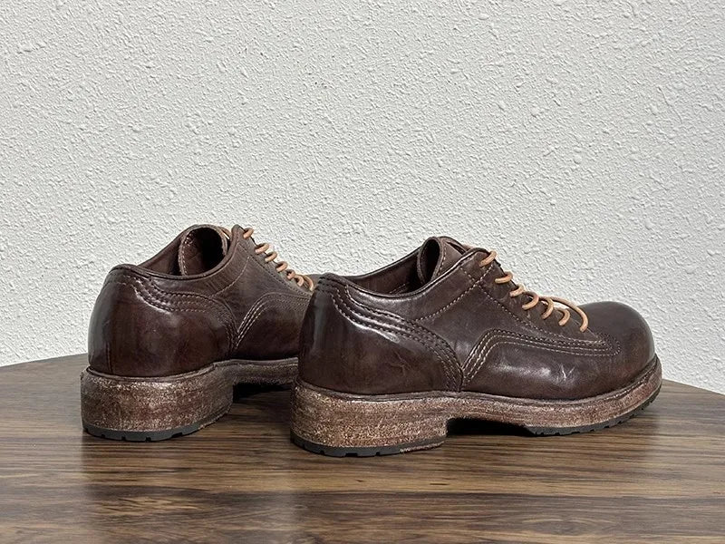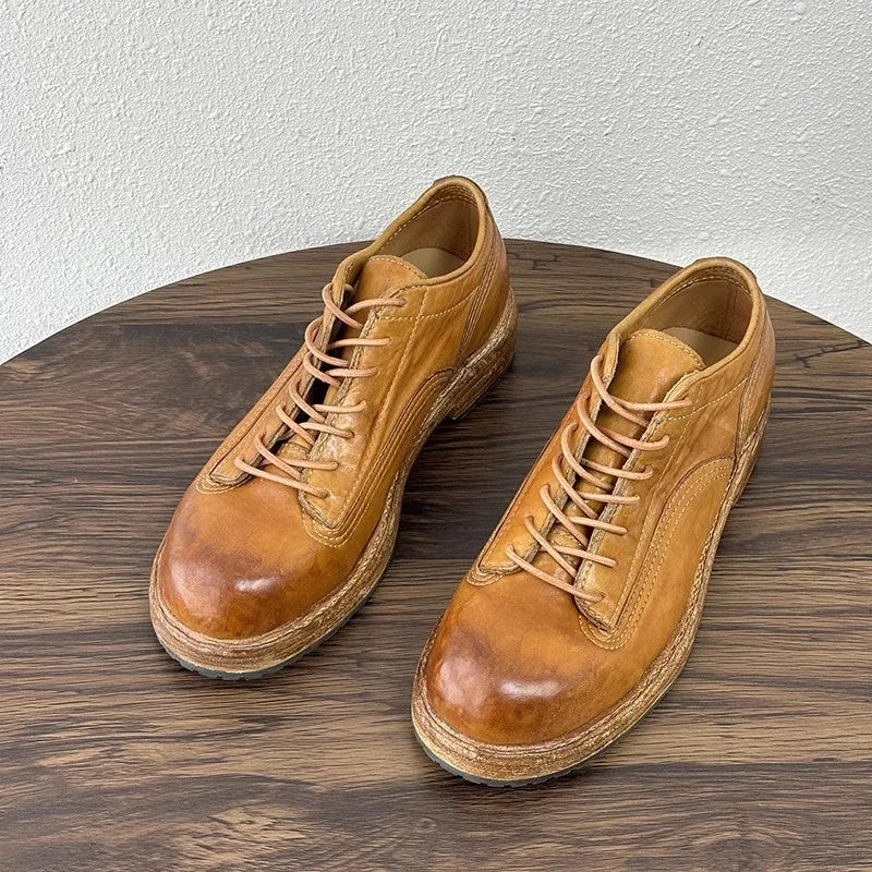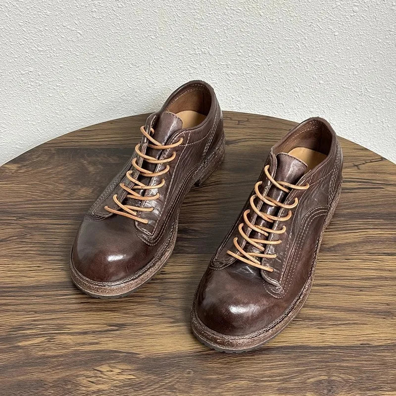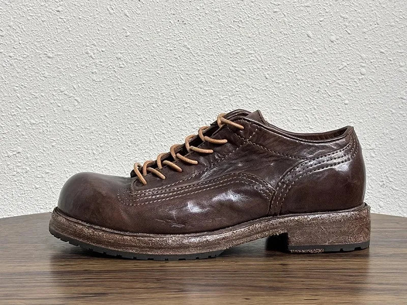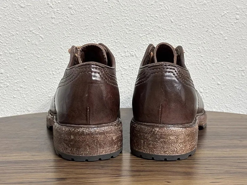 Men's Retro Handmade Horsehide Leather Lace Up Thick Bottom Derby Dress Shoes