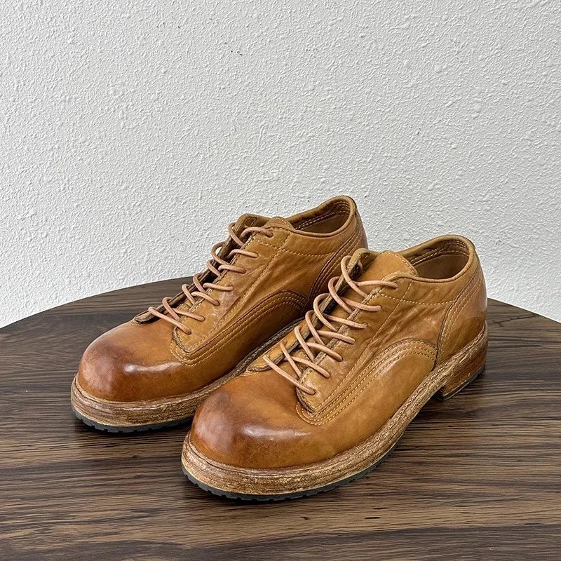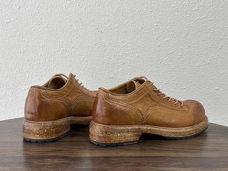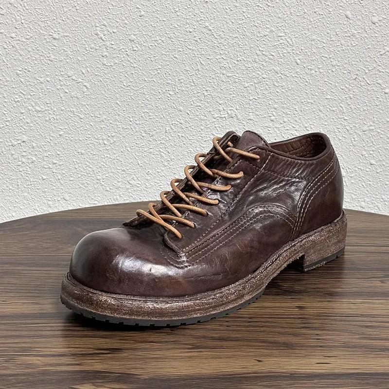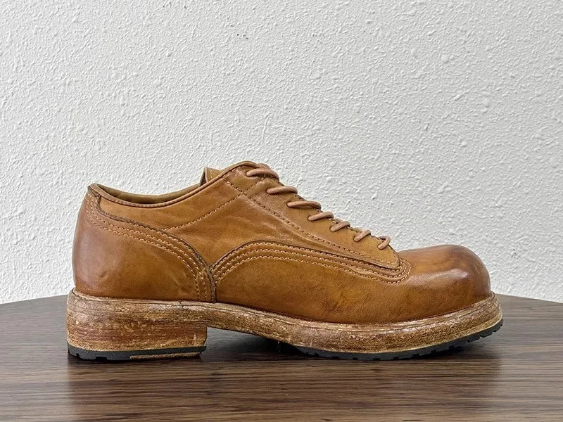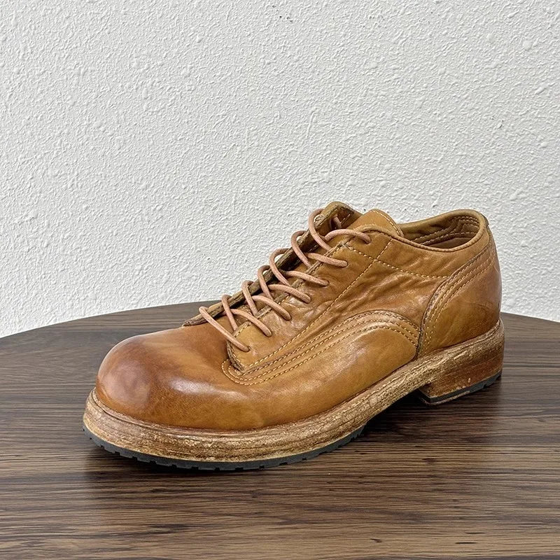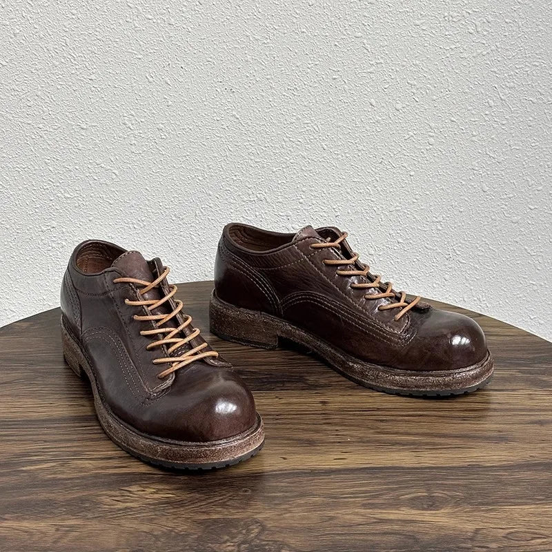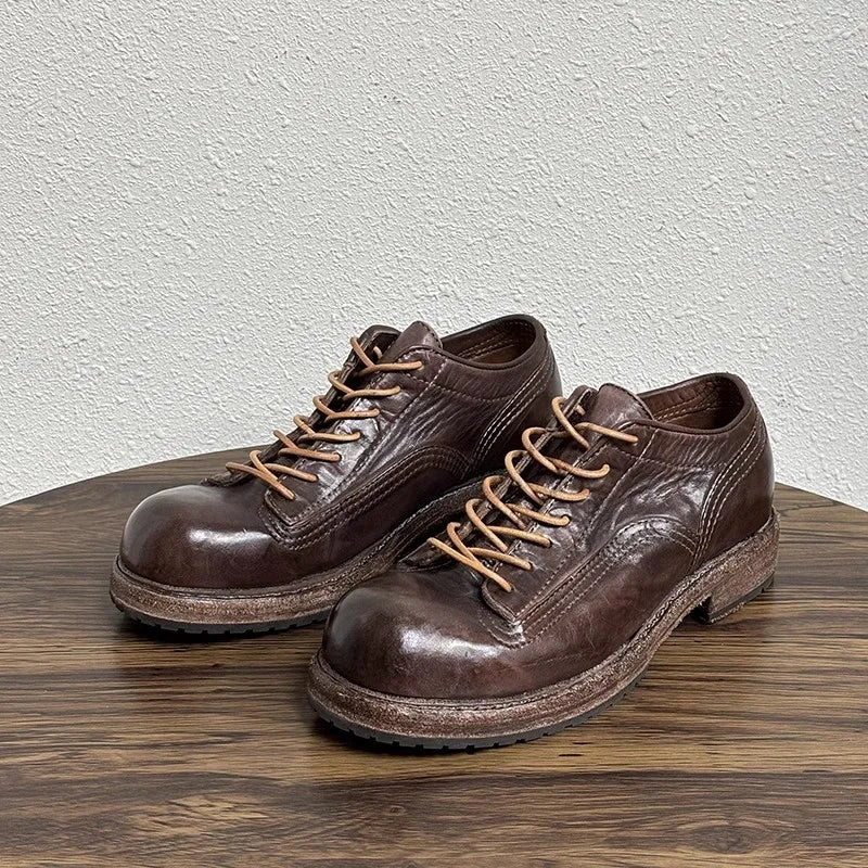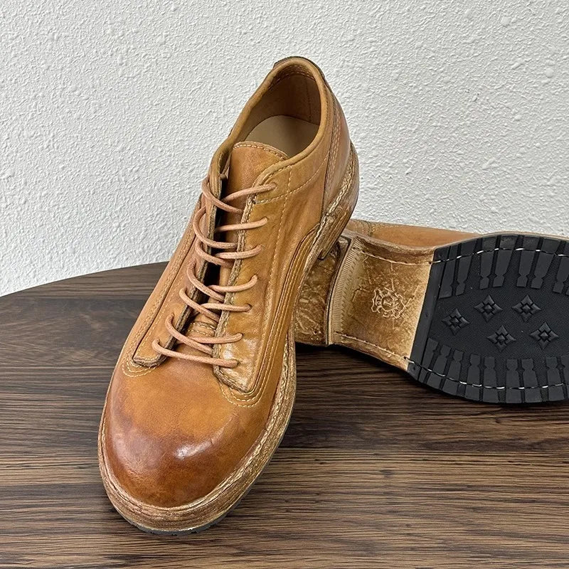 Men's Retro Handmade Horsehide Leather Lace Up Thick Bottom Derby Dress Shoes