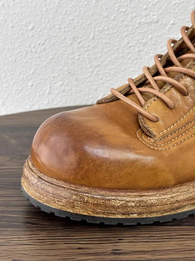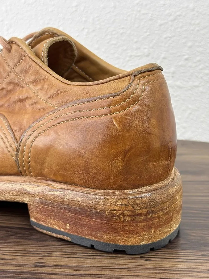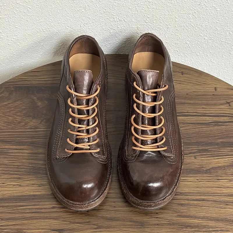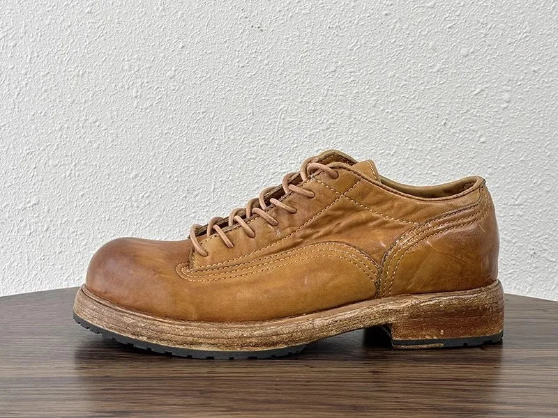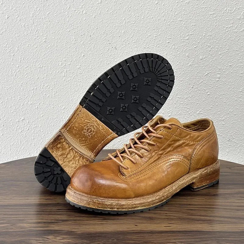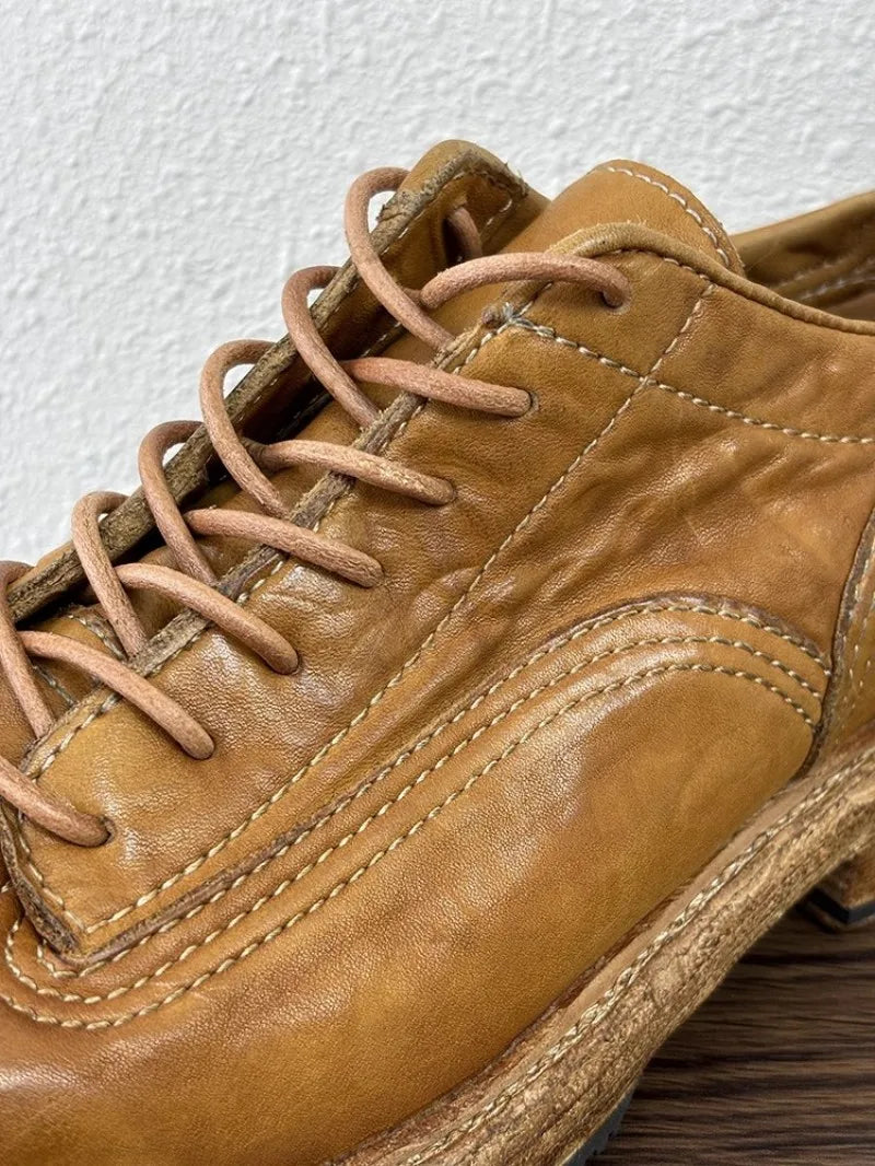 Men's Retro Handmade Horsehide Leather Lace Up Thick Bottom Derby Dress Shoes