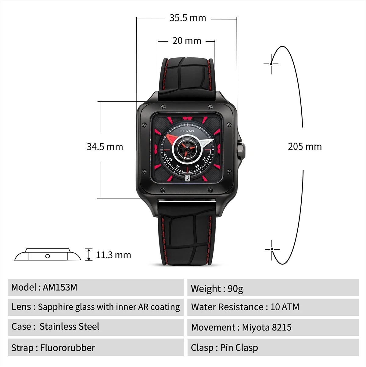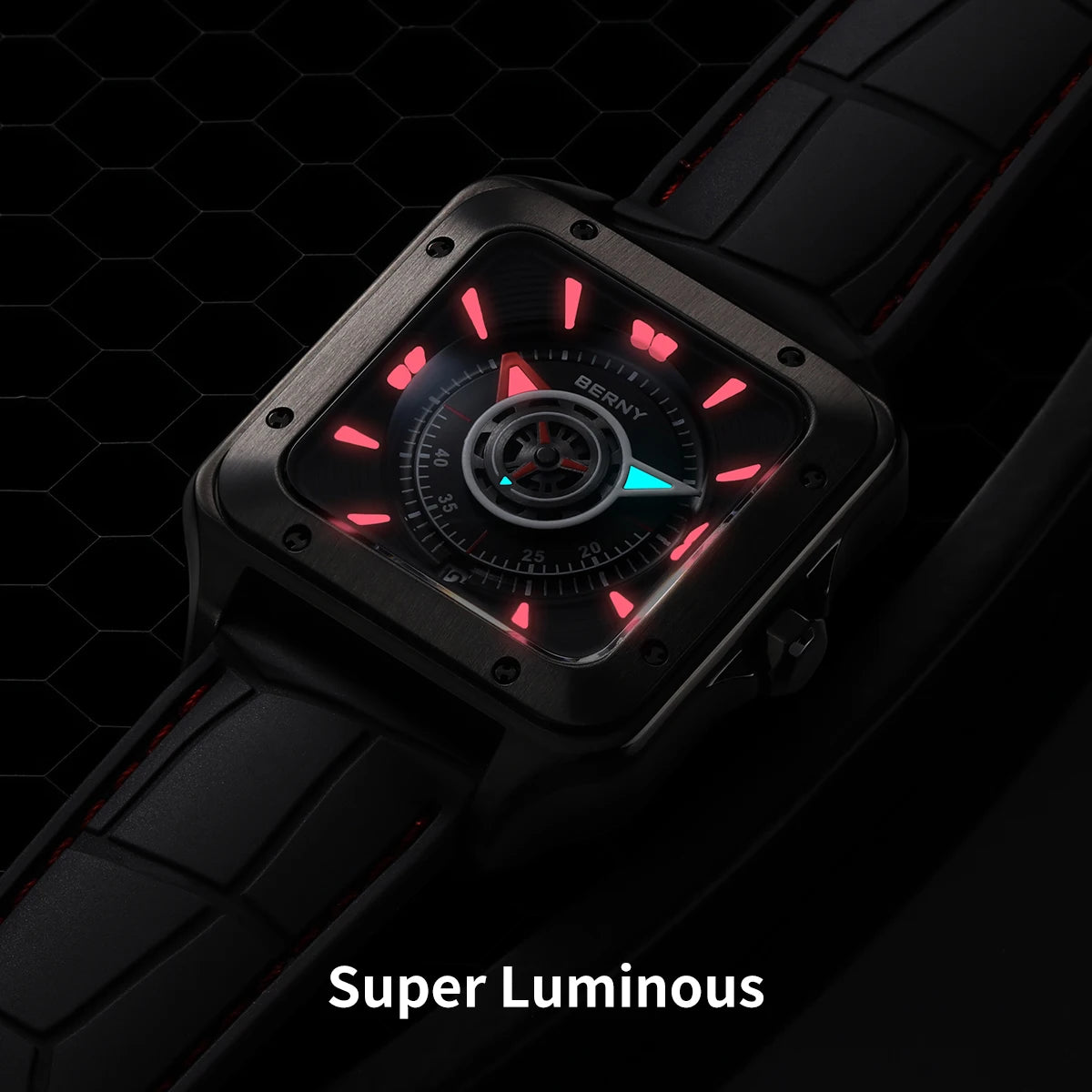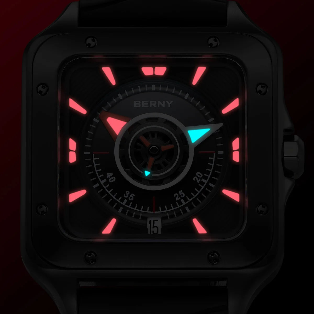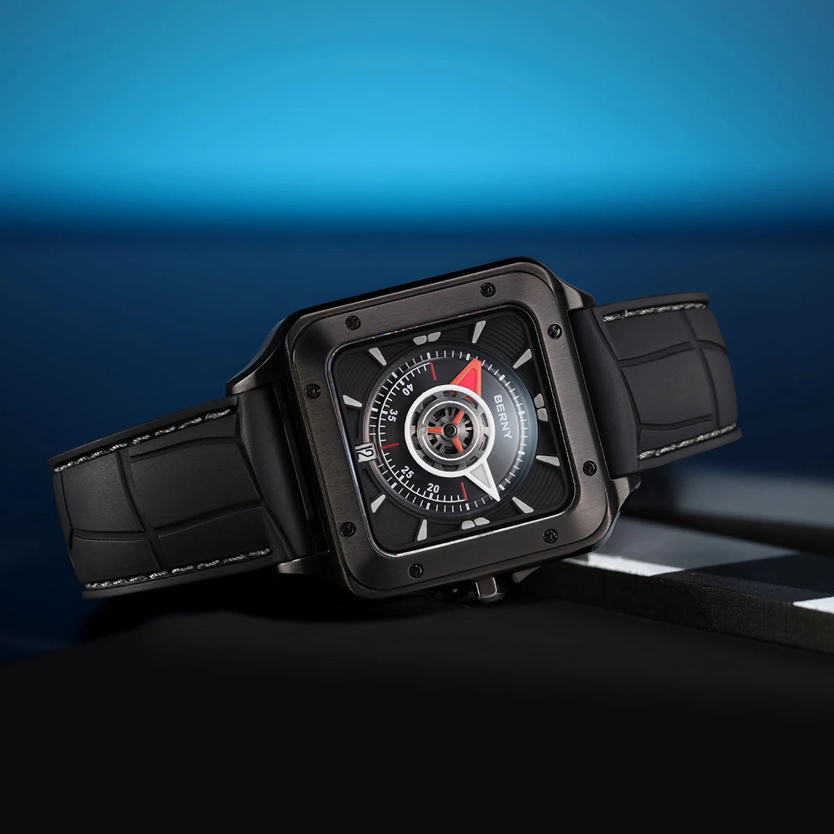 Automatic 10ATM Waterproof All Black Stainless Steel Mechanical Watch for Men