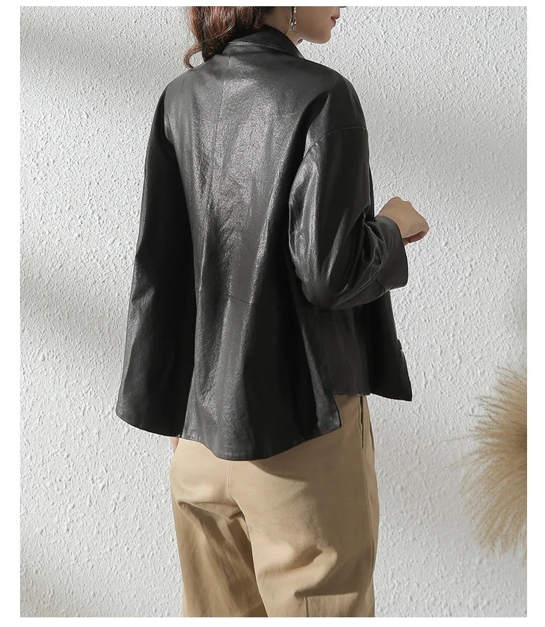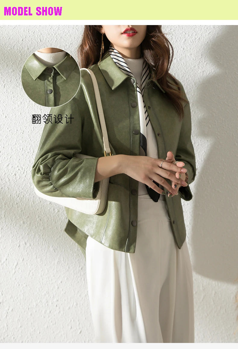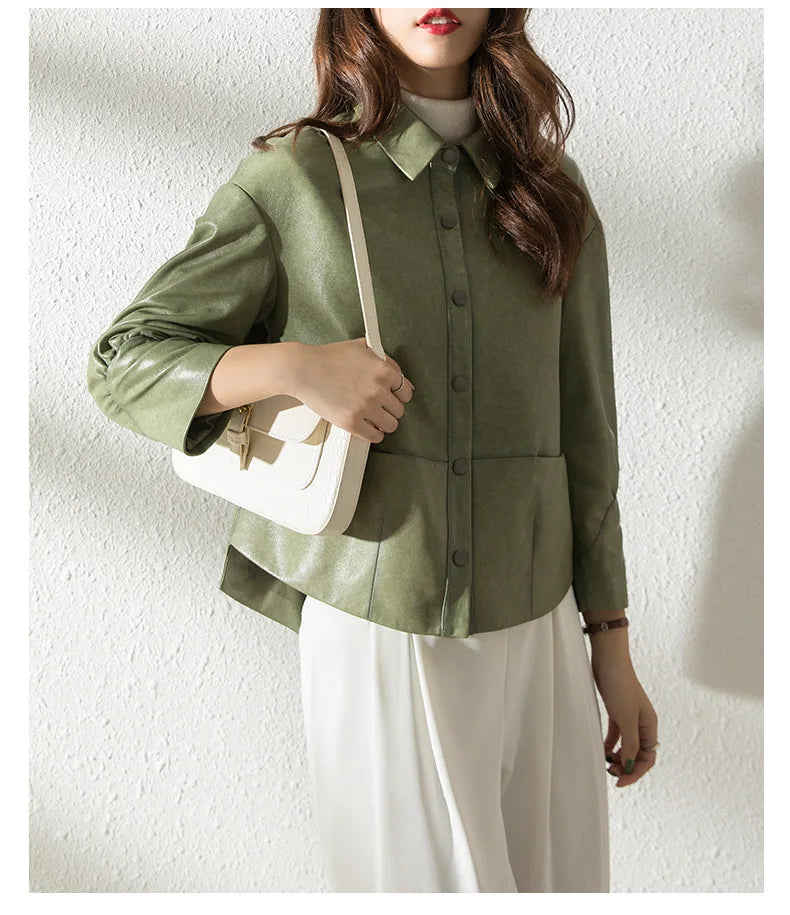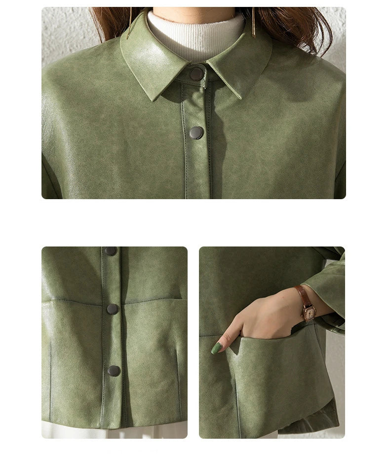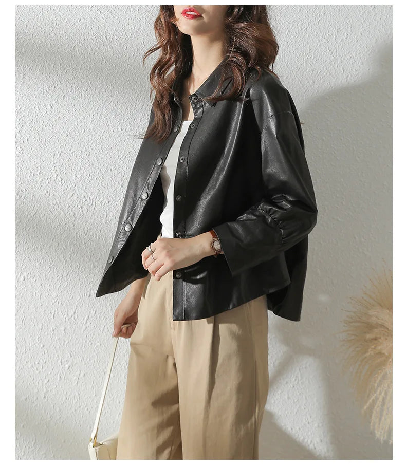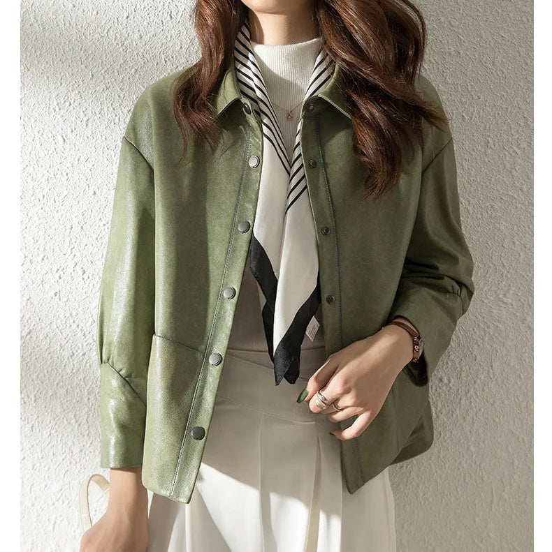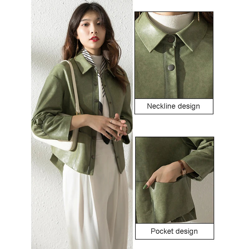Spring Autumn Women's Short Locomotive Casual Loose Lapel Leather Jacket