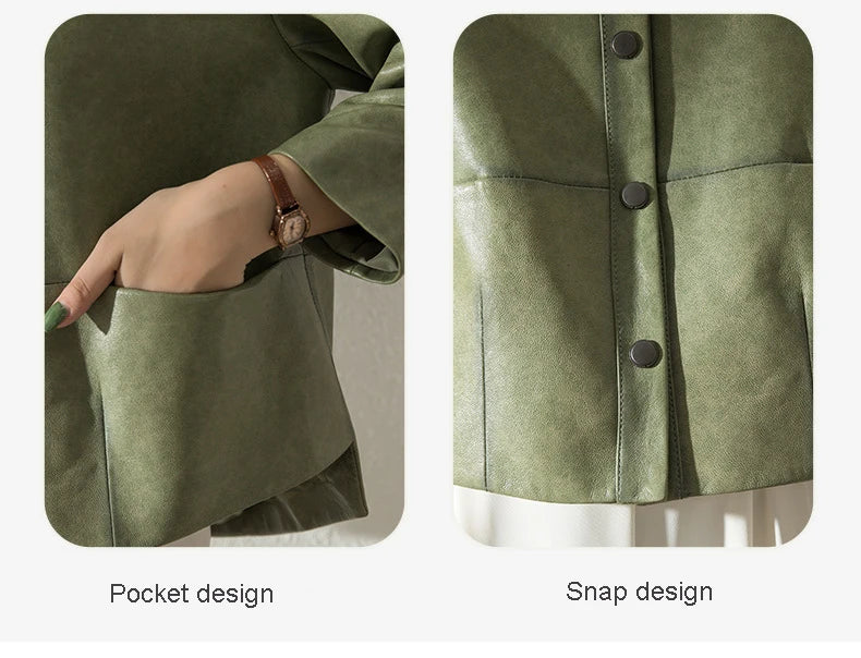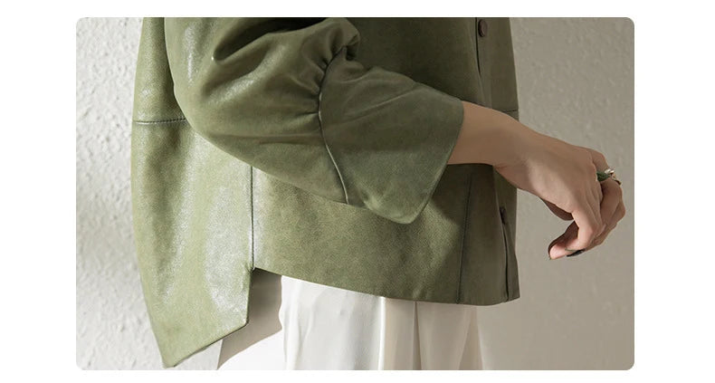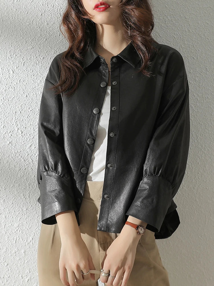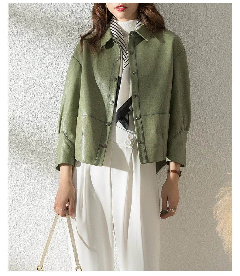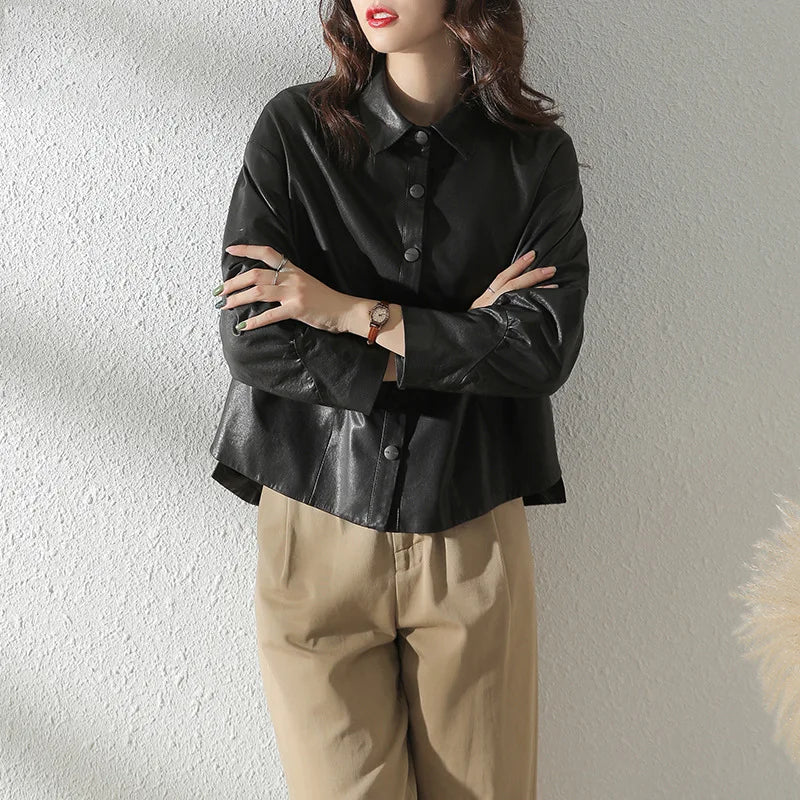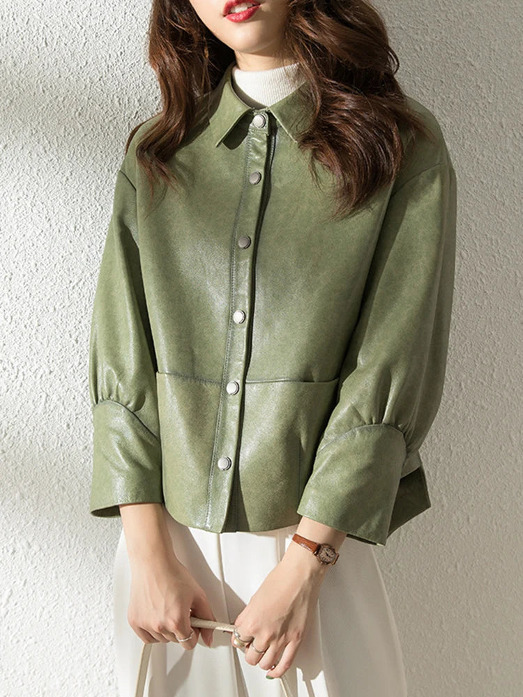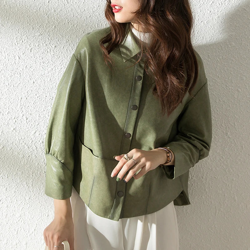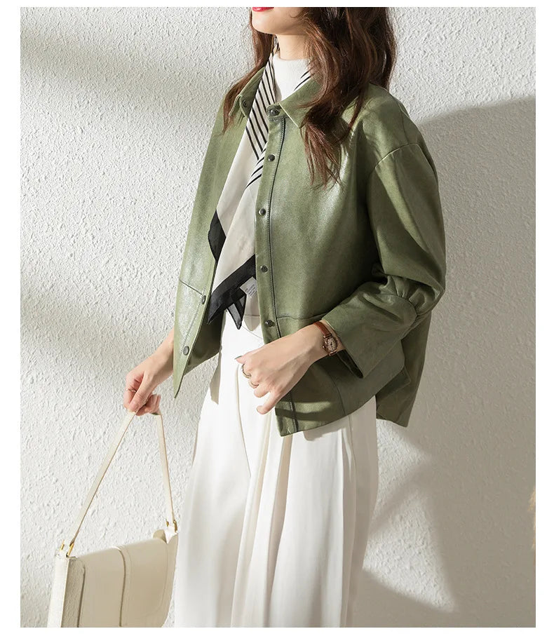 Spring Autumn Women's Short Locomotive Casual Loose Lapel Leather Jacket
