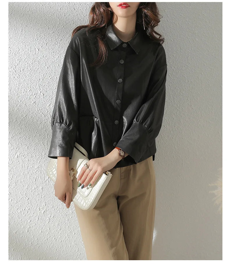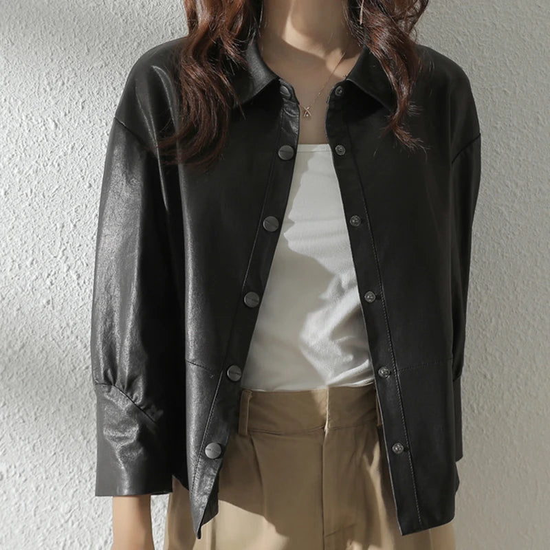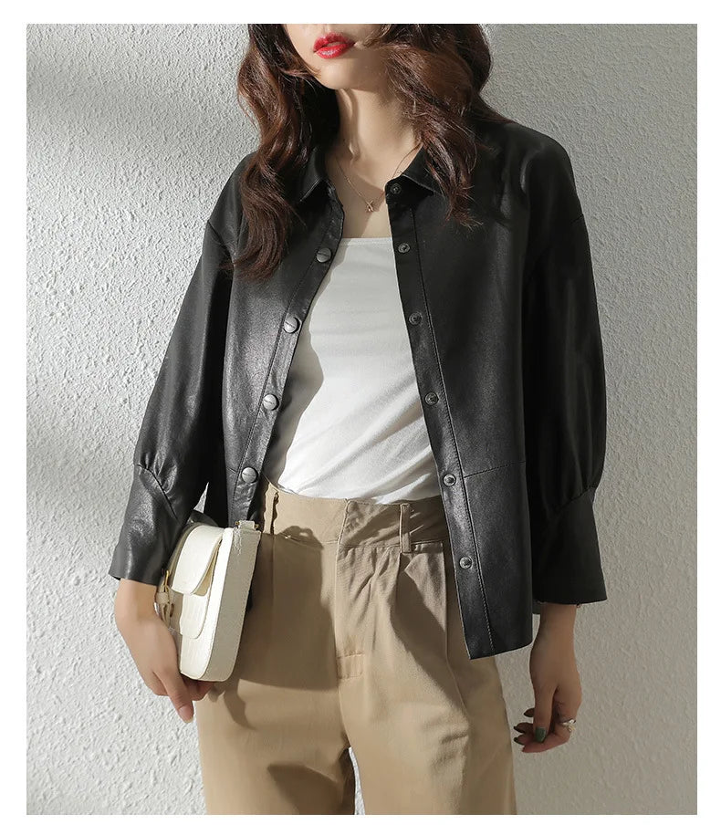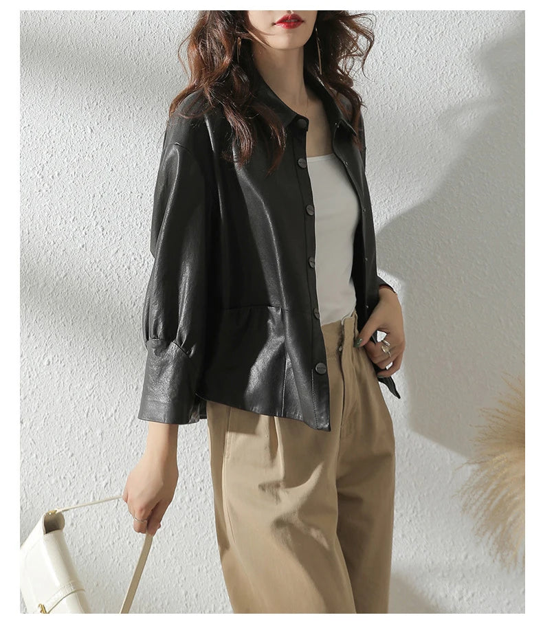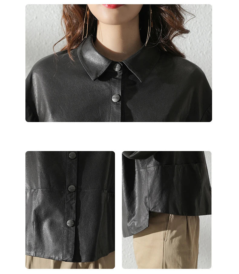 Elevate your wardrobe with this fabulous jacket, featuring a loose fit and casual look. Made with sheepskin leather, it is durable and looks appealing for a casual look. It can be worn as a top with your favorite bottom wear or as a jacket; it will elevate your style. Buy now!