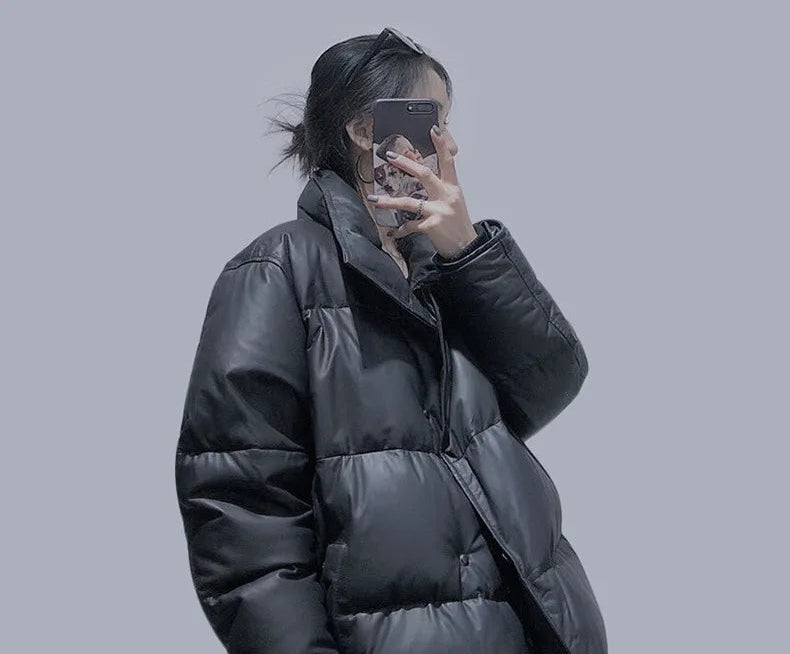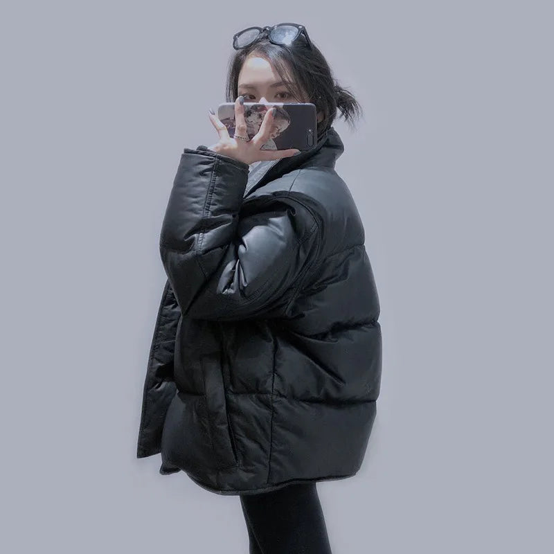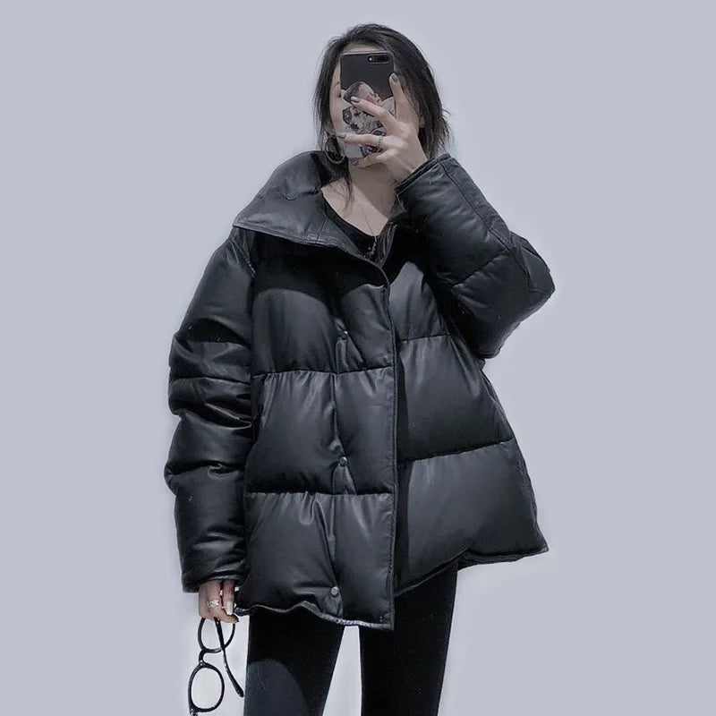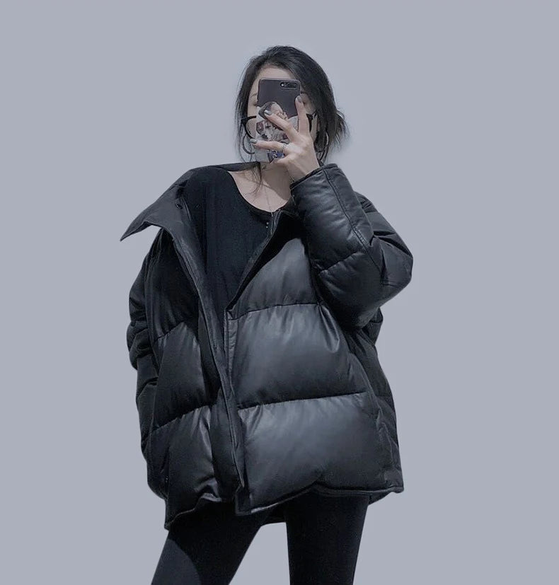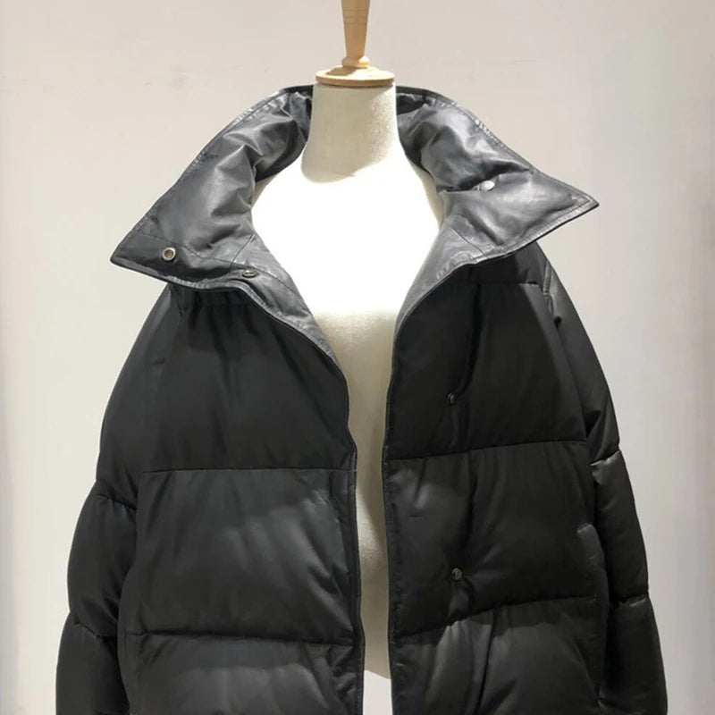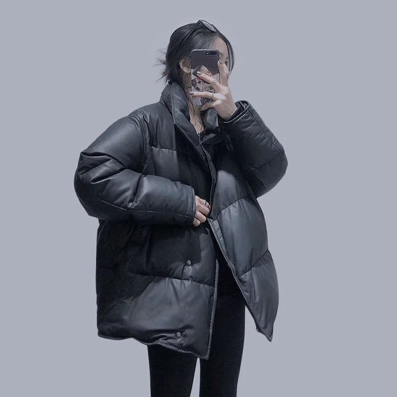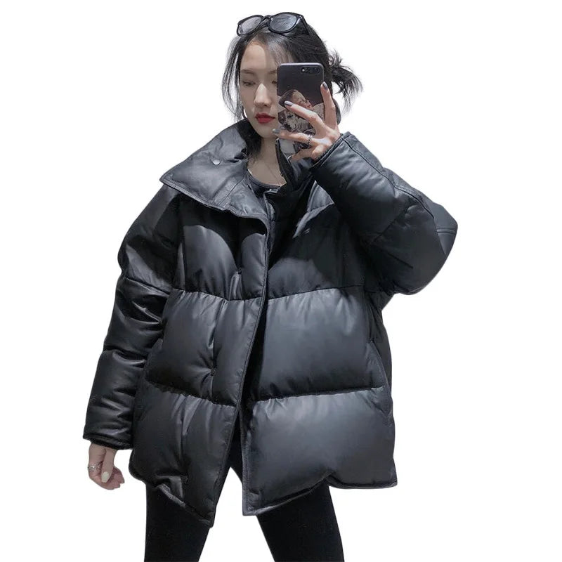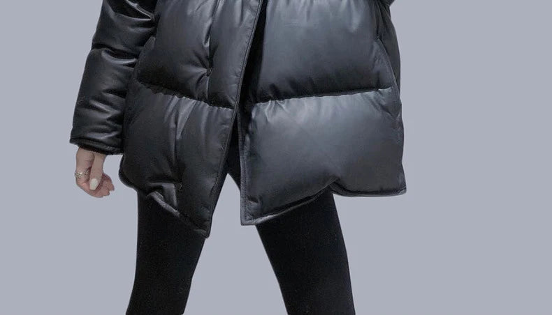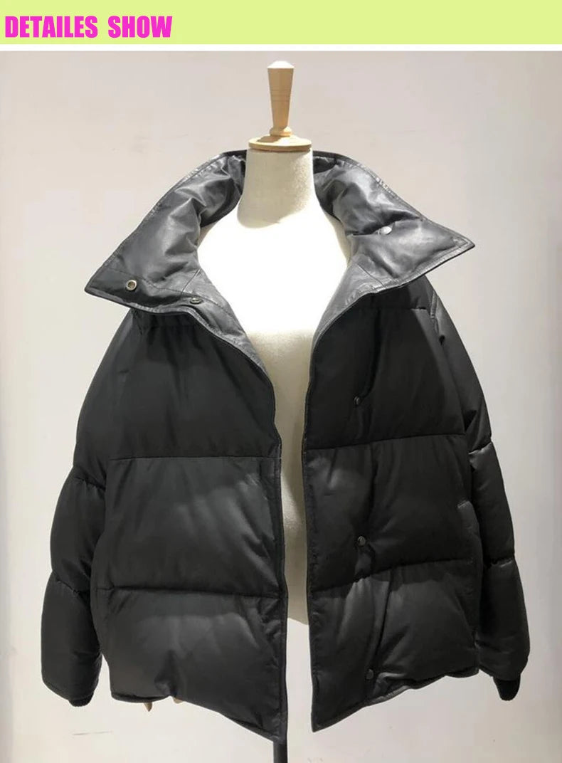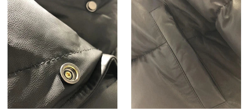 Women's Winter Soft Genuine Leather Down Jacket with Stand Collar