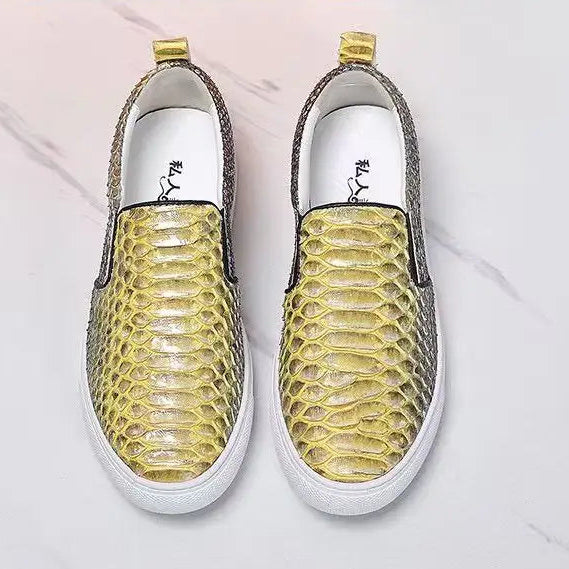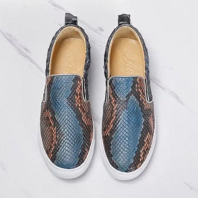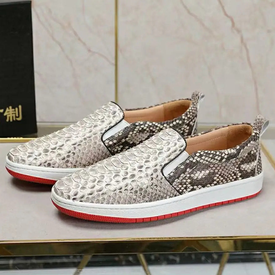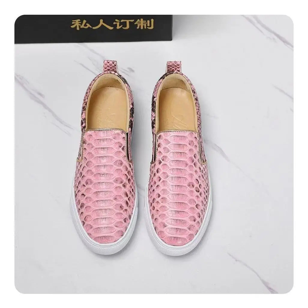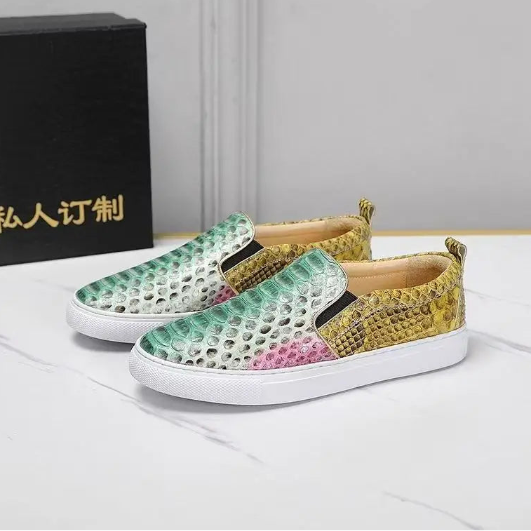Casual Fashion Snake Skin Patchwork Genuine Leather Loafers for Women