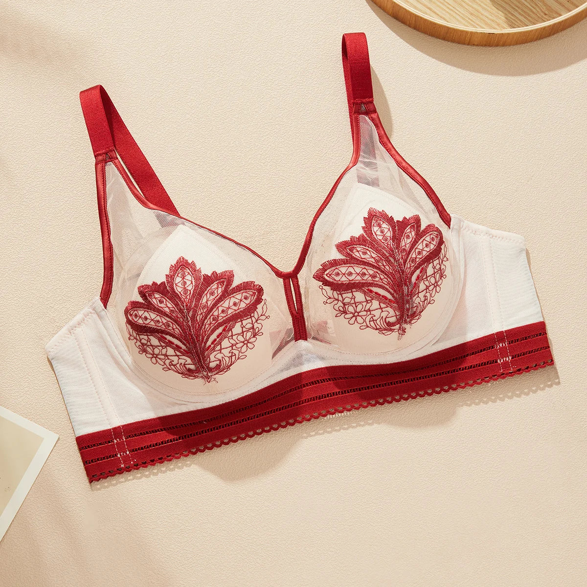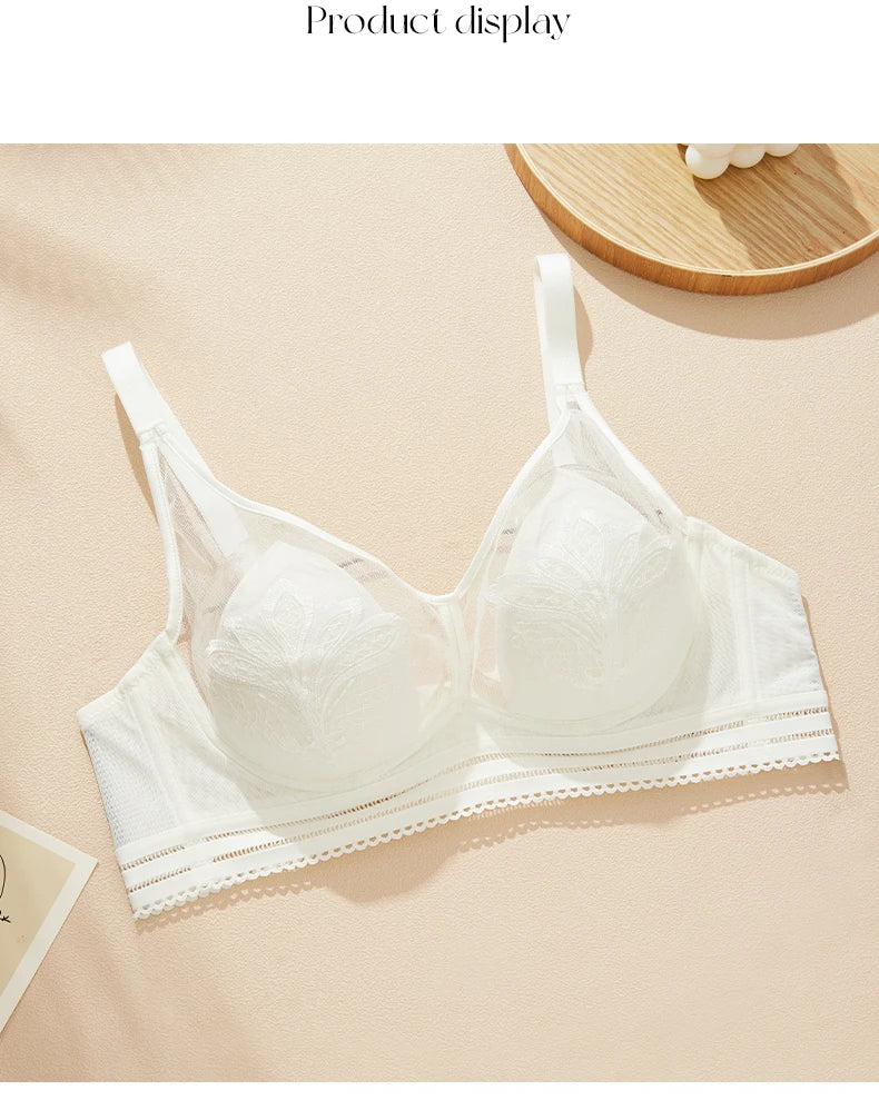 Sexy Thin Lace Flower Mesh Unlined Push-up Small Chest Bra for Women