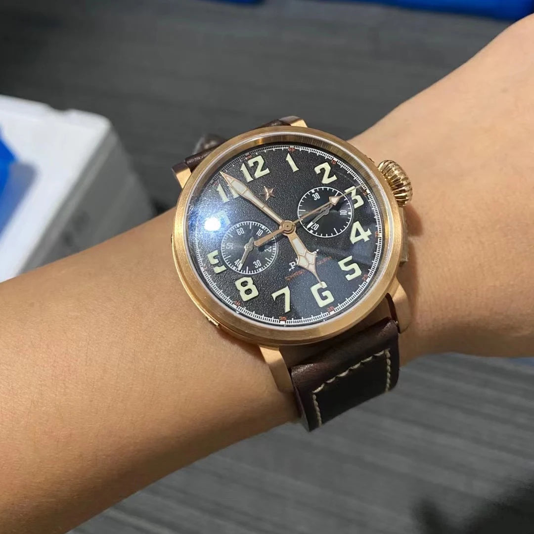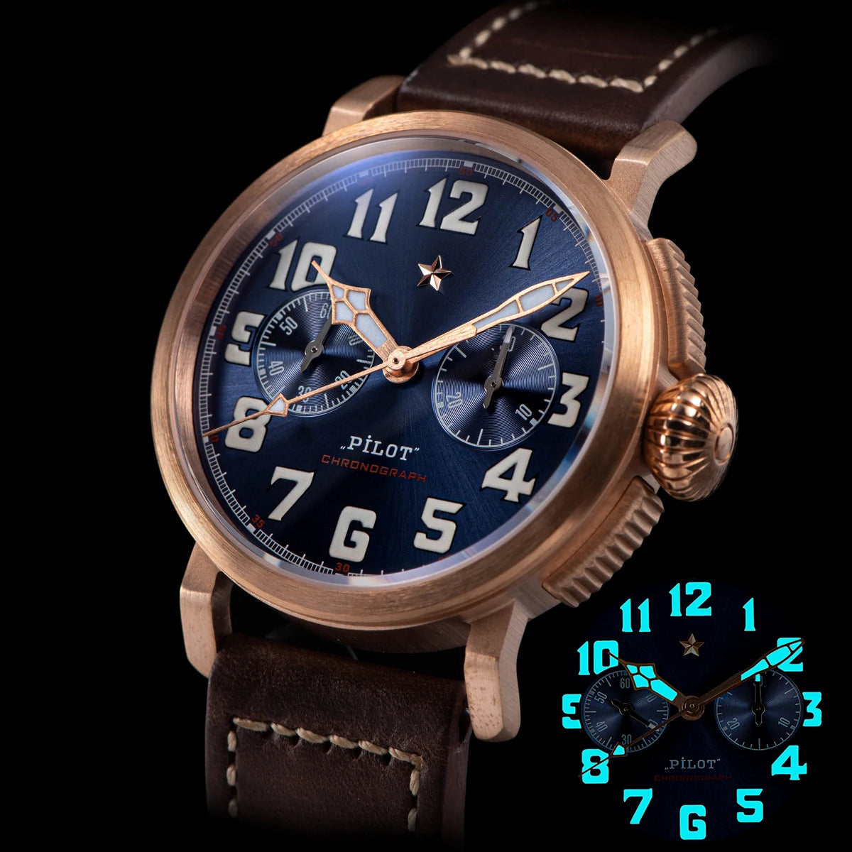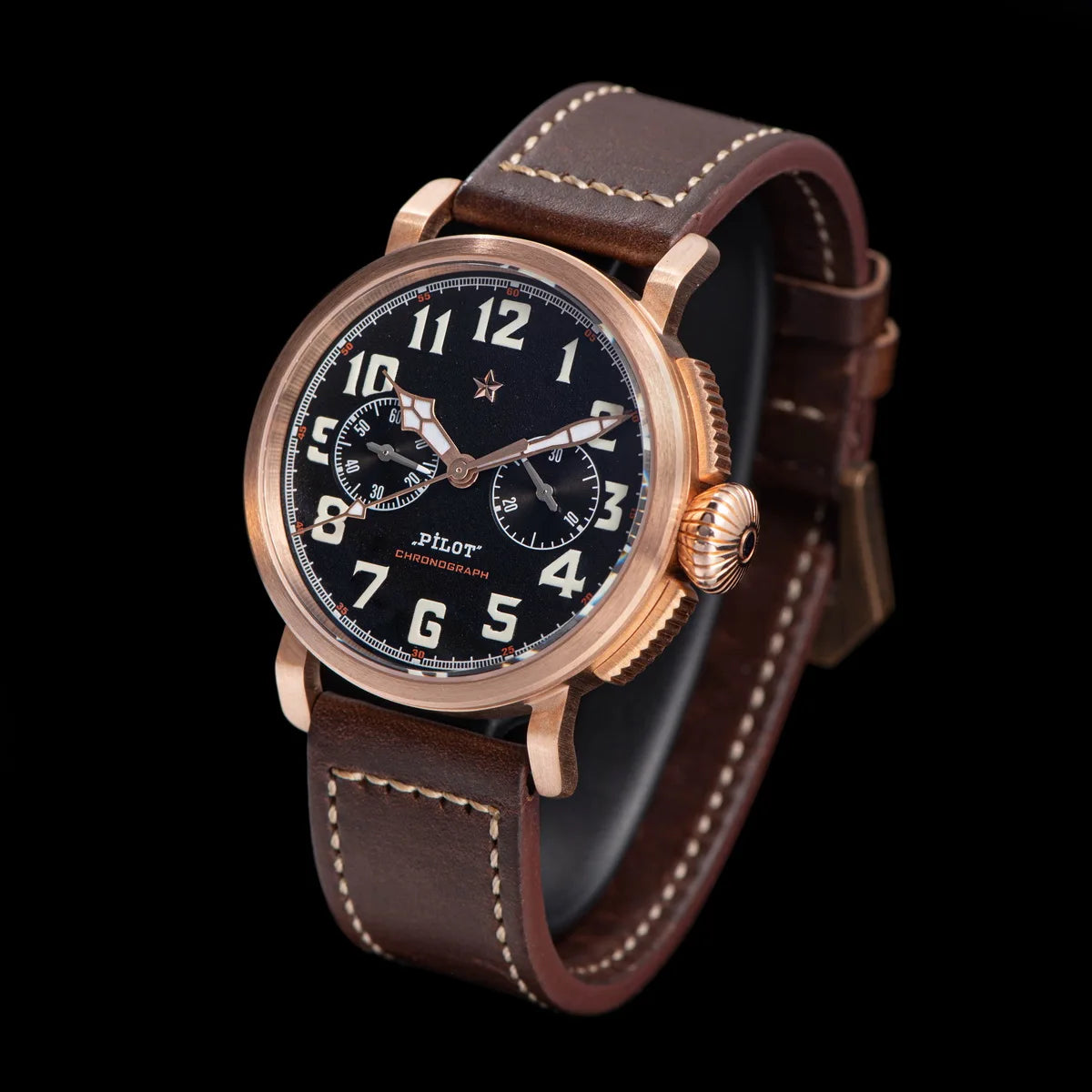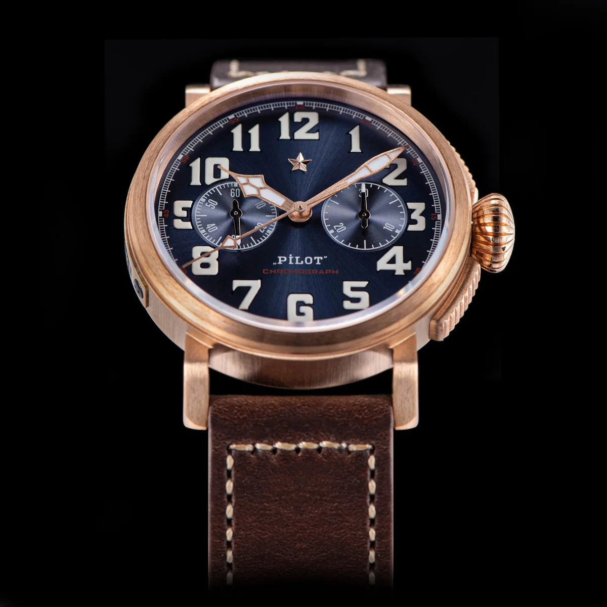 Bronze Chronograph Swanneck Movement Super Luminous Mechanical Pilot Watch for Men