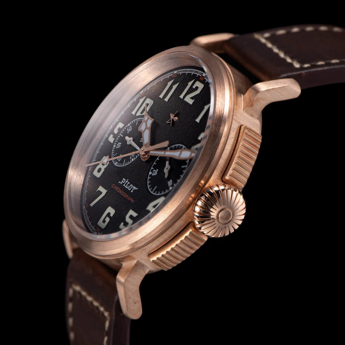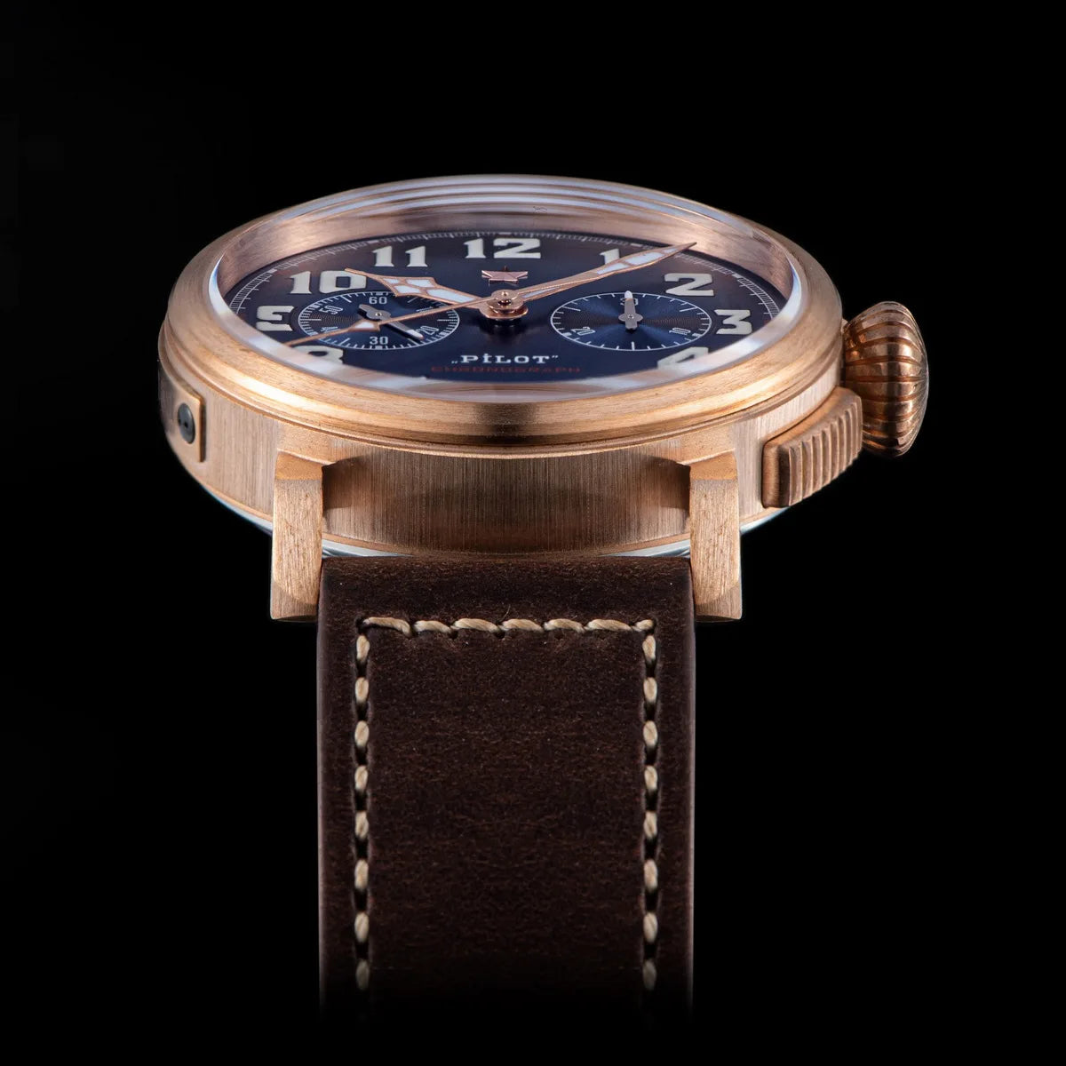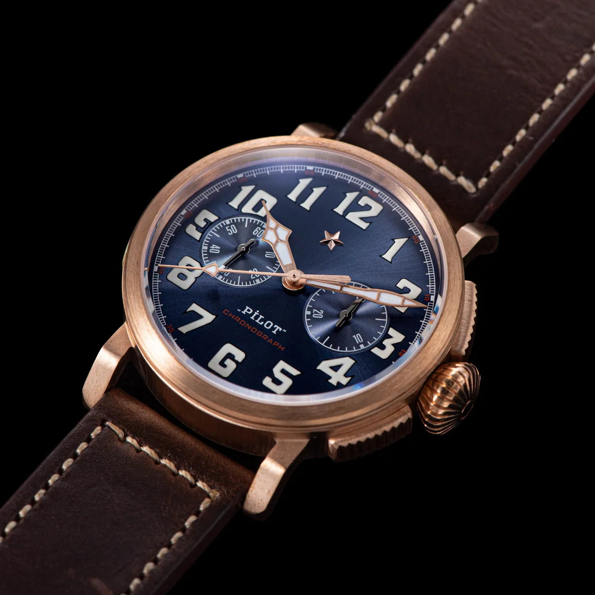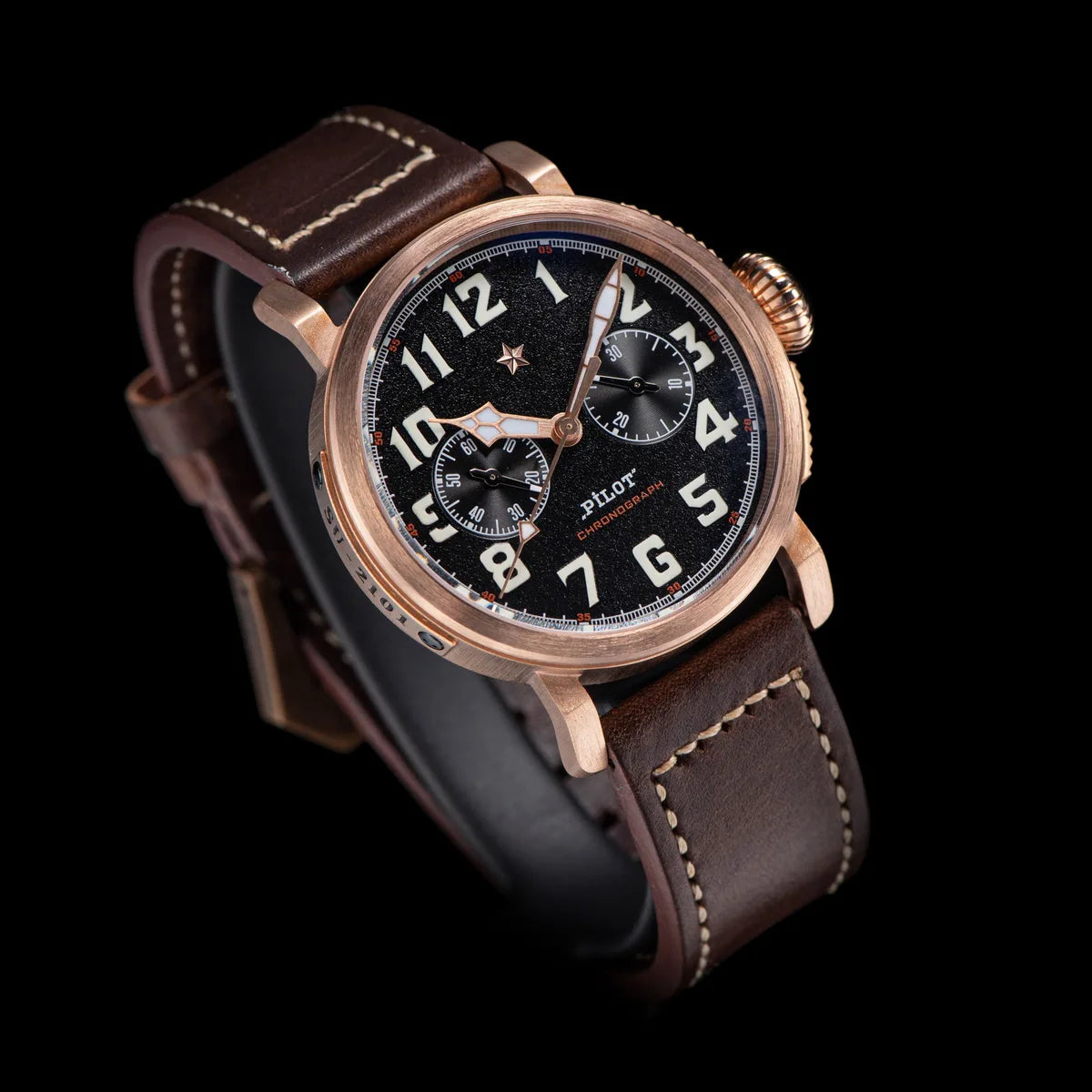 Bronze Chronograph Swanneck Movement Super Luminous Mechanical Pilot Watch for Men