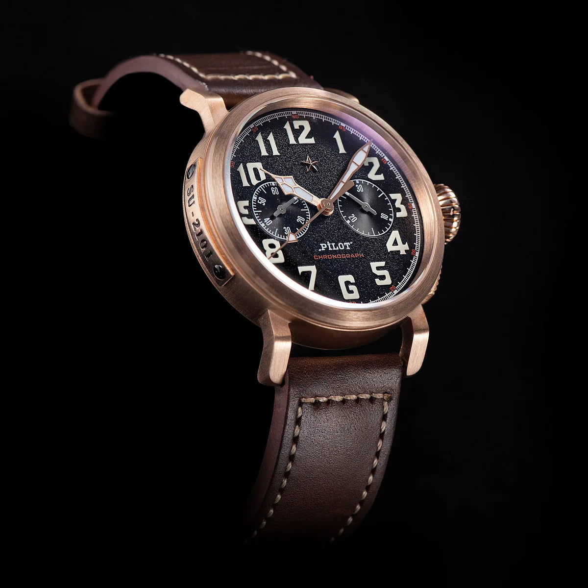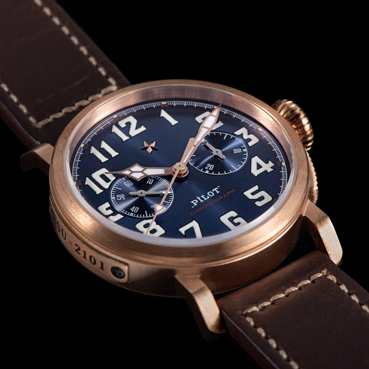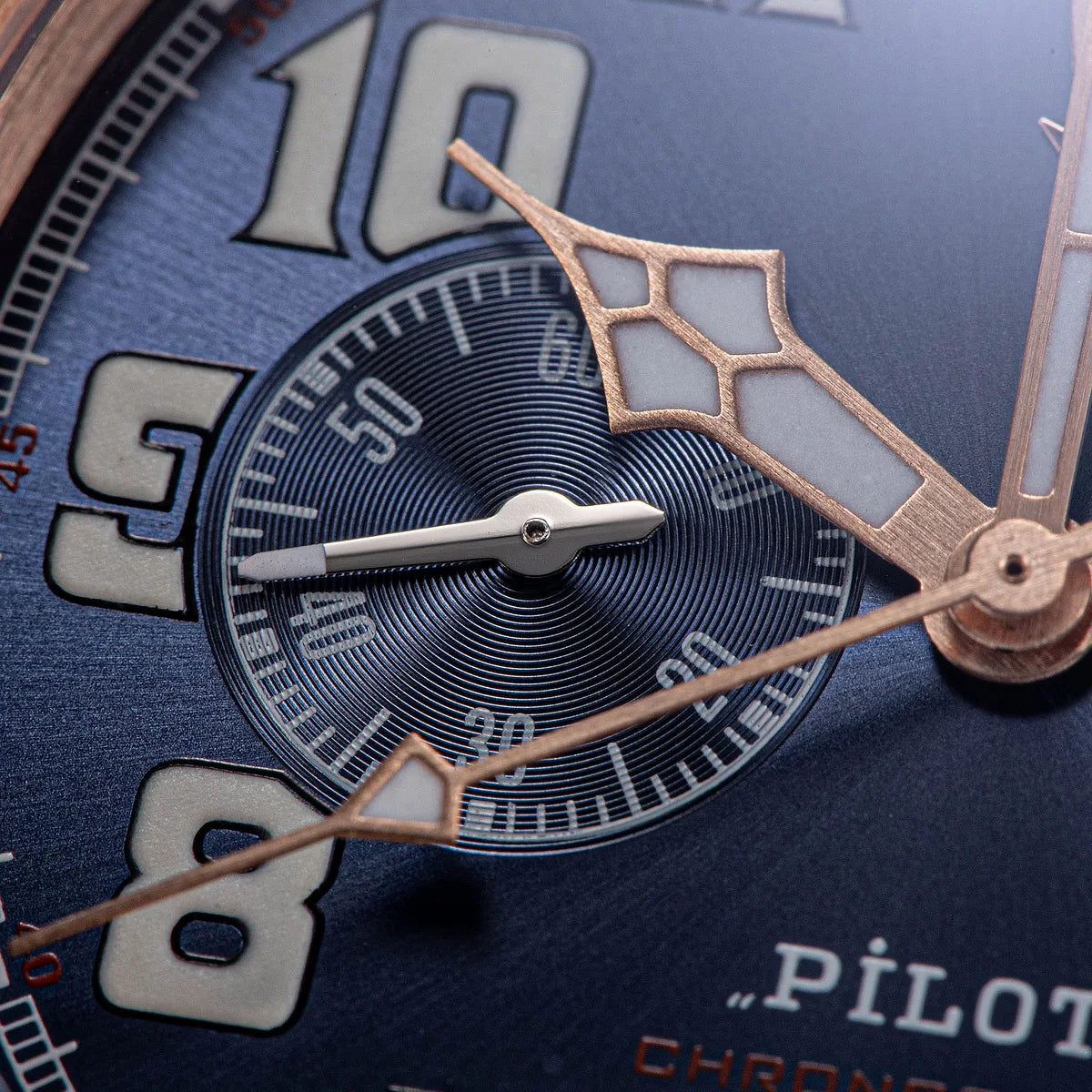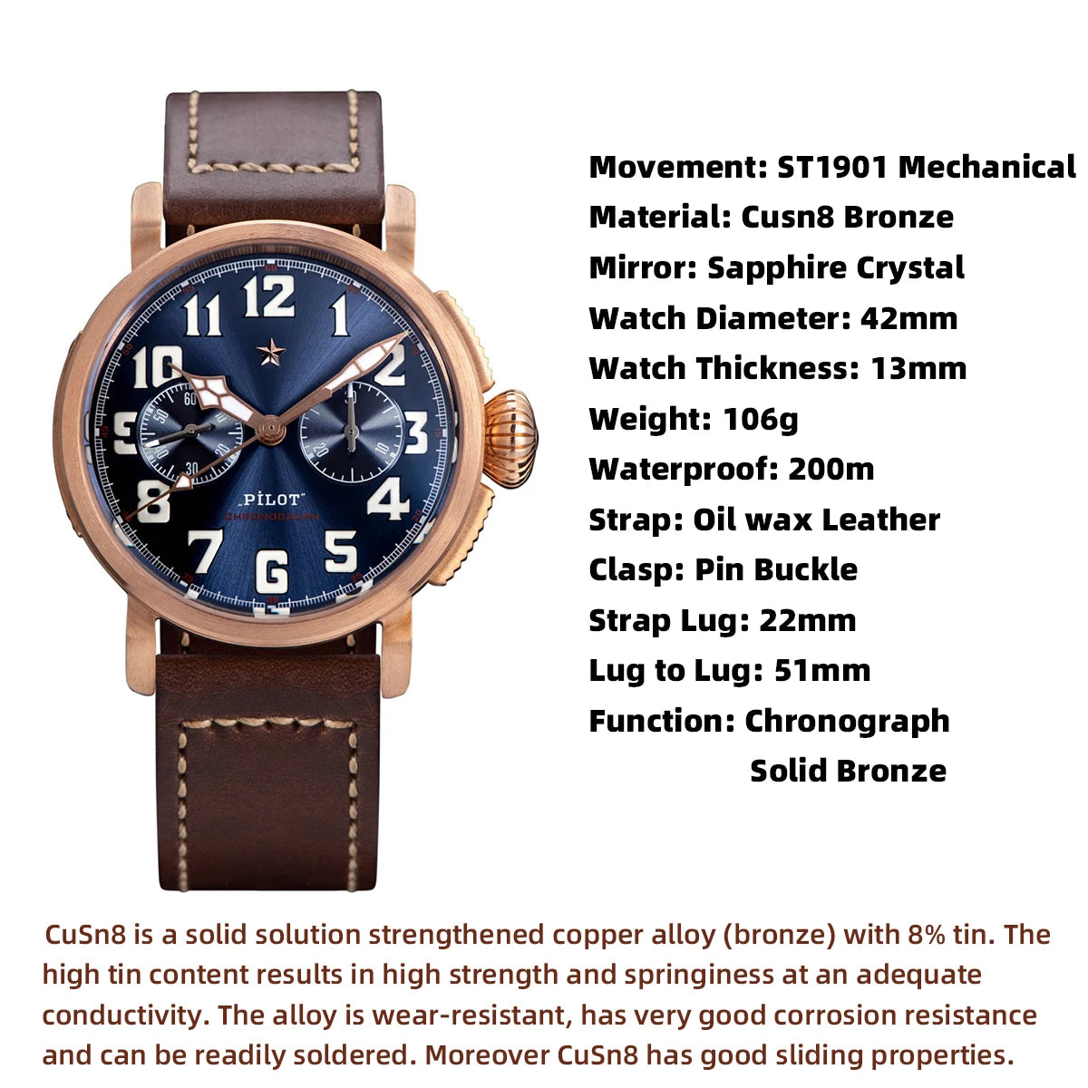 Bronze Chronograph Swanneck Movement Super Luminous Mechanical Pilot Watch for Men