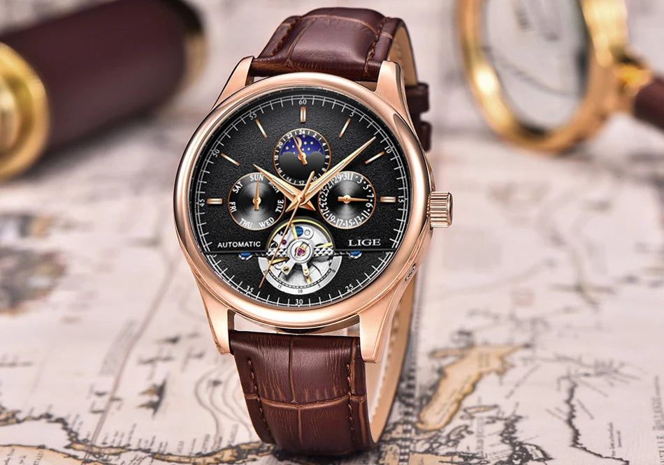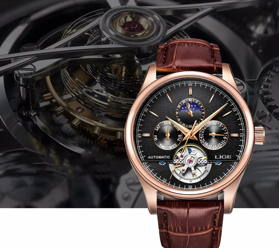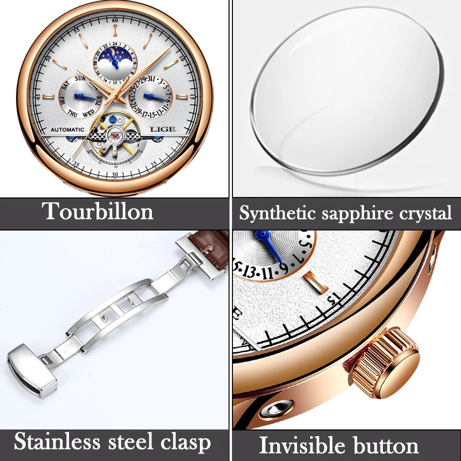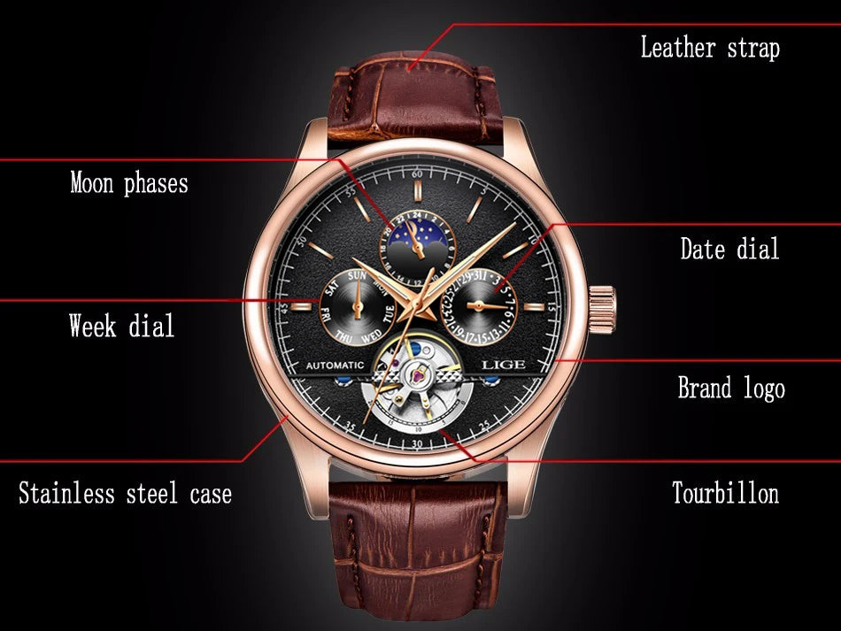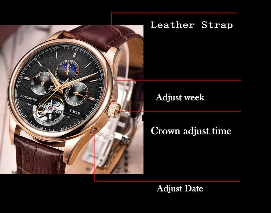 Men's Automatic Mechanical Tourbillon Leather Casual Business Retro Watch