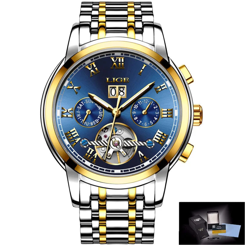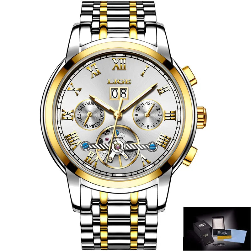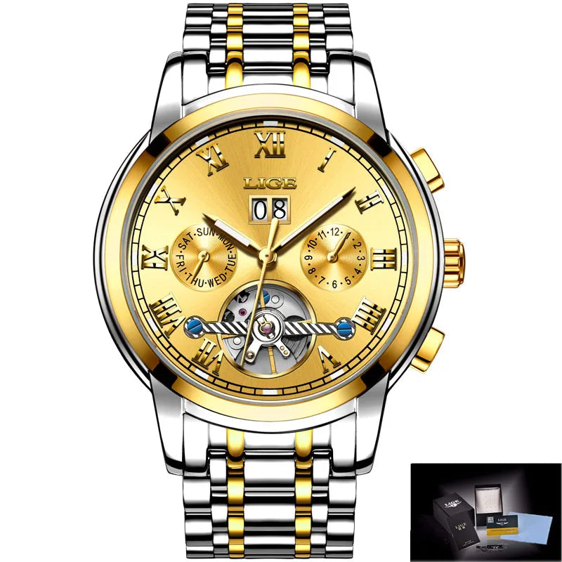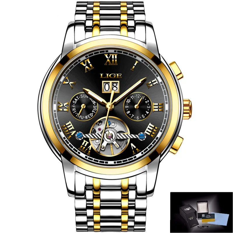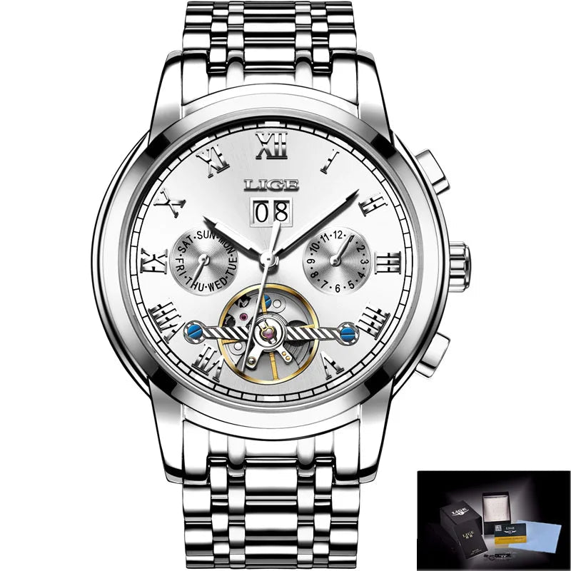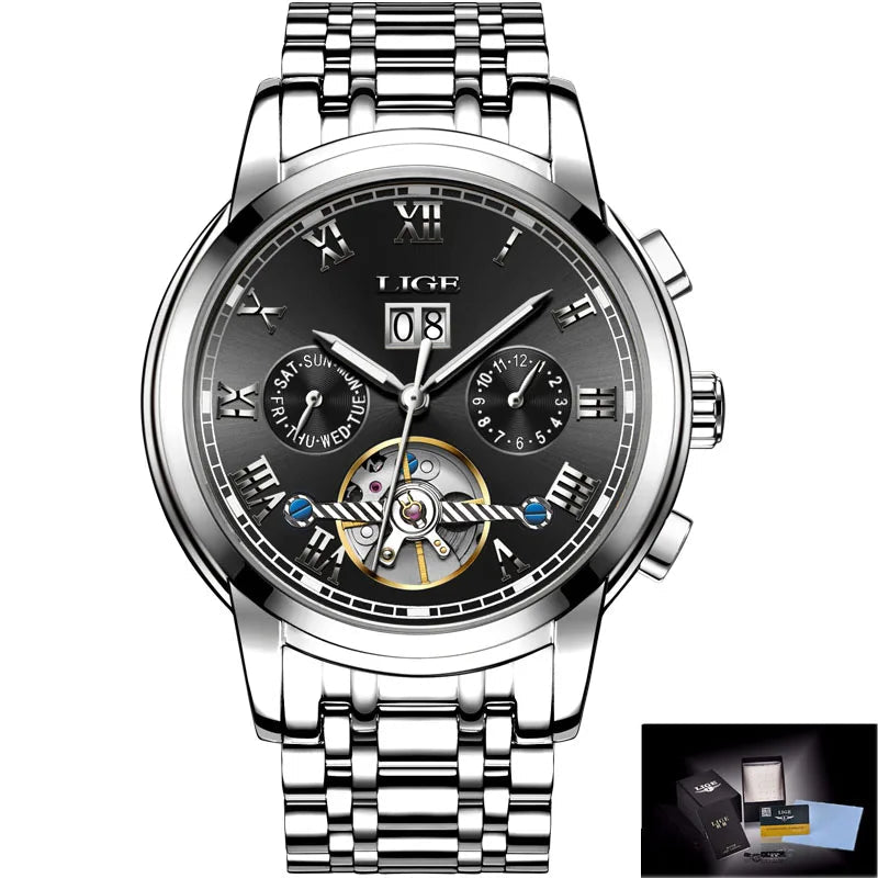Men's Automatic Mechanical Tourbillon Leather Casual Business Retro Watch