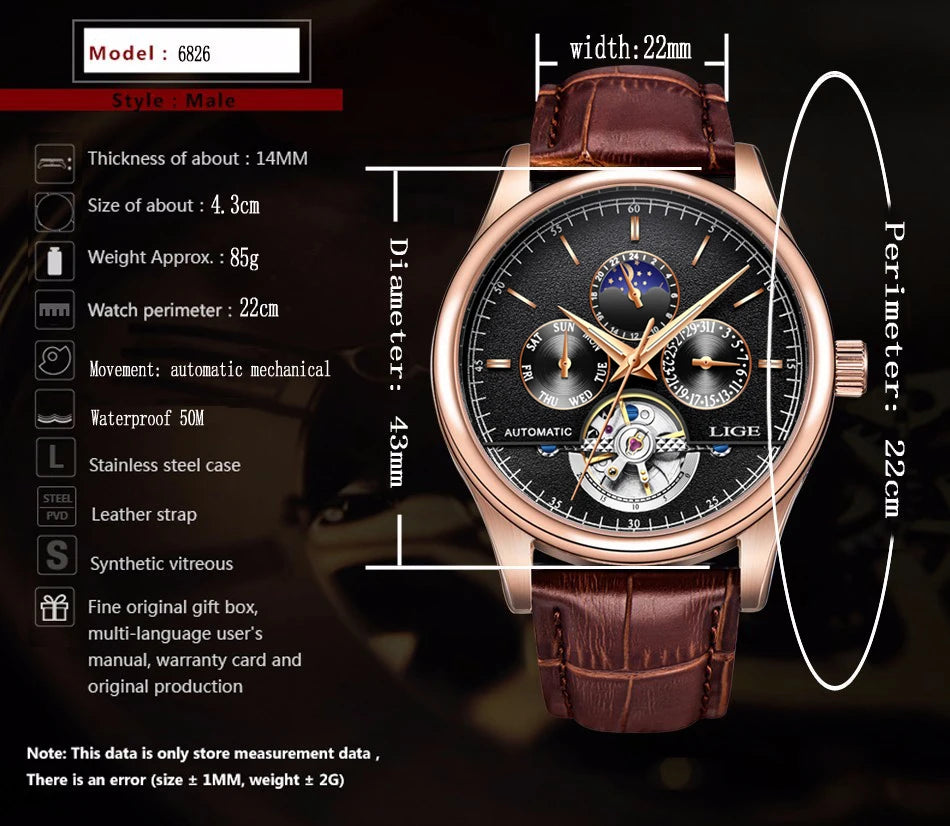 Feature: water proof,Complete Calendar,Shock Resistant,Week Display,Moon Phase