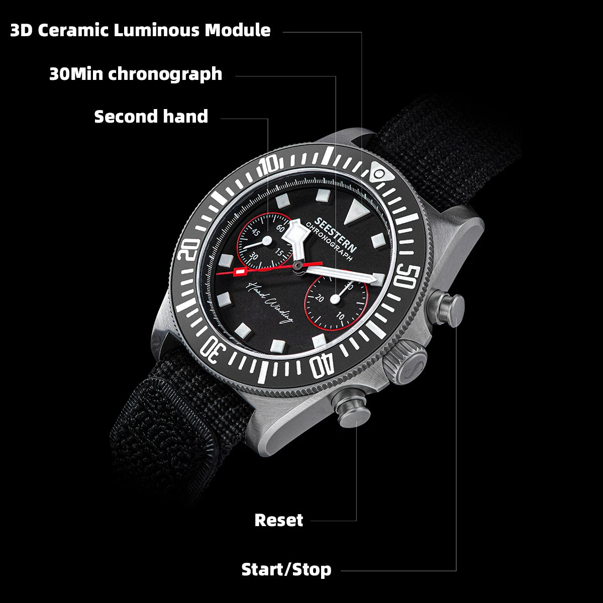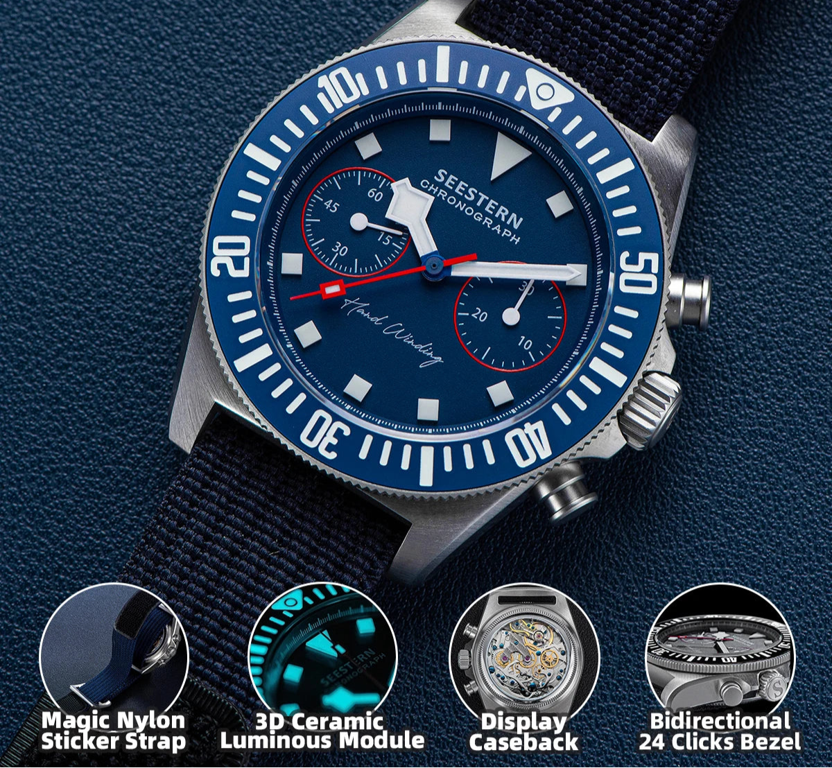 Men's Chronograph Mechanical Movement Luminous Magic Nato Sticker Strap Sports Watch