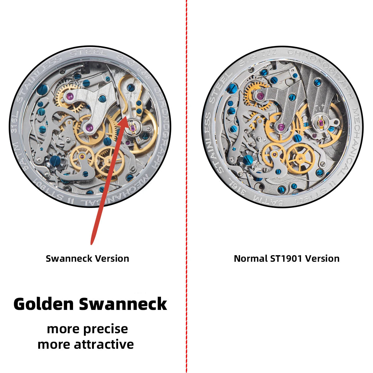 Movement: Mechanical Hand Wind,Seagull ST1901 Swanneck