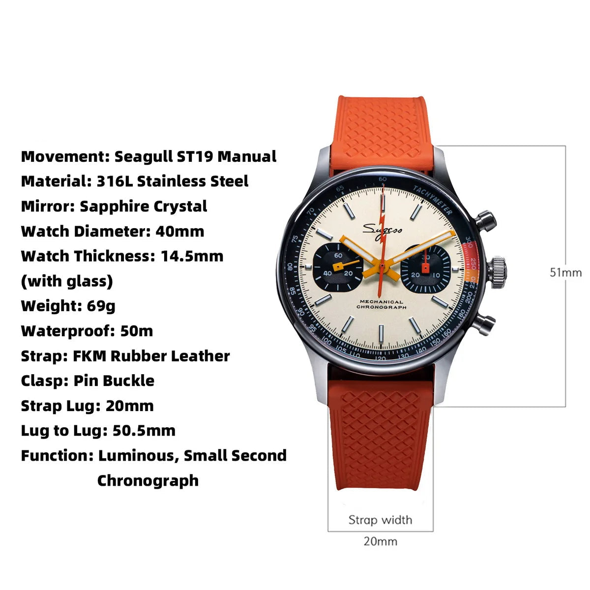 Lug to Lug: 51mm