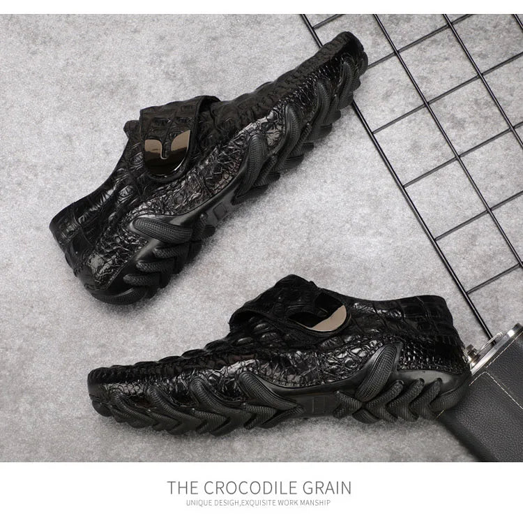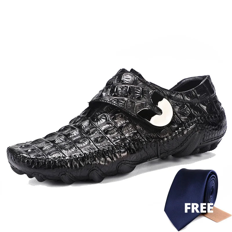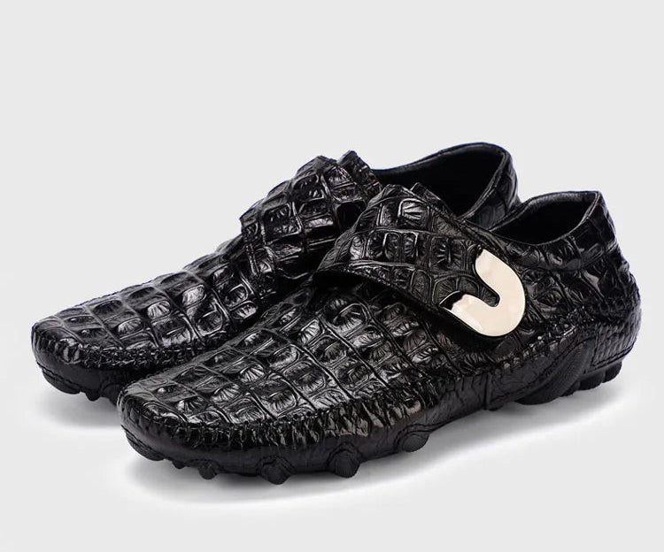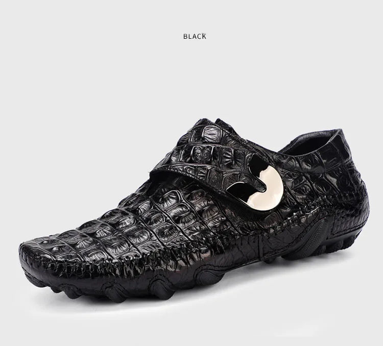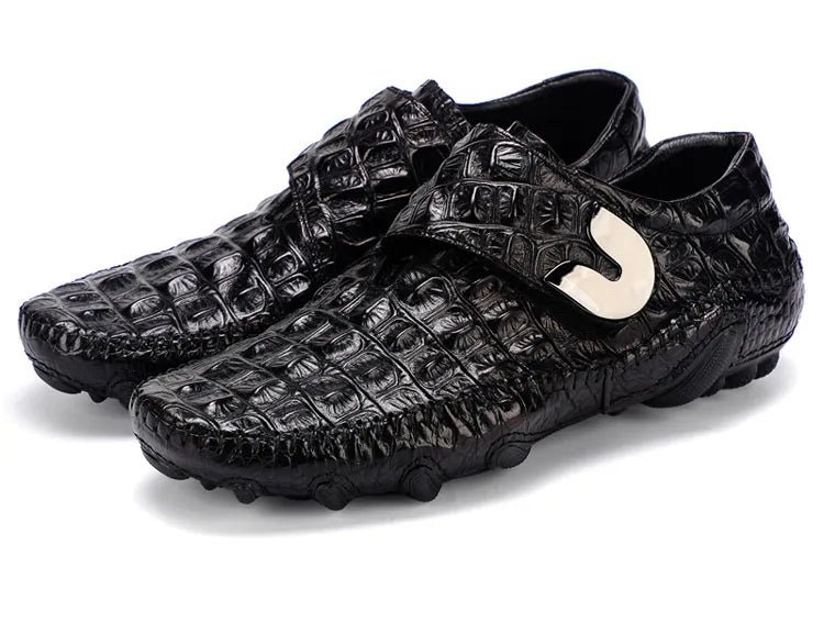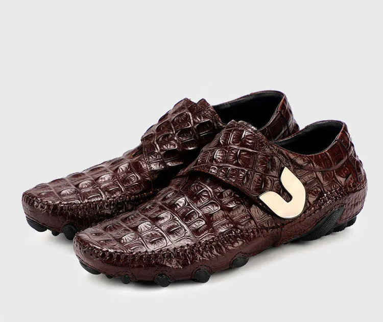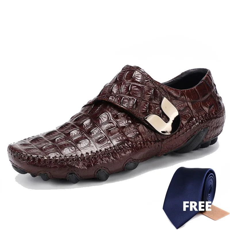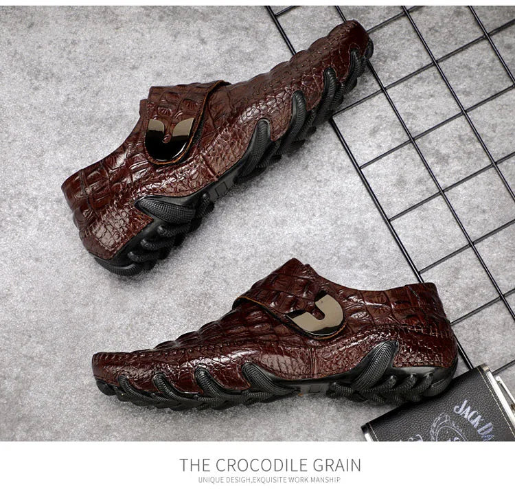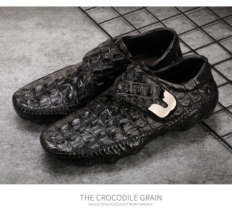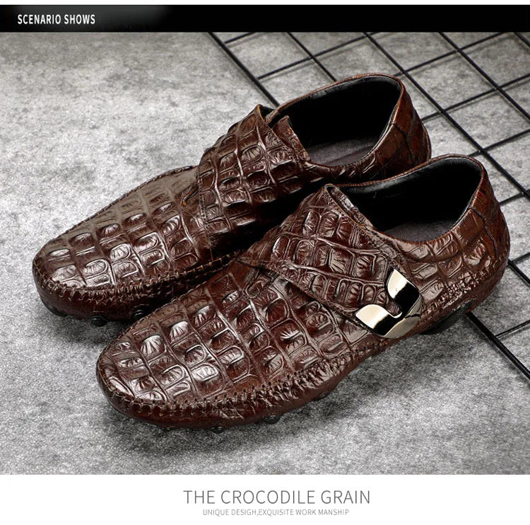 Men's Casual Breathable Genuine Leather Crocodile Pattern Hasp Shoes