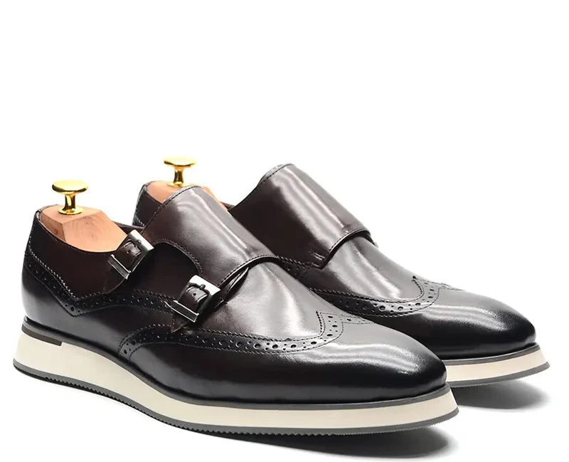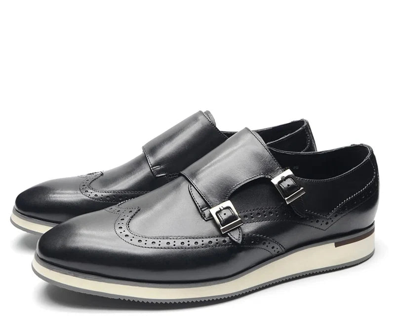Men's European Luxury Genuine Cow Leather Monk Strap Basic Casual Shoes
