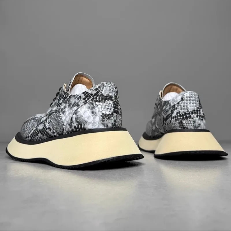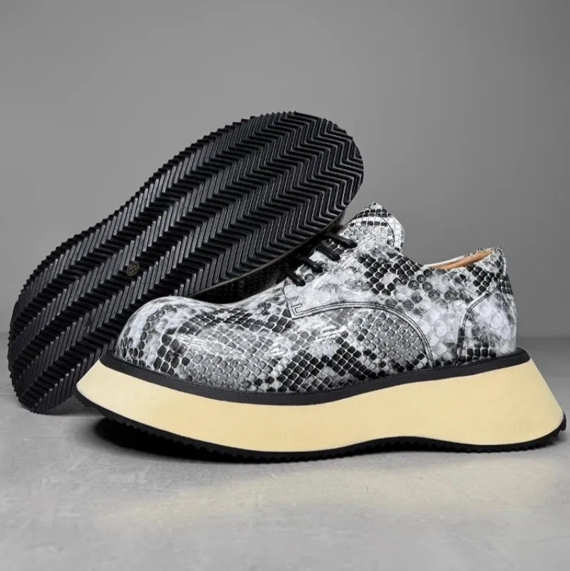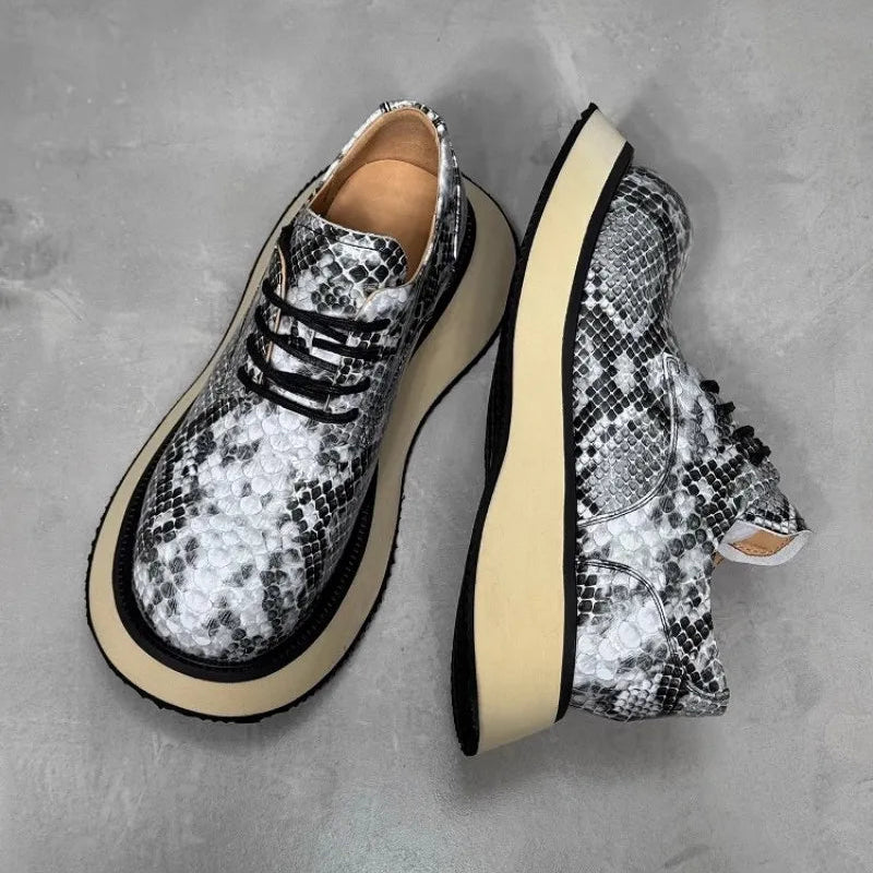 Men's Genuine Leather Designer Fashion Serpentine Pattern Cowskin Casual Derby Shoes