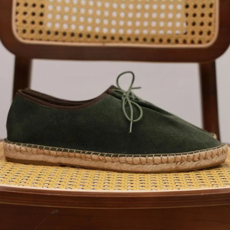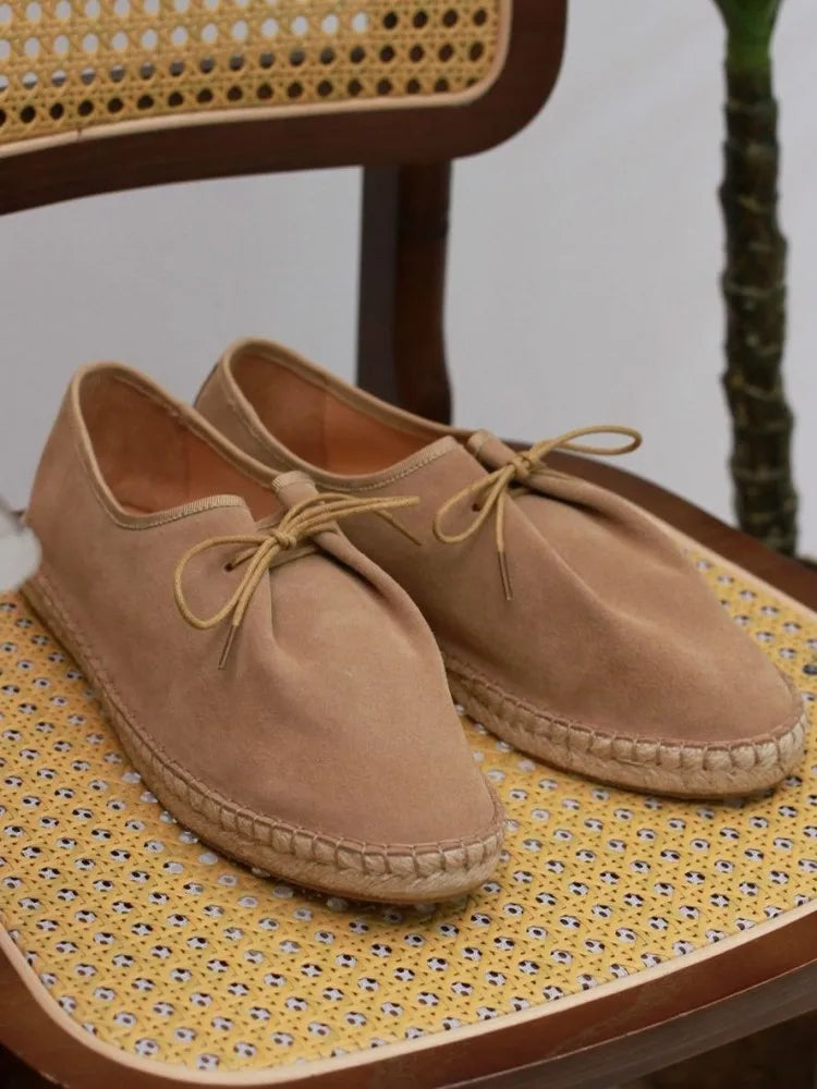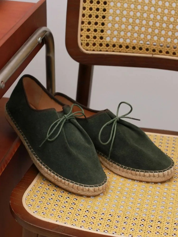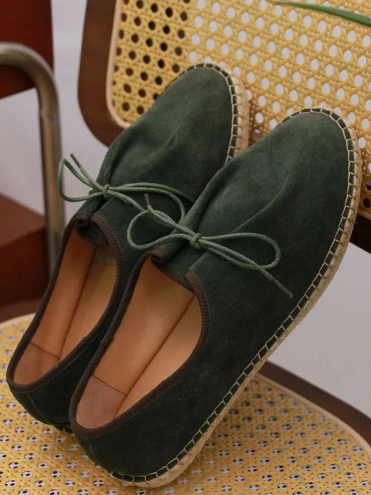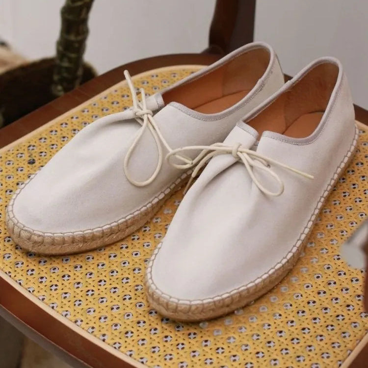 Men's Handmade Genuine Leather Platform Round Toe Lace-Up Casual Shoes