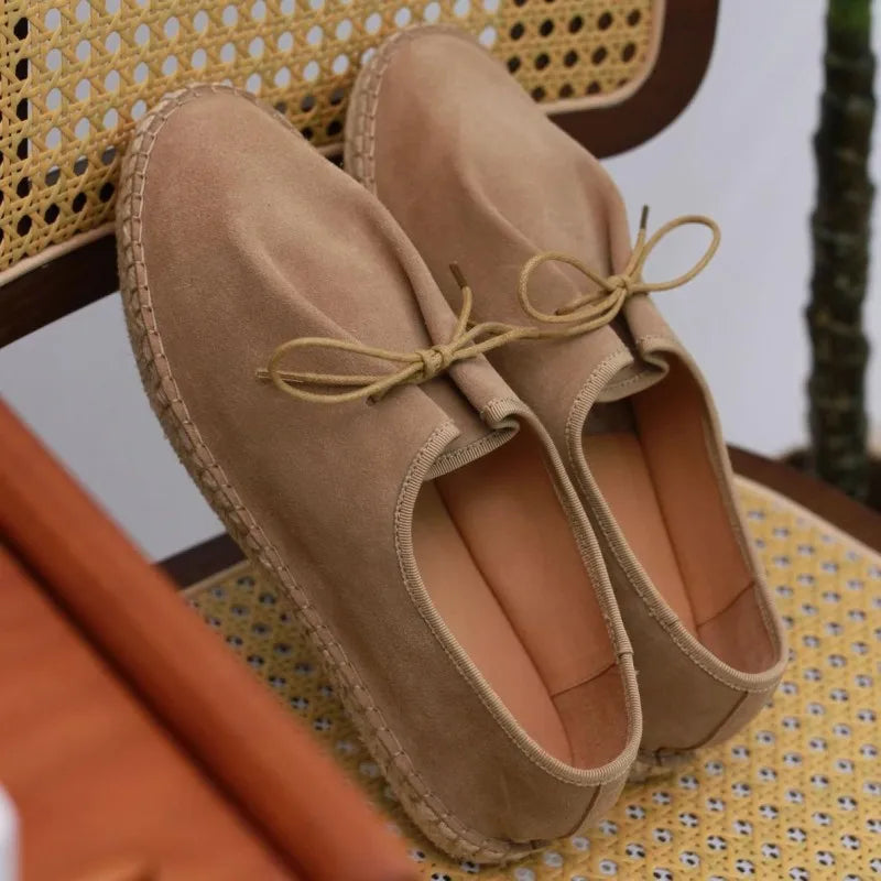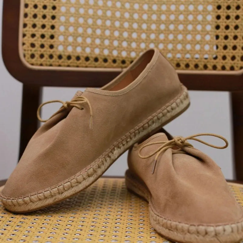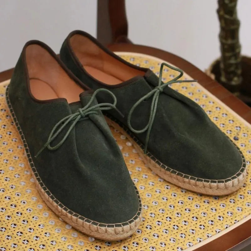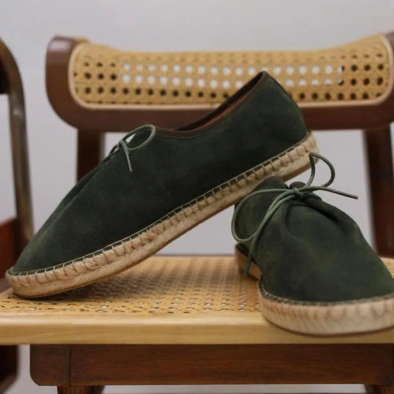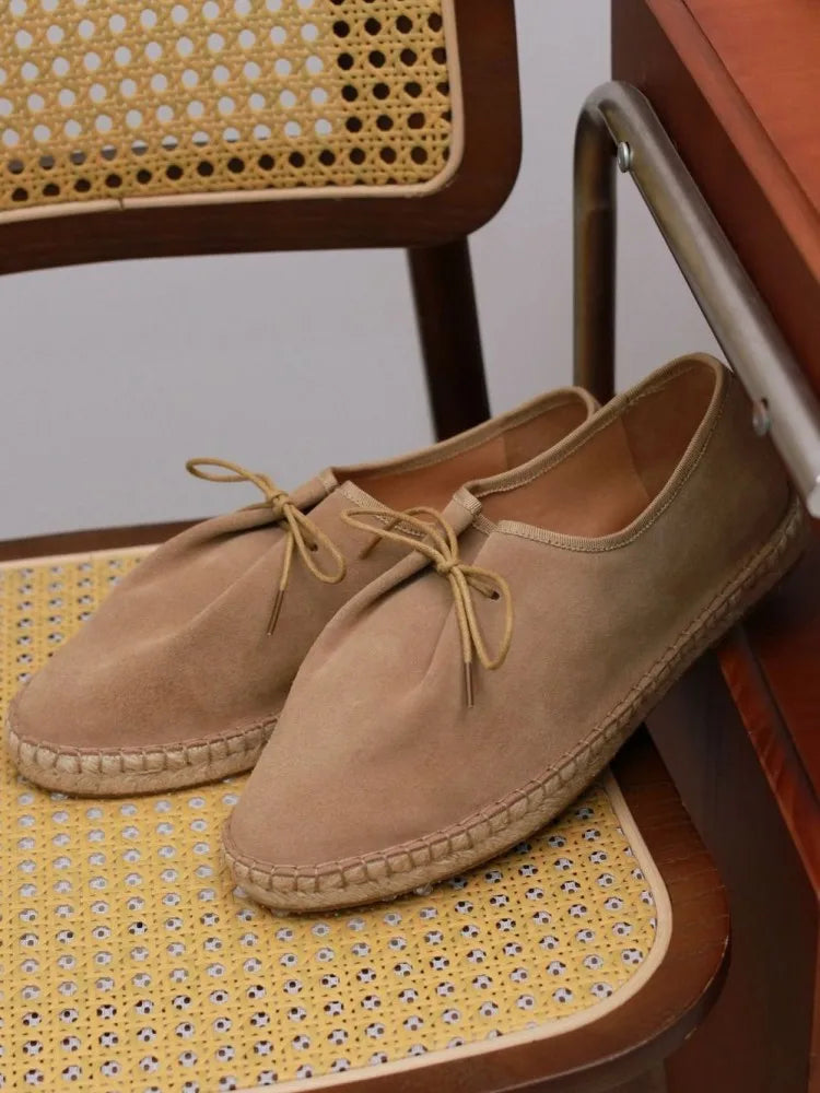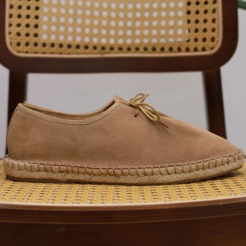 Men's Handmade Genuine Leather Platform Round Toe Lace-Up Casual Shoes