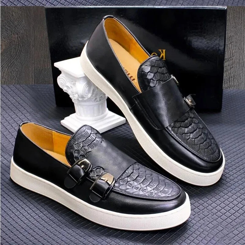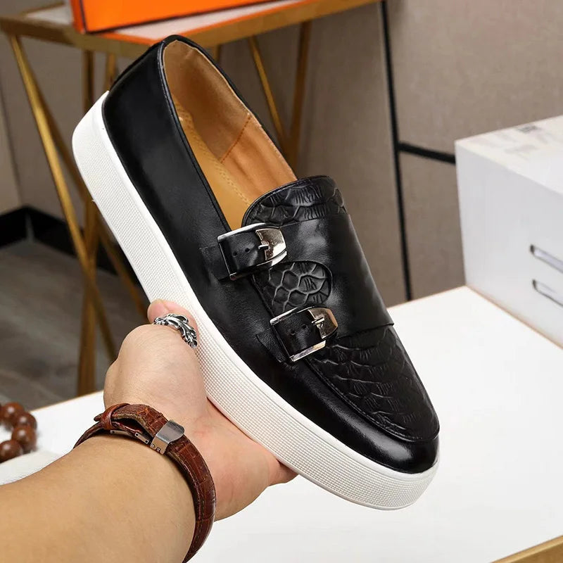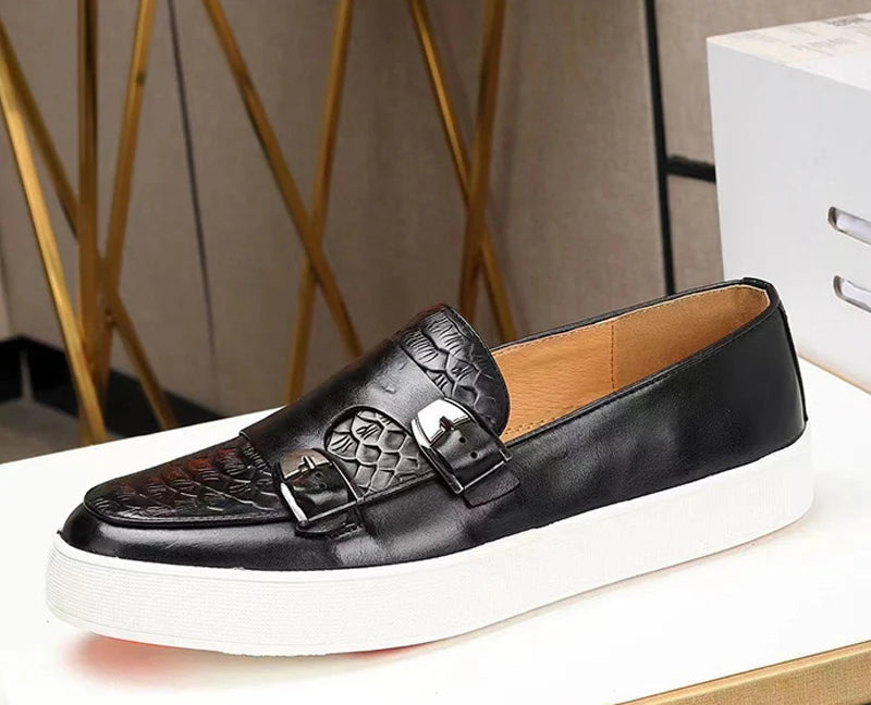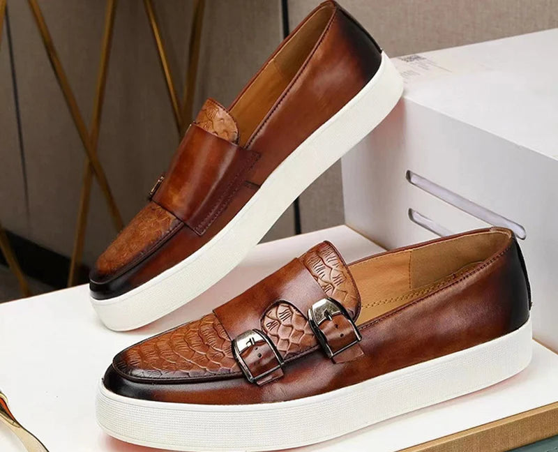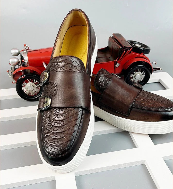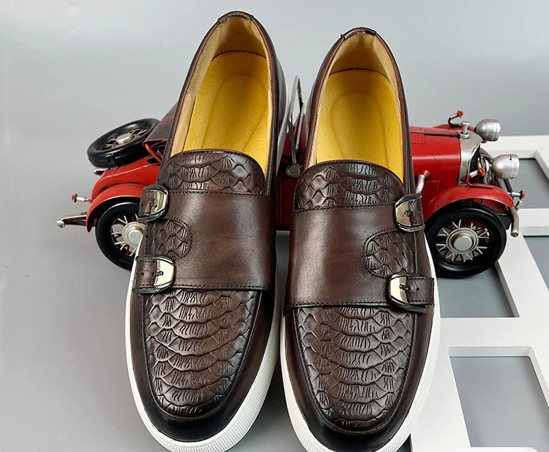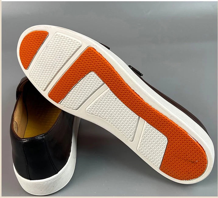 These elegant men's handmade casual shoes are available with a lace-up or buckle closure to suit your needs. Featuring a genuine leather upper and rubber outsole, it offers both durability and style. It features a non-slip flat heels that make it a functional piece. Own it to elevate your style effortlessly!