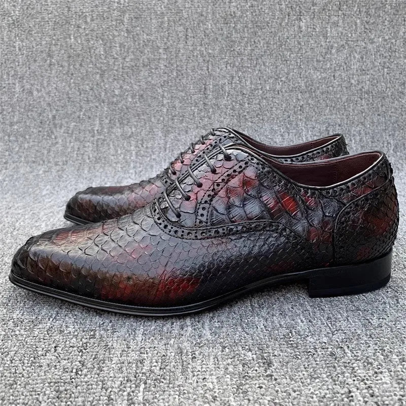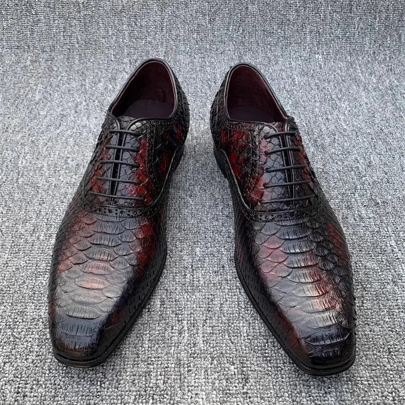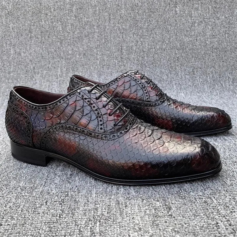 Luxury Snakeskin Genuine Leather Lace Up Office Banquet Oxford Dress Shoes