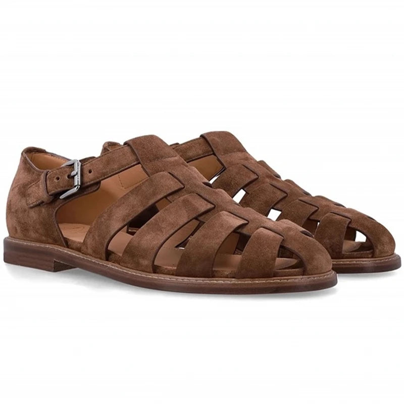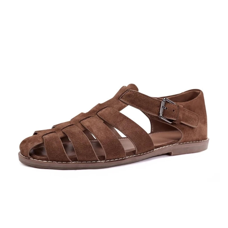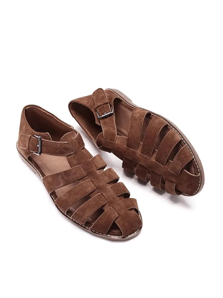 Men's Breathable Retro Leisure Style Cowhide Buckle Strap Solid Color Sandals