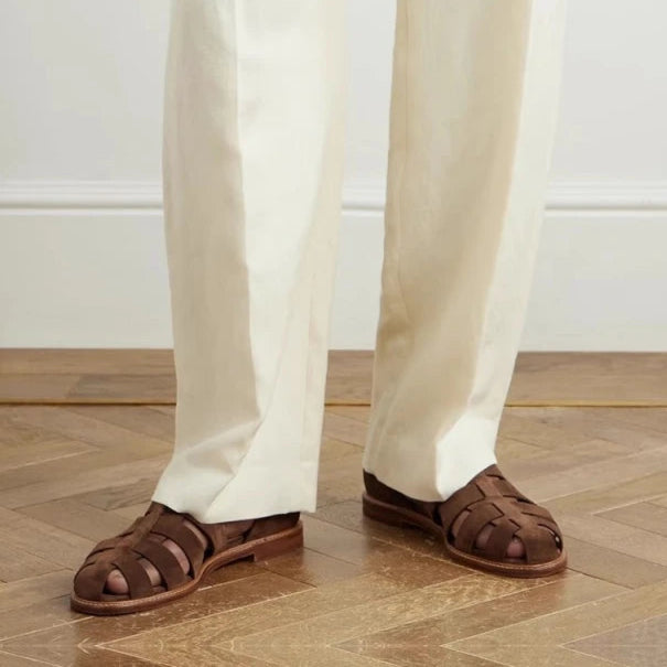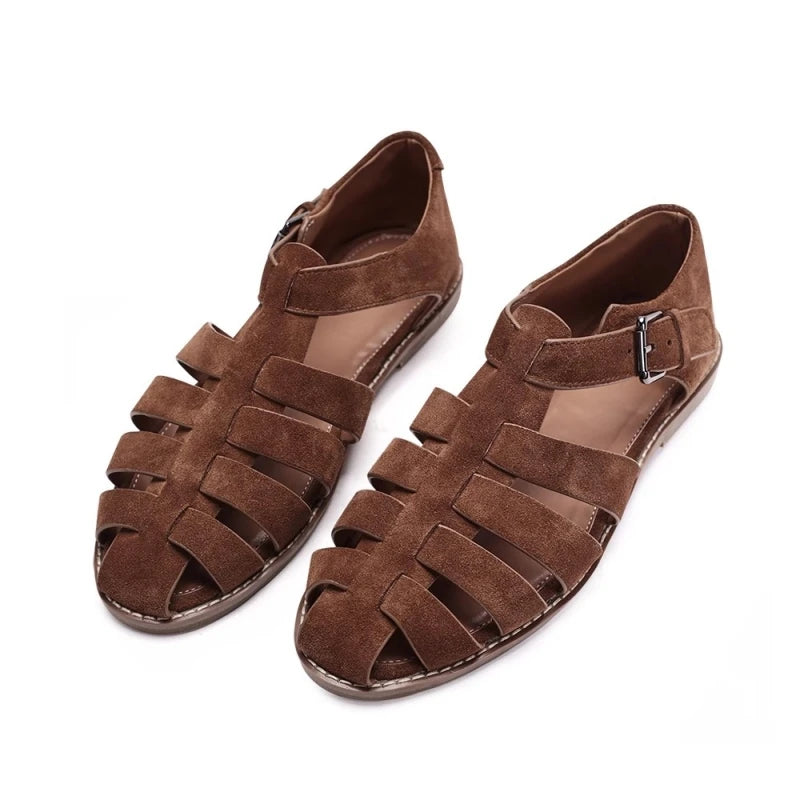 Looking for stylish retro-style men's sandals? Then this is for you. The genuine leather upper not only looks elegant and stylish, but is also breathable and comfortable to wear. The buckle strap gives a good fit. Buy now!