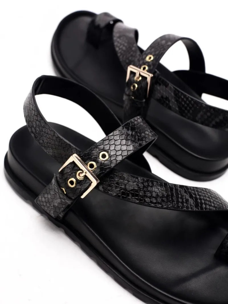 Men's Summer Casual Genuine Leather Flat Clip Toe Strap Buckle Breathable Sandals
