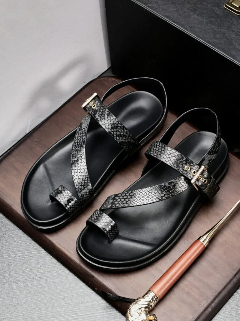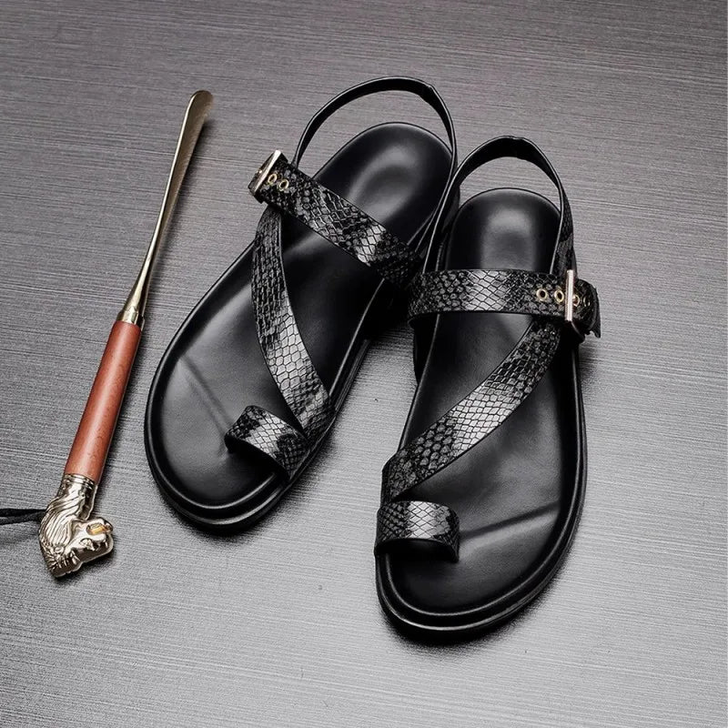 Designed with a genuine leather upper, offering both durability and style, these men's clip-toe sandals are breathable and comfortable for summer wear. The buckle strap makes it a perfect choice for different foot sizes. For the fashionable men!