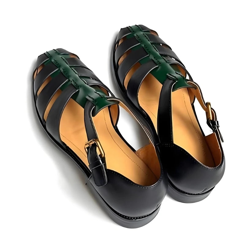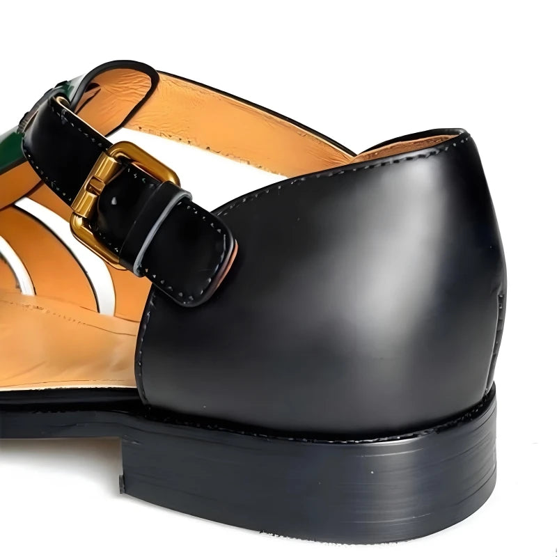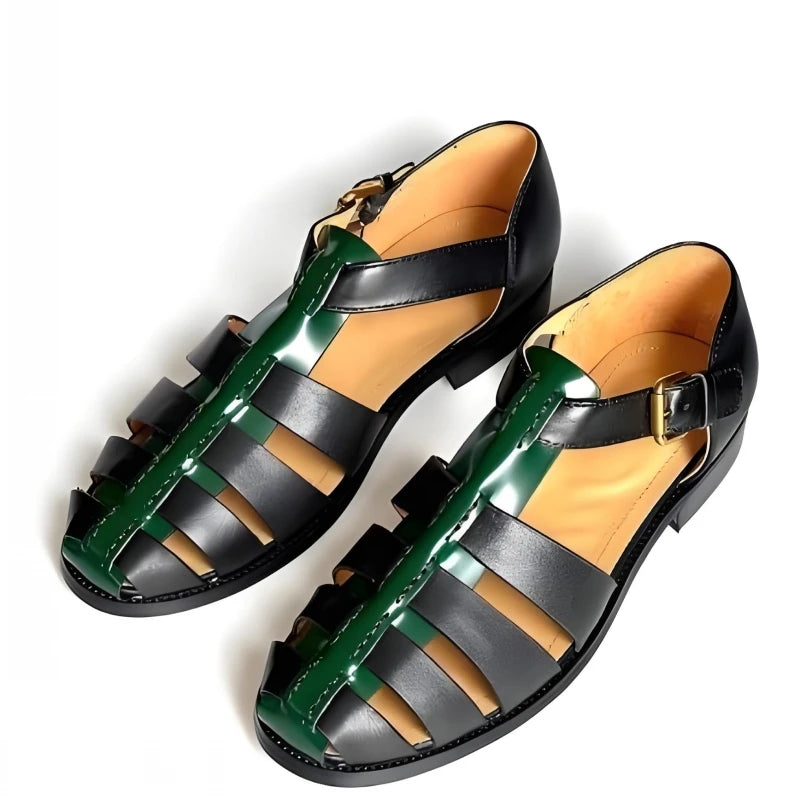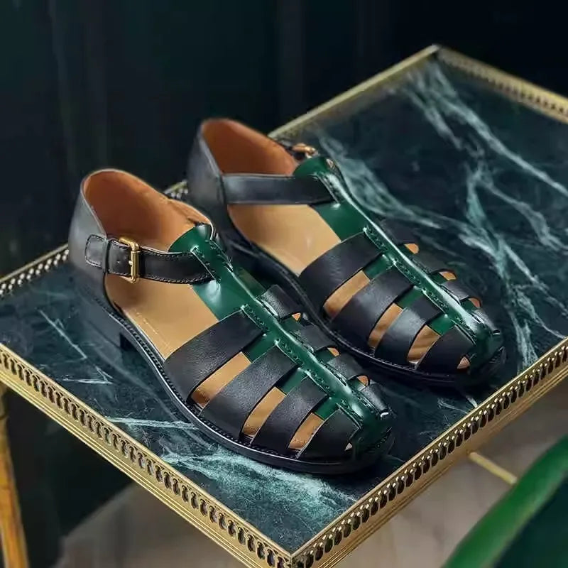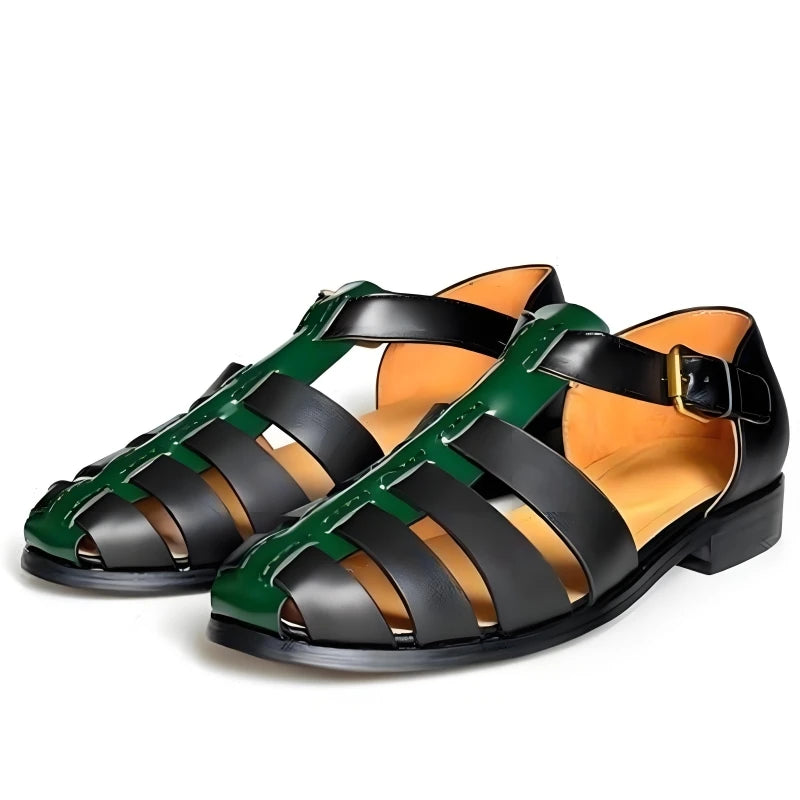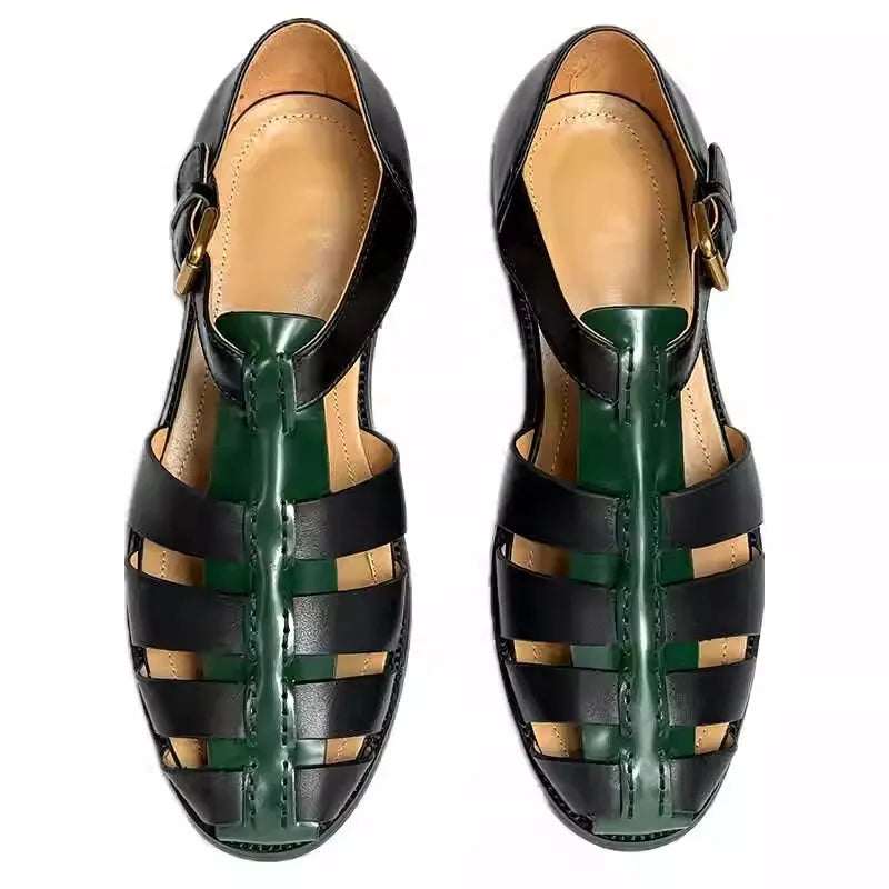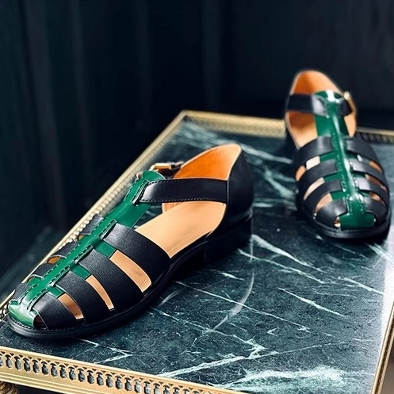Featuring a genuine leather upper in a lovely black and green color combo, these men's sandals offer both durability and style. The design features a hollow-out pattern and buckle strap for a comfortable fit. Wear it with your favorite summer outfit to make yourself look great and stylish.